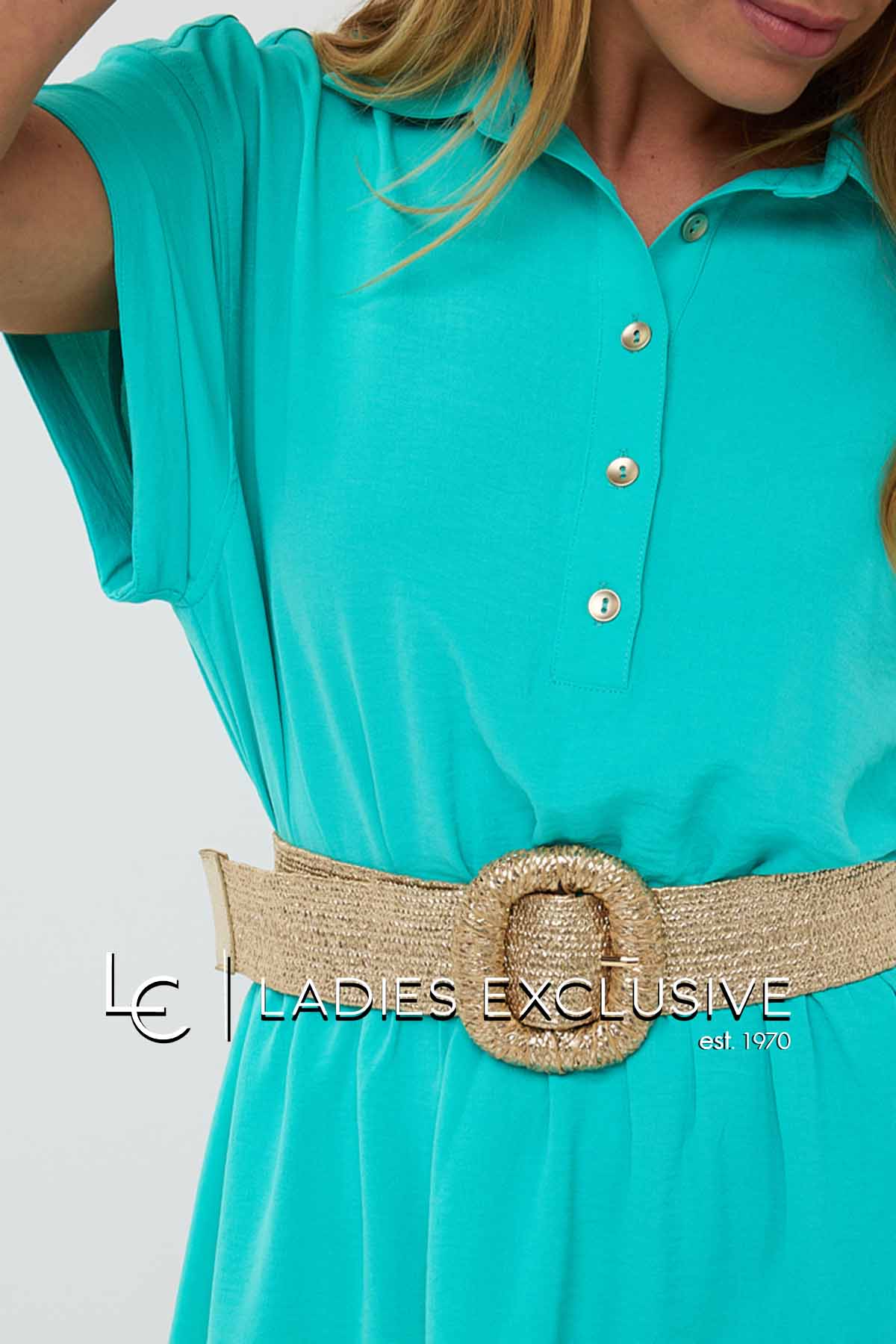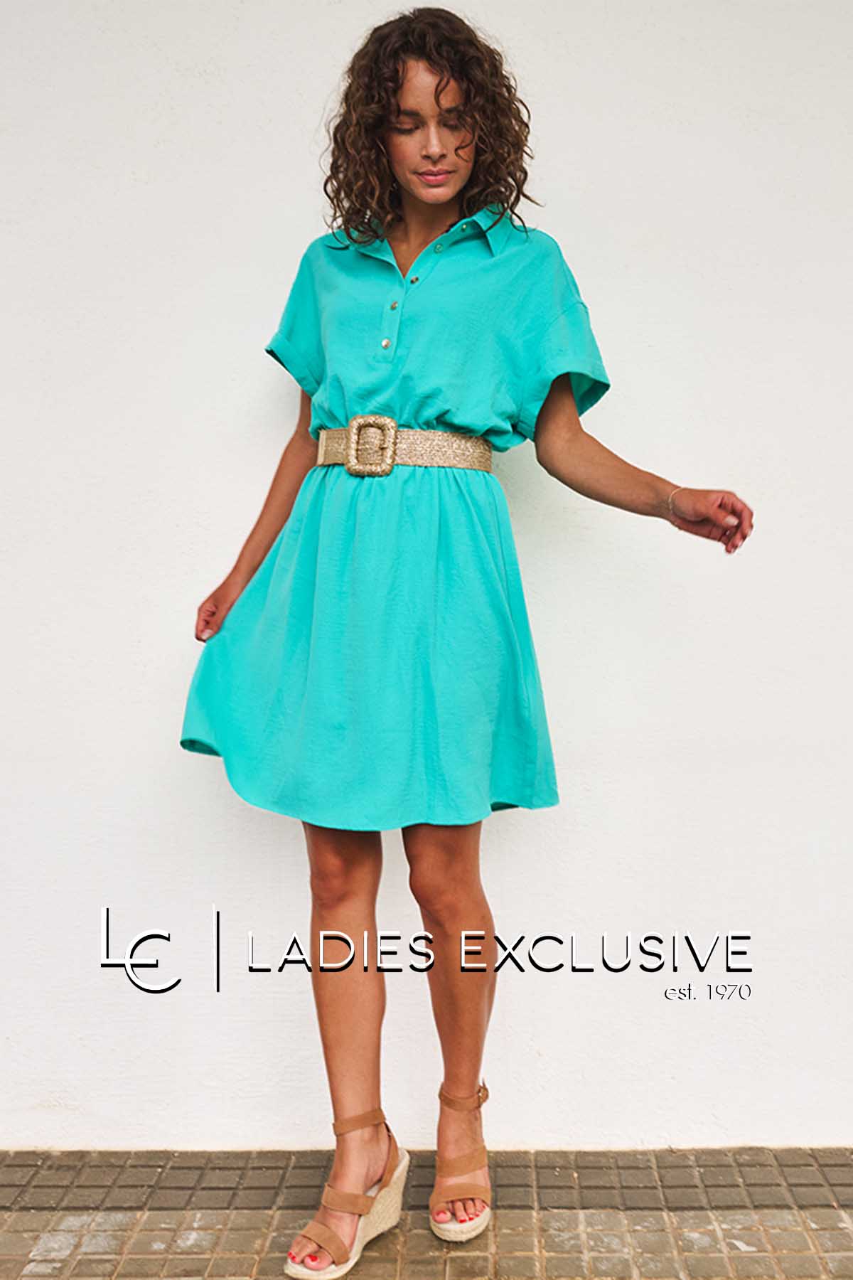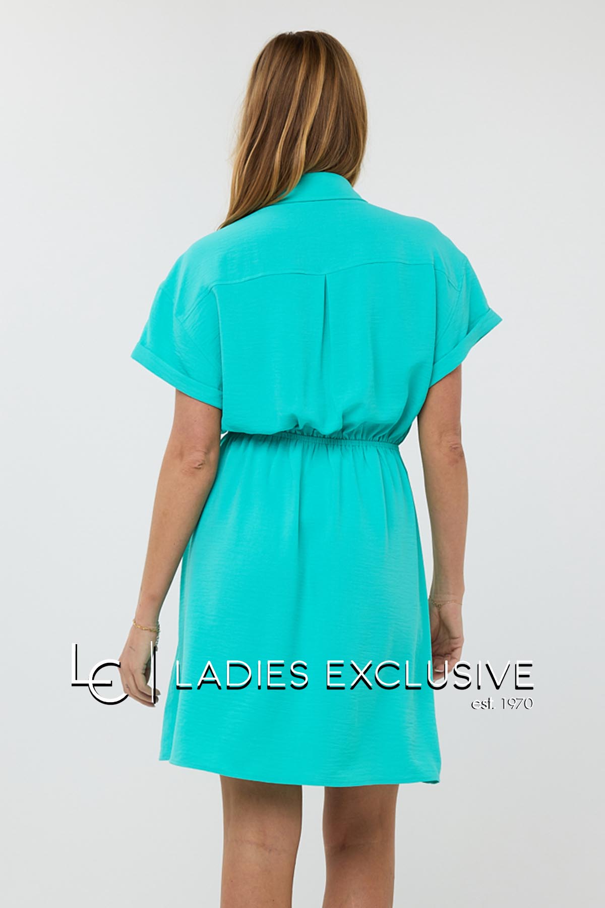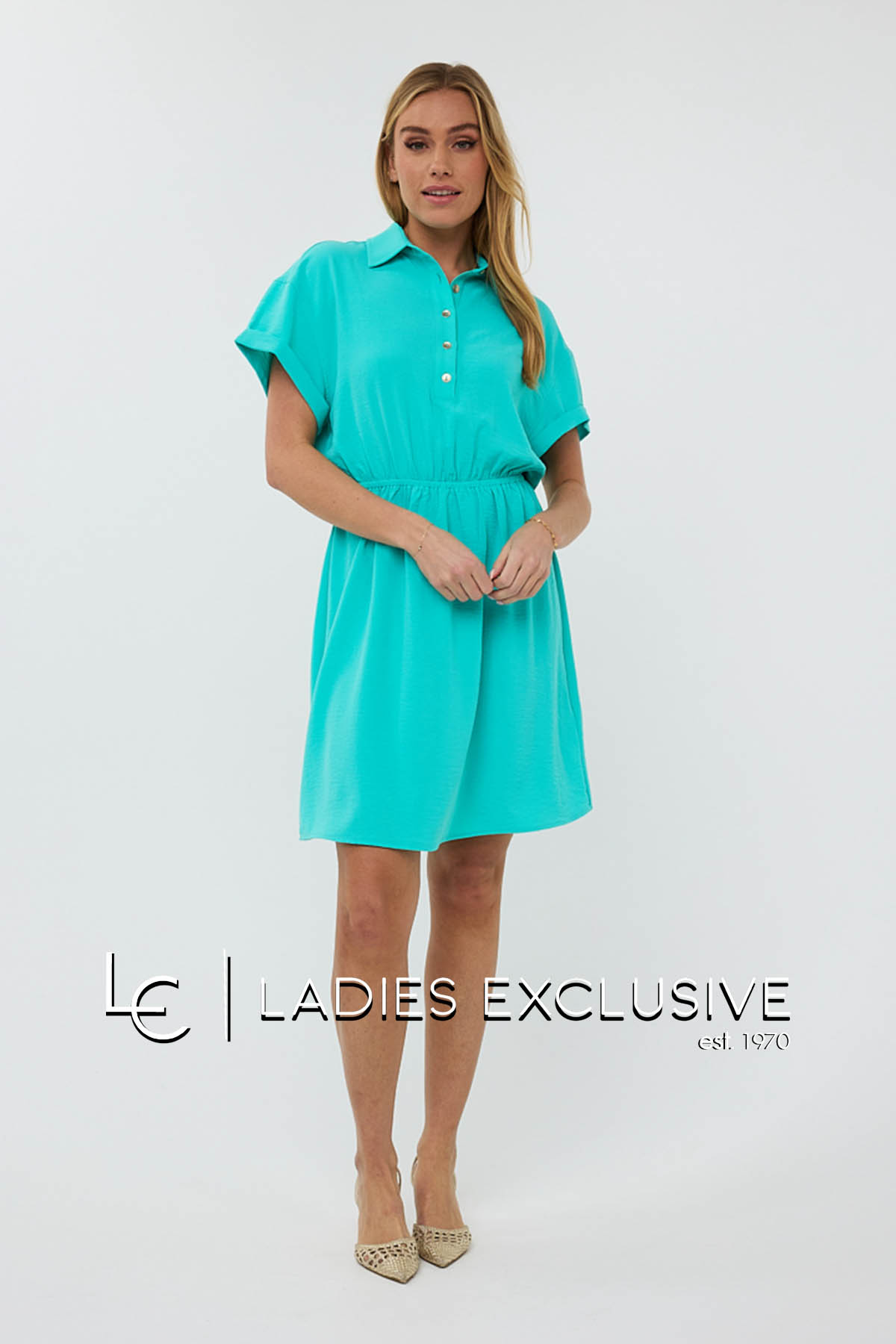ESQUALO Φόρεμα βεραμάν κοντομάνικο με γιακά, κουμπιά και λάστιχο στη μέση.