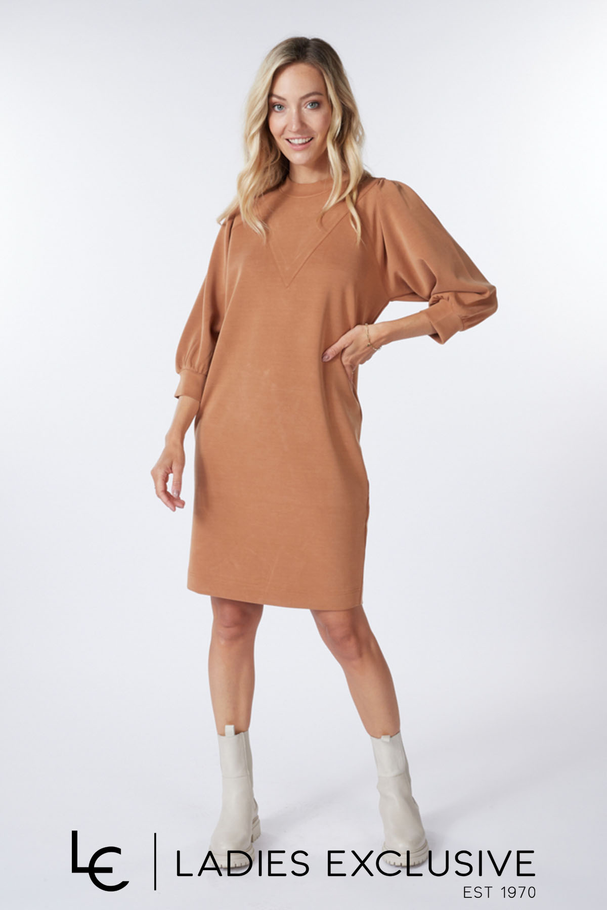 ESQUALO Φόρεμα ταμπά με μανίκι φούσκα και μαλακό ύφασμα.