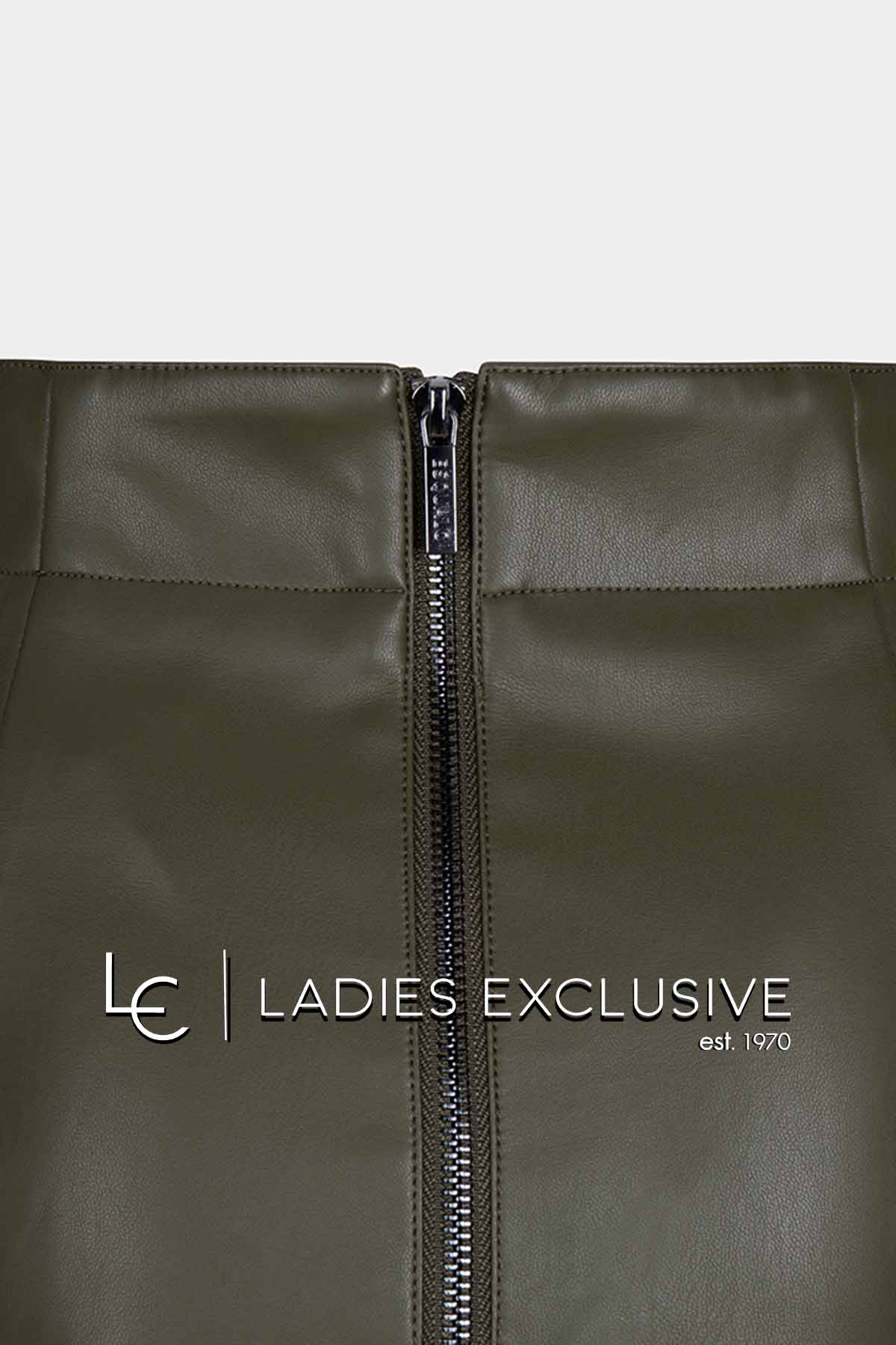 ESQUALO Φούστα λαδί από τεχνόδερμα σε ίσια γραμμή με πλαϊνές τσέπες και φερμουάρ στο πίσω μέρος.