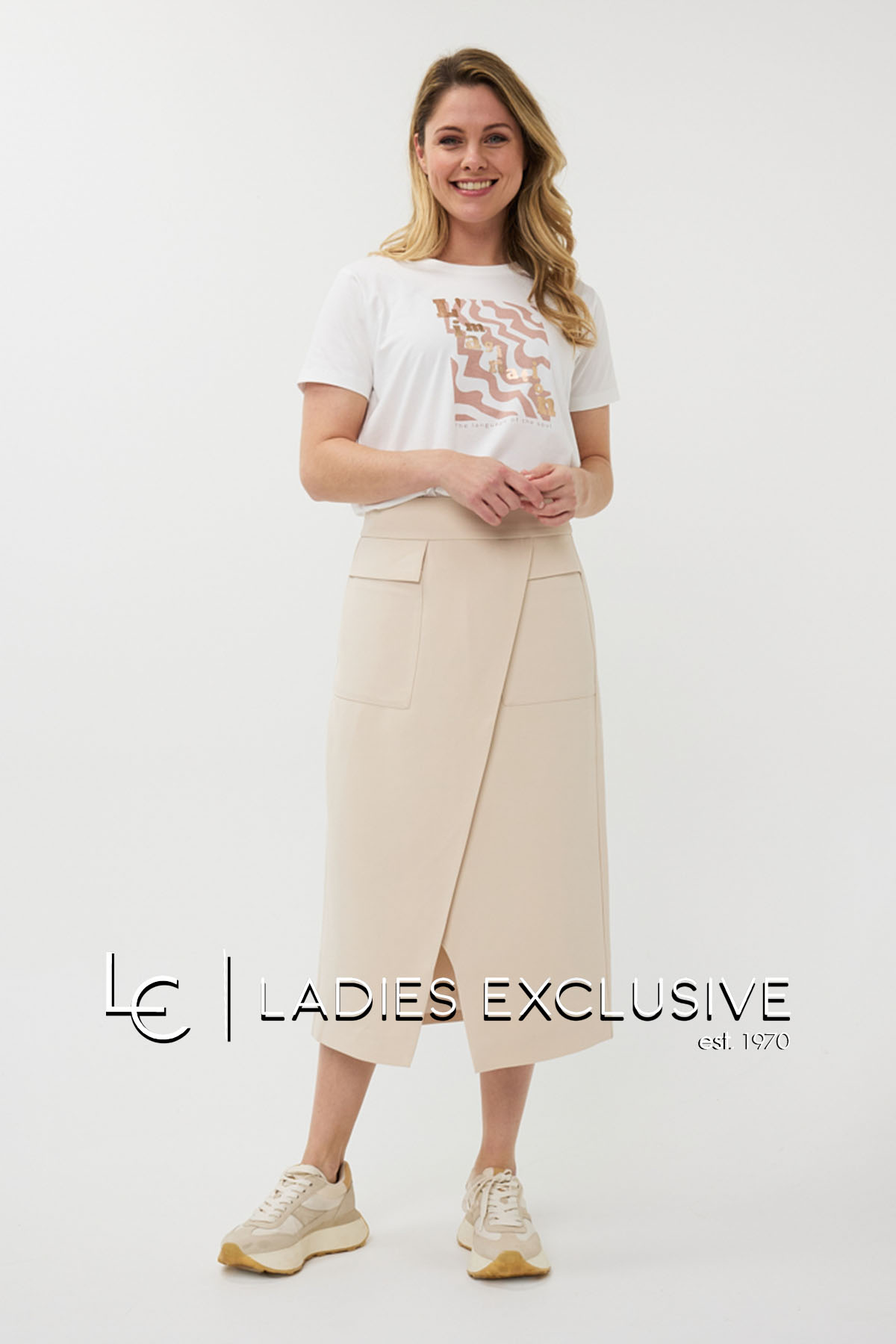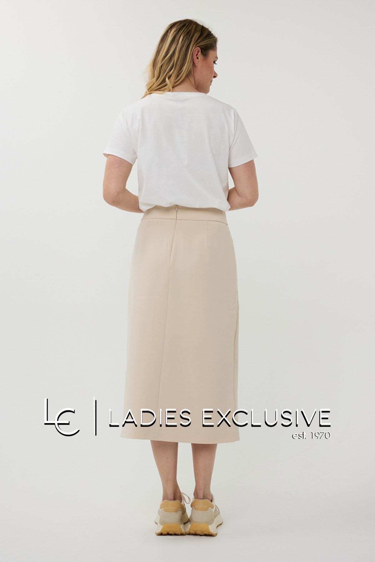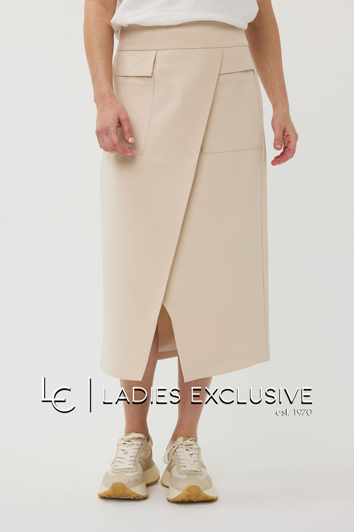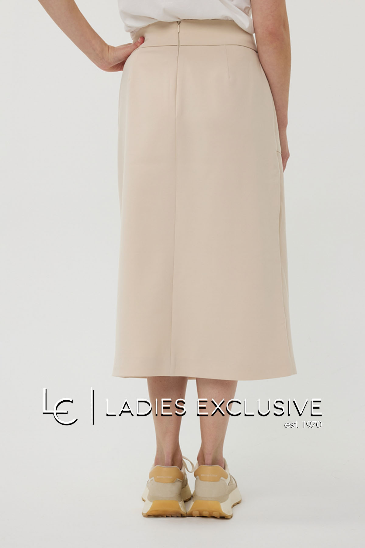 ESQUALO Φούστα μπεζ κρεπ φάκελος σε ίσια γραμμή με μεγάλες τσέπες με καπάκια στο πλάι.