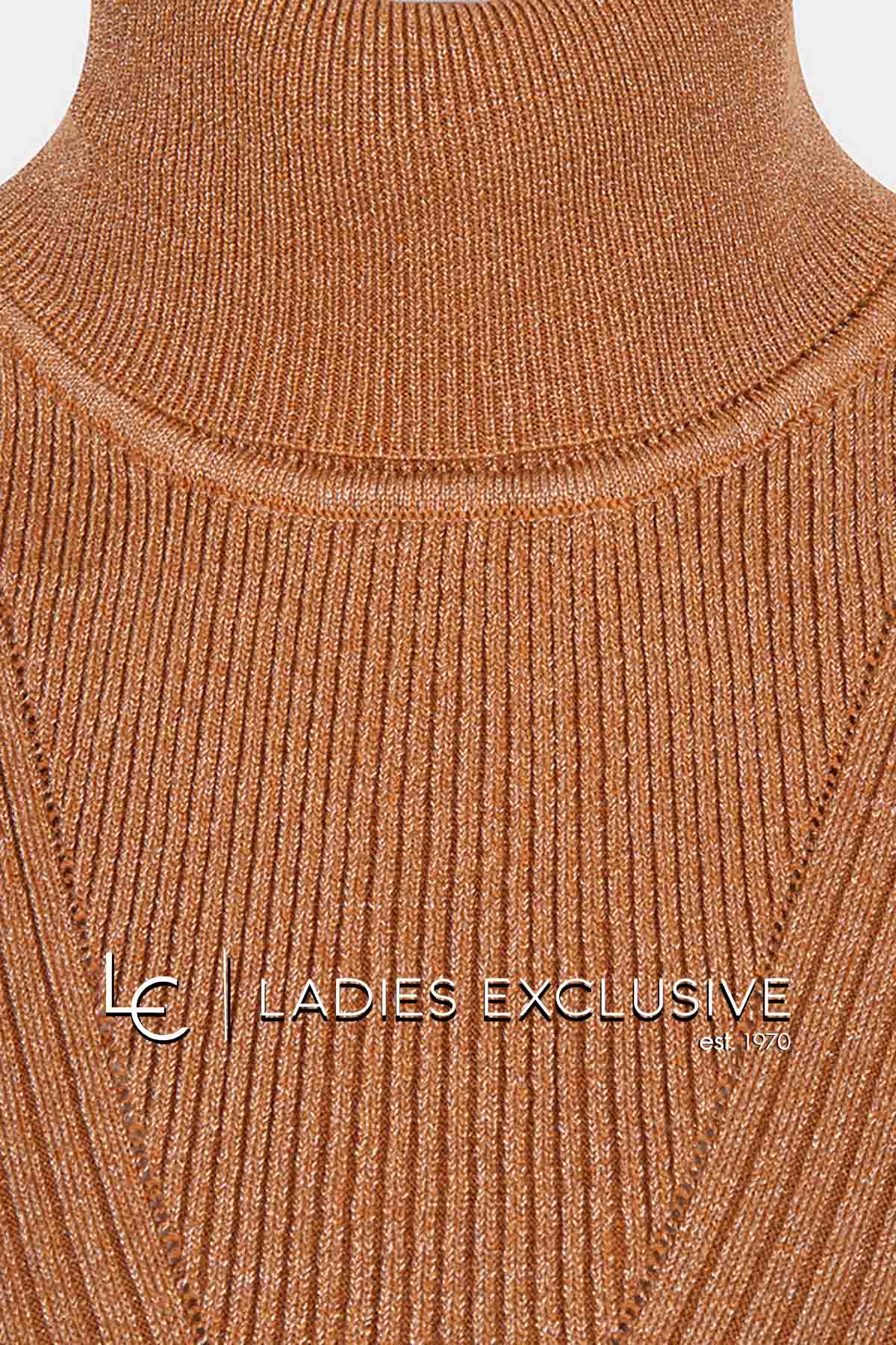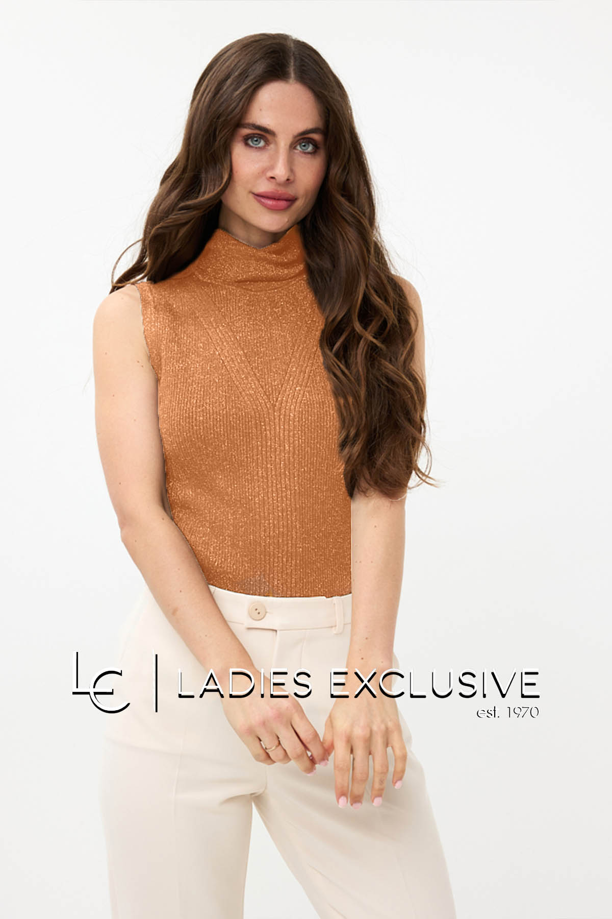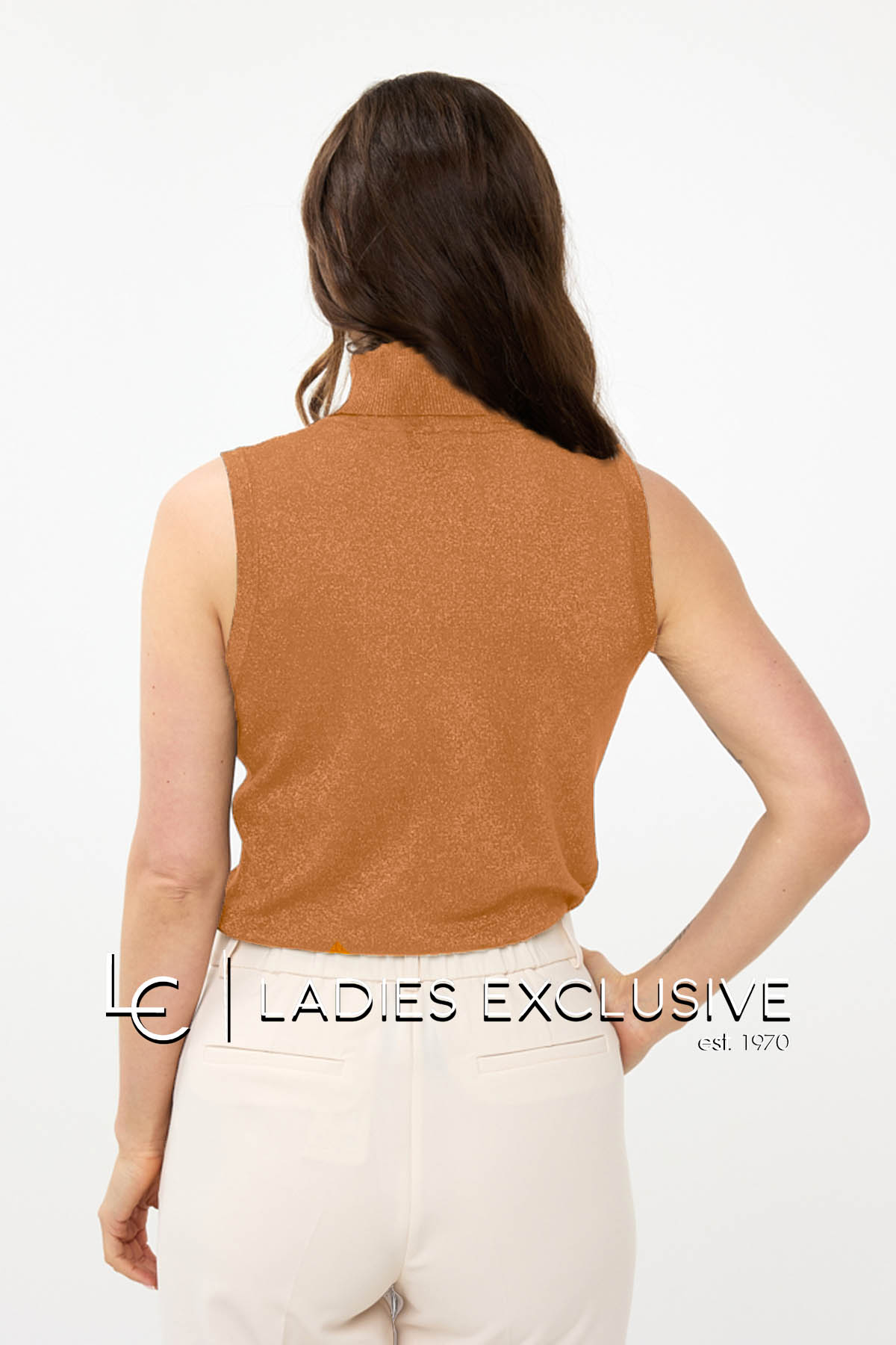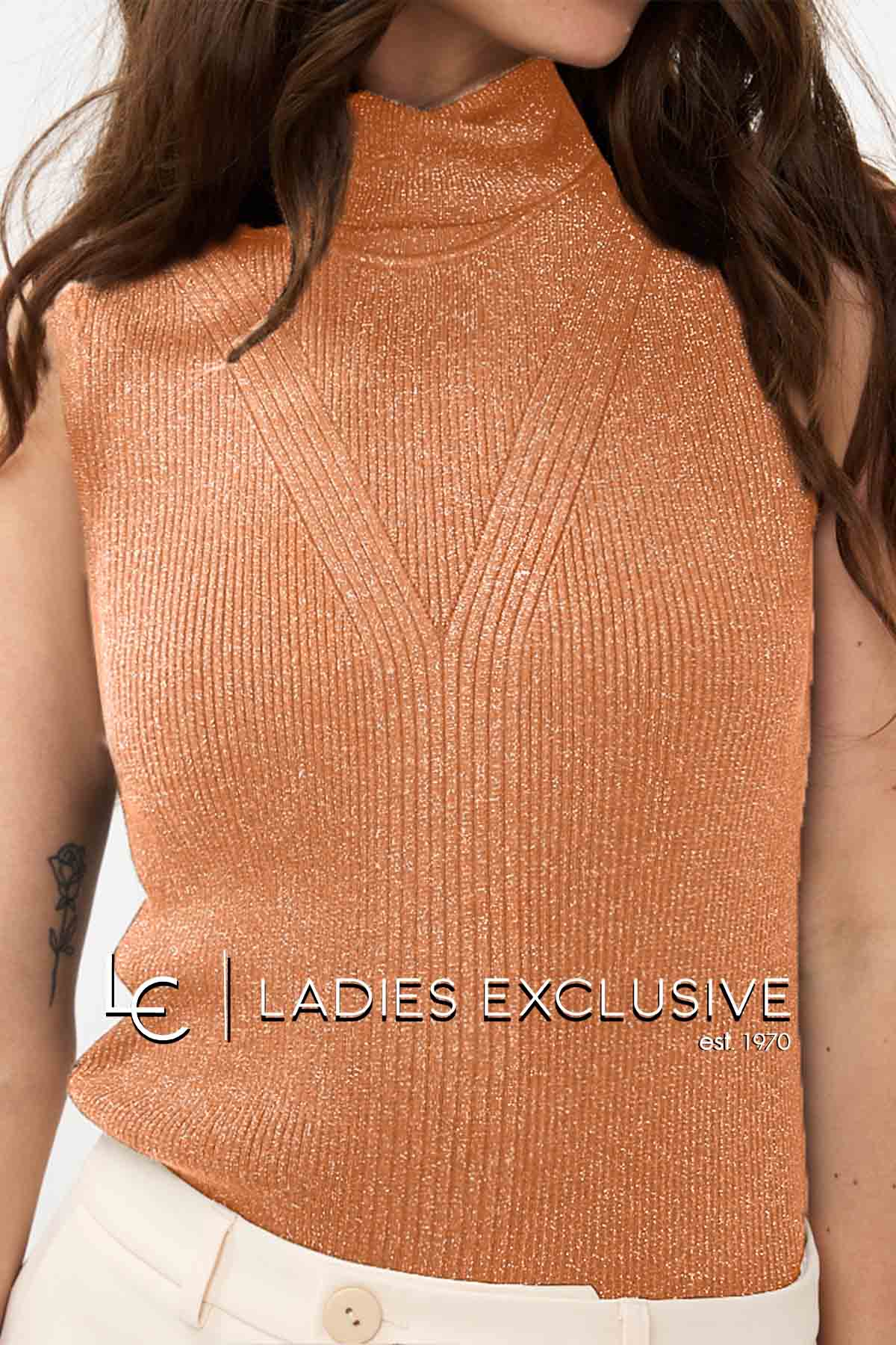 ESQUALO Μπλούζα χρυσή αμάνικη ζιβάγκο σε ριμπ πλέξη. Γίνεται σετ με τη ζακέτα με κωδικό 24.31506.25.