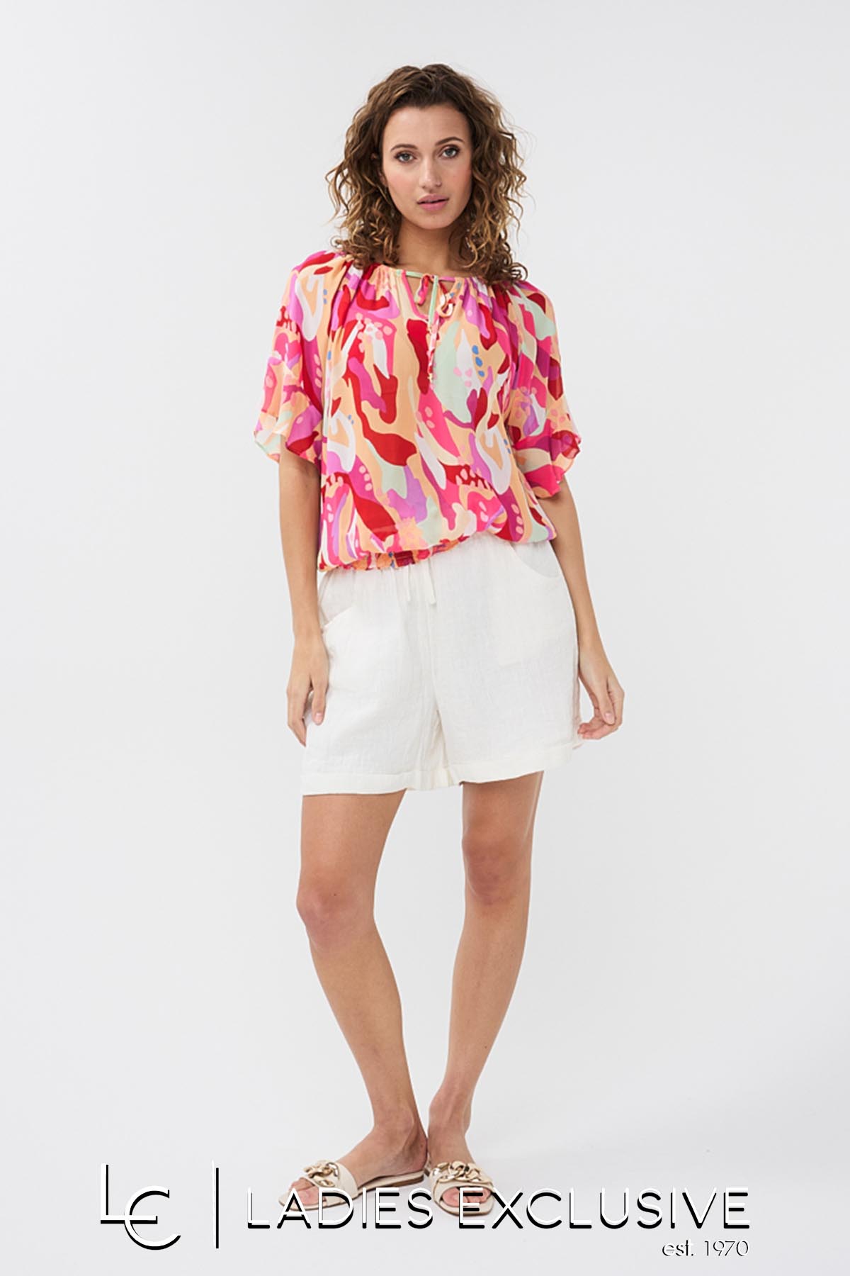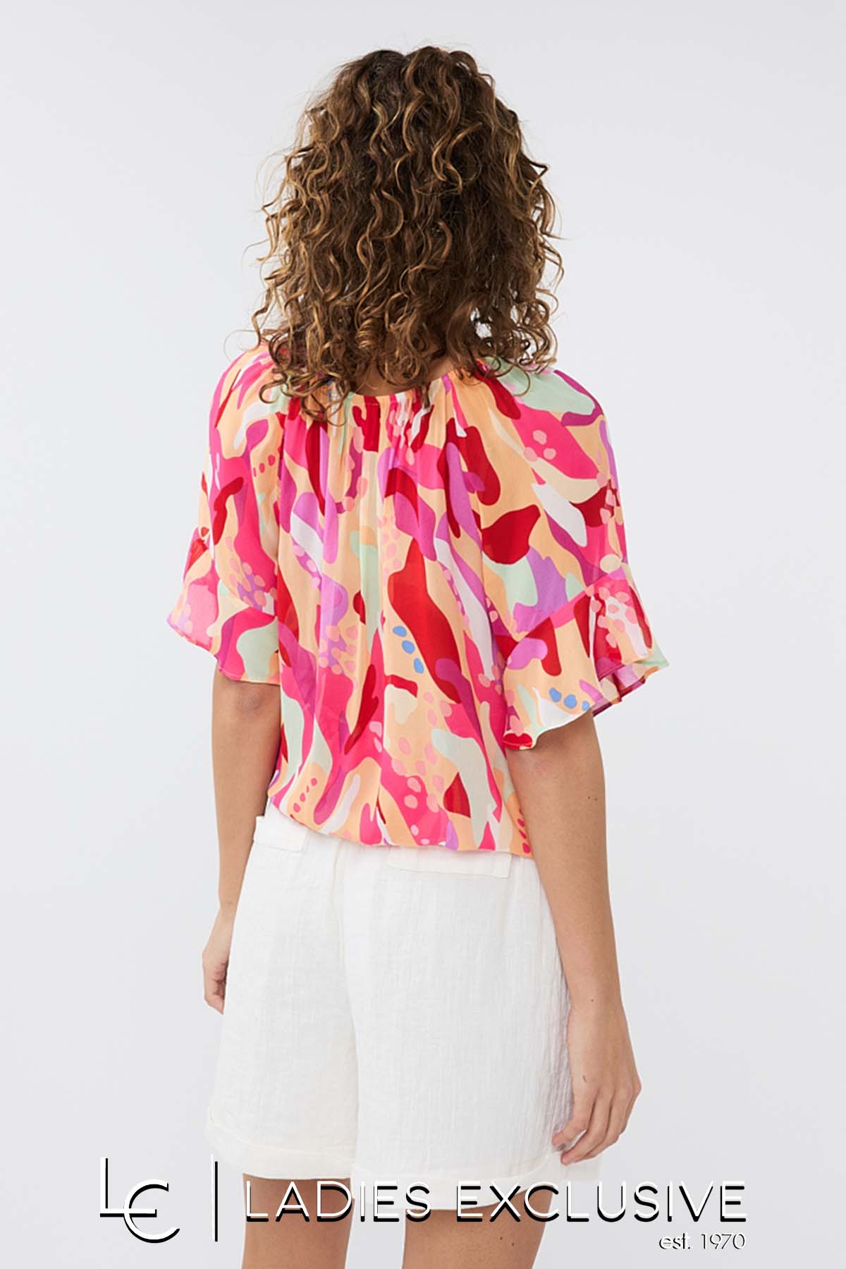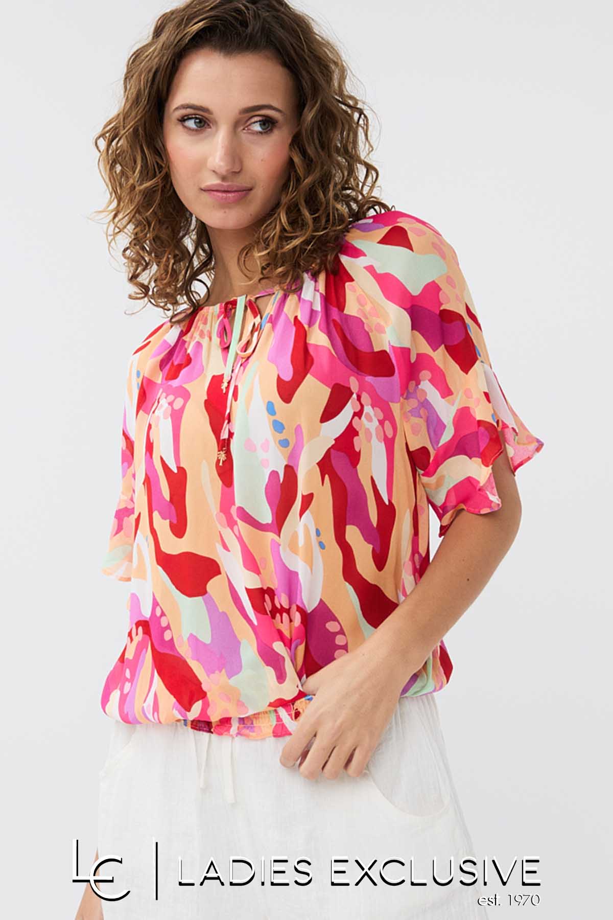 ESQUALO Μπλούζα εμπριμε κοντομάνικη αέρινη με λάστιχο στο κάτω μέρος. είναι ελαφρώς διάφανη. Γίνεται σετ με τη φούστα με κωδικό 24.15204.28.
