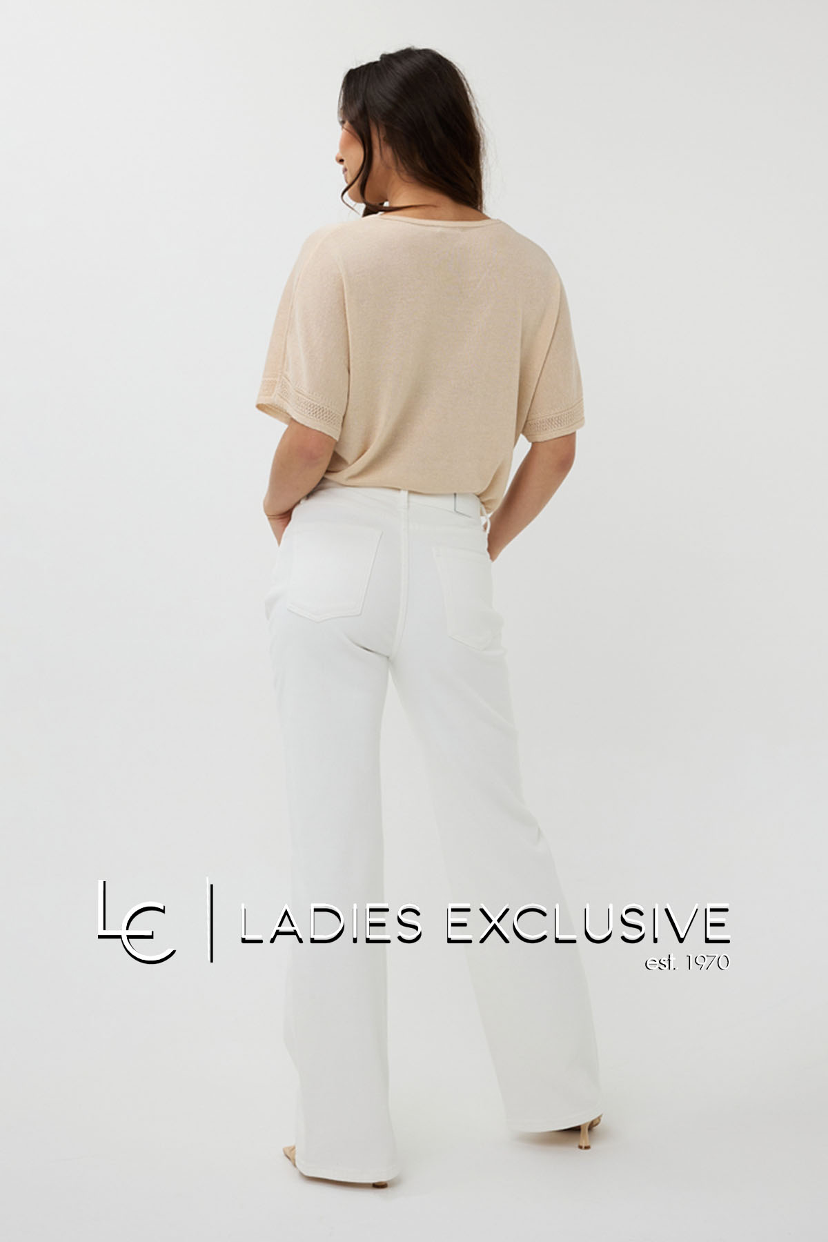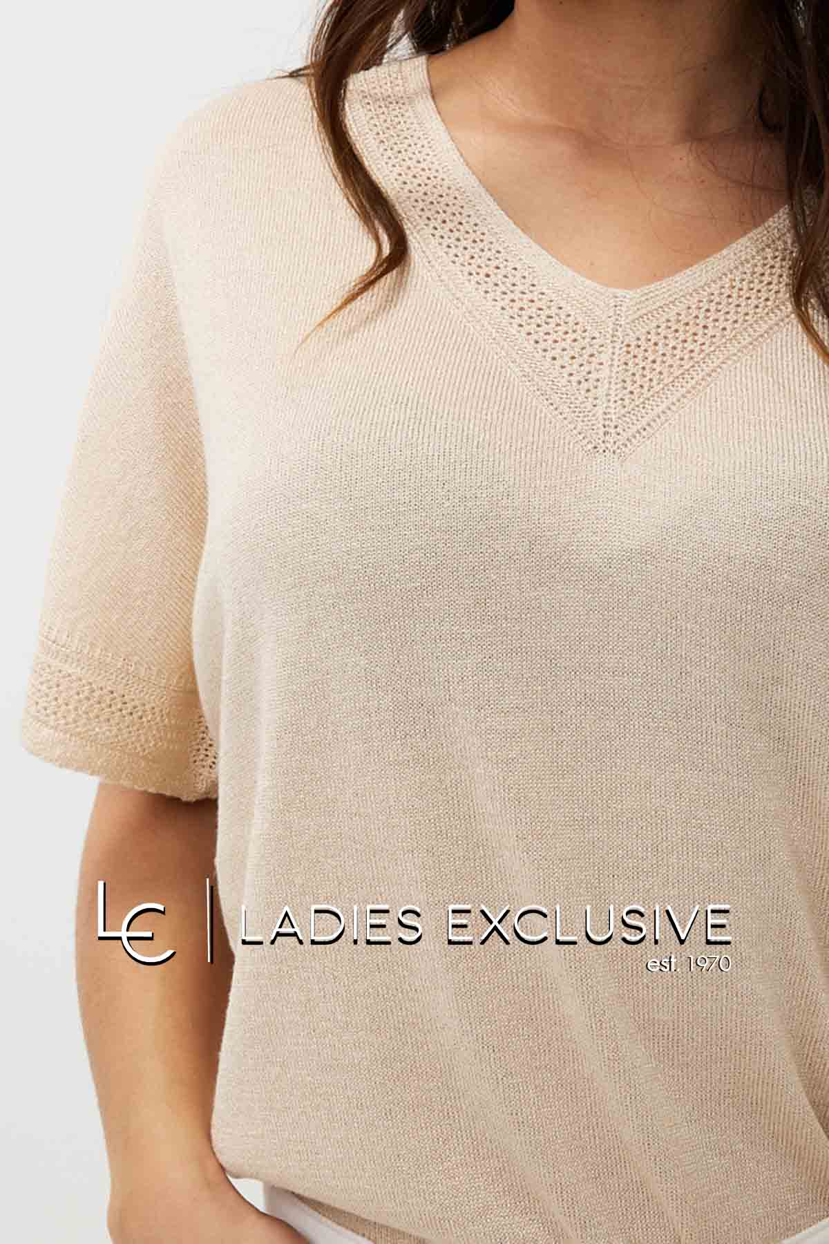 ESQUALO Μπλούζα μπεζ κοντομάνικη πλεκτή με άνοιγμα v.