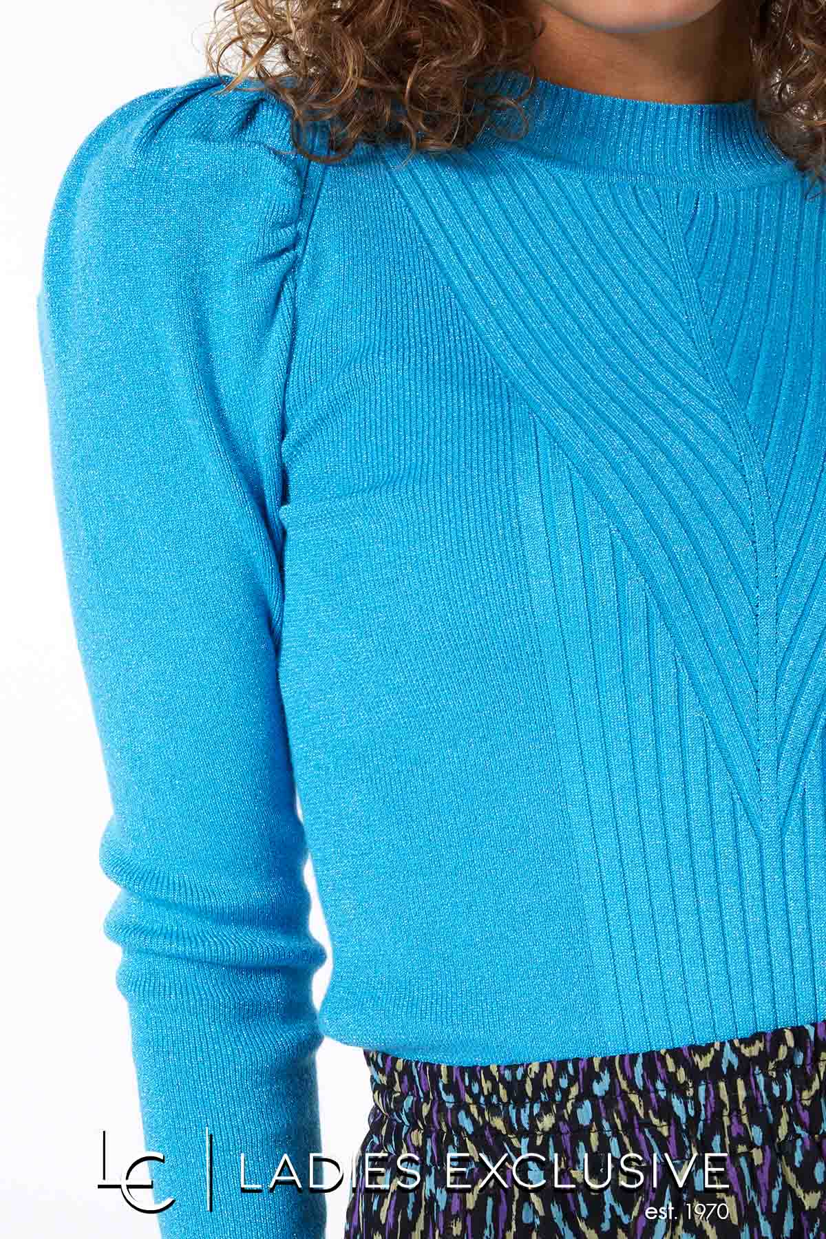 ESQUALO Μπλούζα πετρόλ λούρεξ με ανάγλυφη ύφανση και φούσκα στον ώμο.