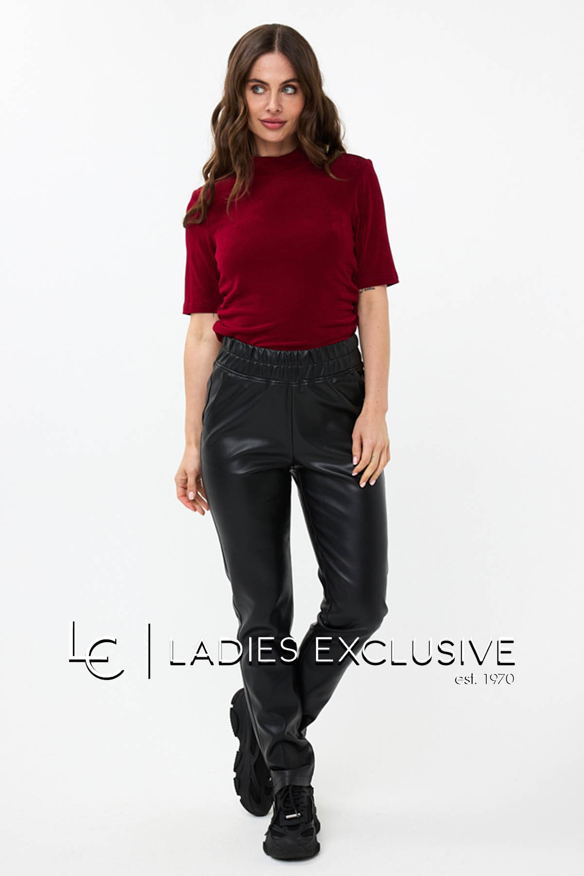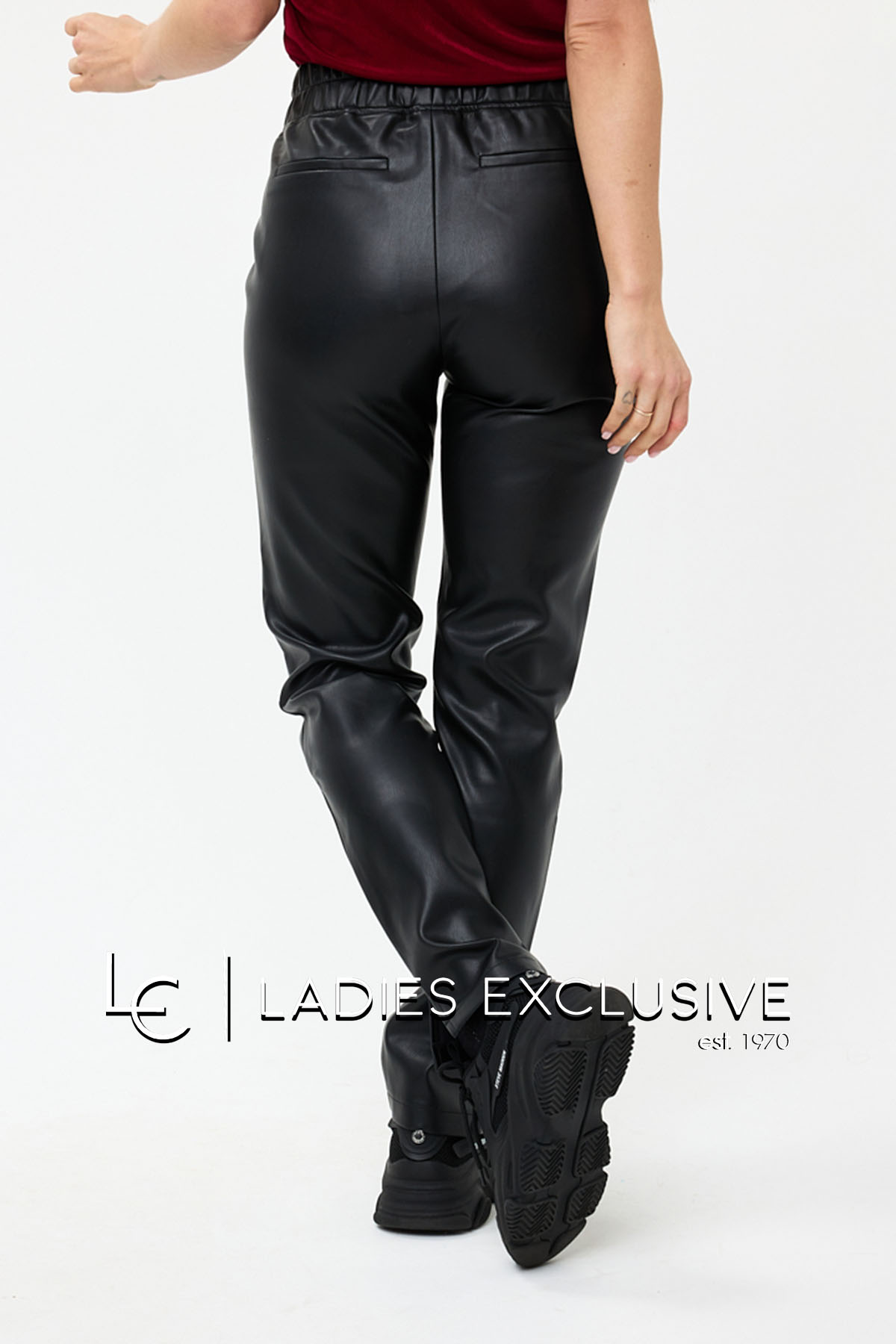 ESQUALO Παντελόνι μαύρο από τεχνόδερμα, με λάστιχο στη μέση και τσέπες στο πλάι.
