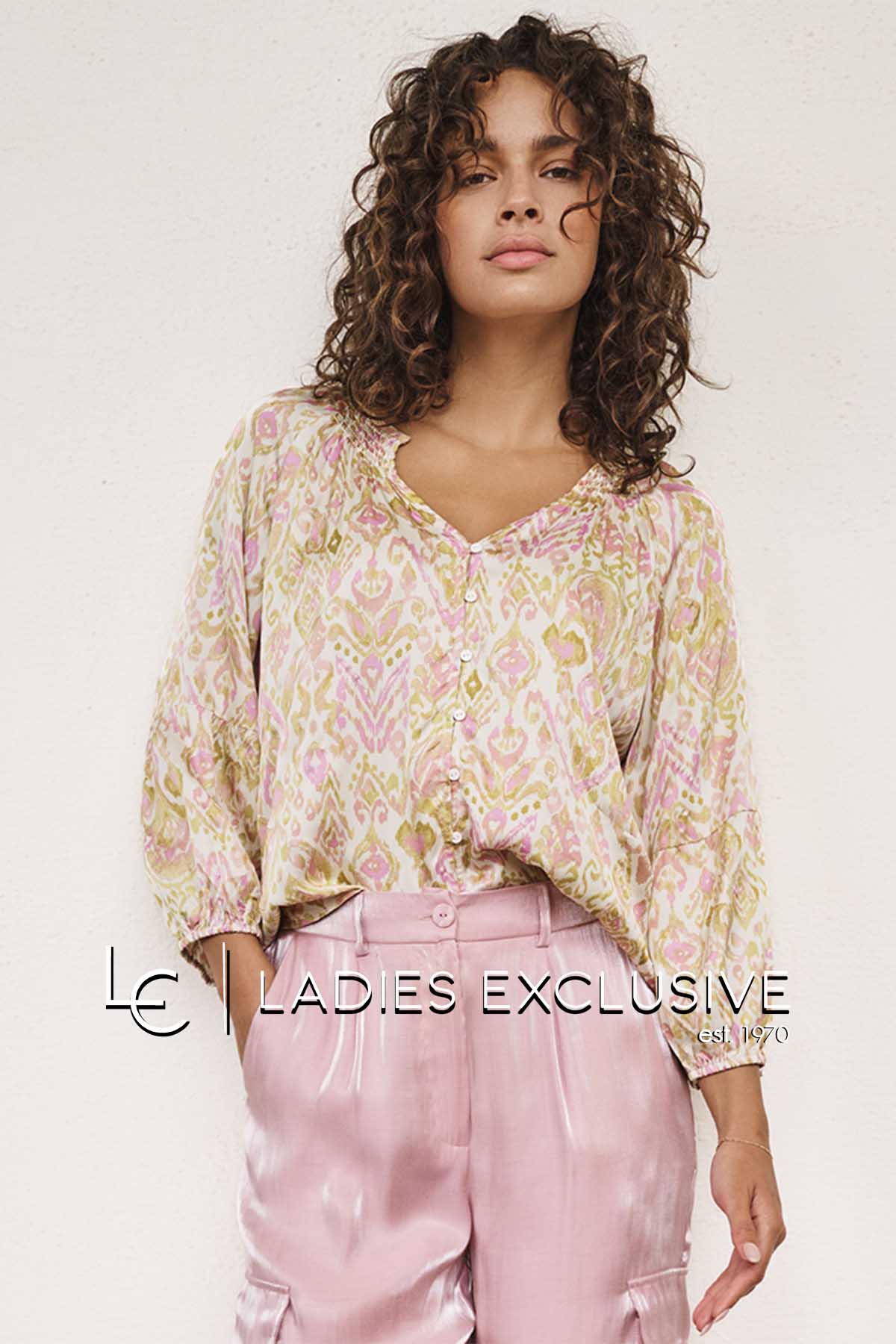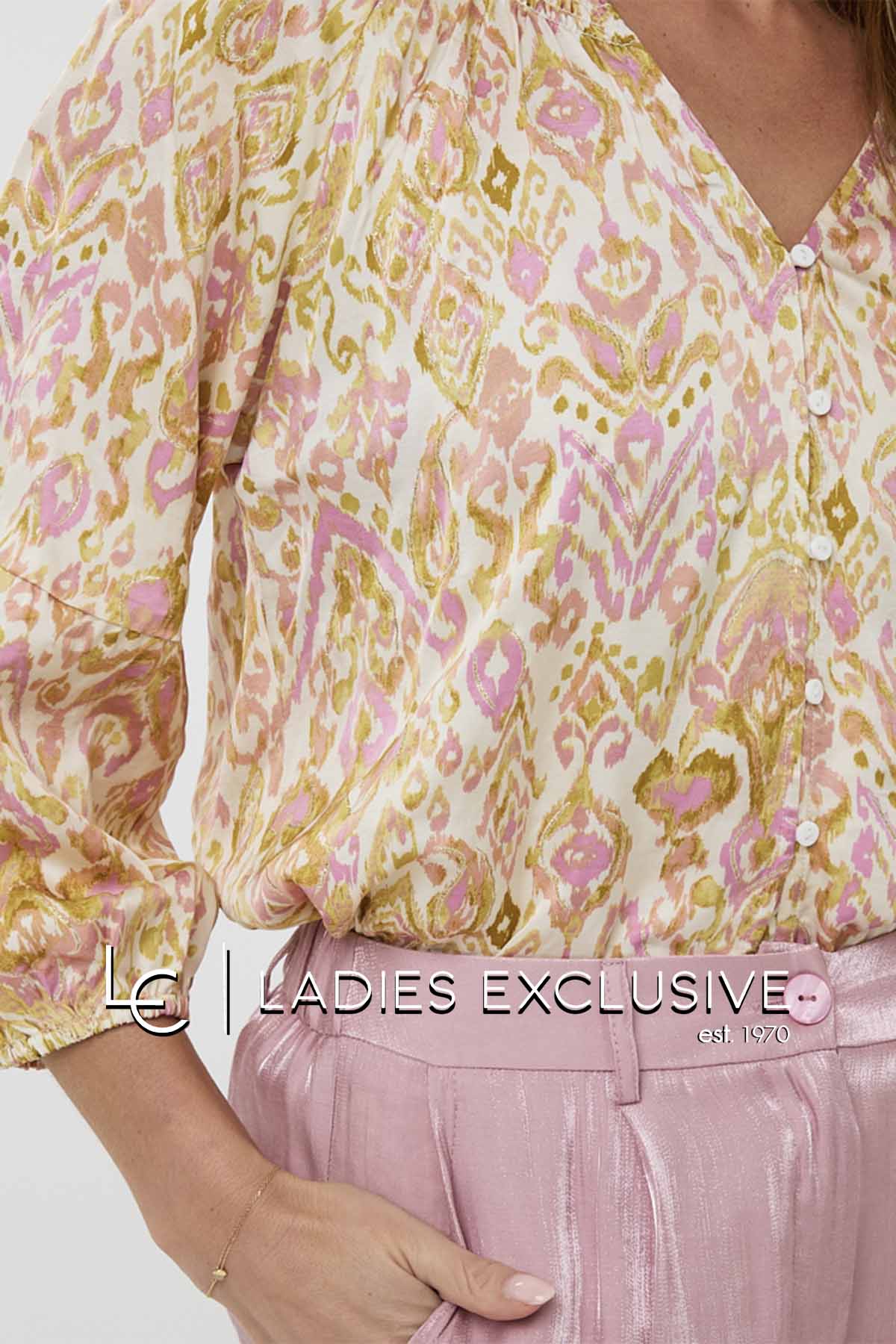 ESQUALO Πουκάμισο εμπριμέ σατέν με μανίκι τρουακάρ και λάστιχο στο τελείωμα.