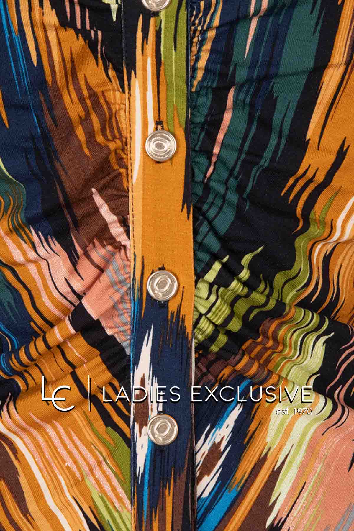 VETO Μπλούζα εμπριμέ κοντομάνικη σε άνετη γραμμή με πιέτα στο μπροστινό μέρος κα άνοιγμα v.