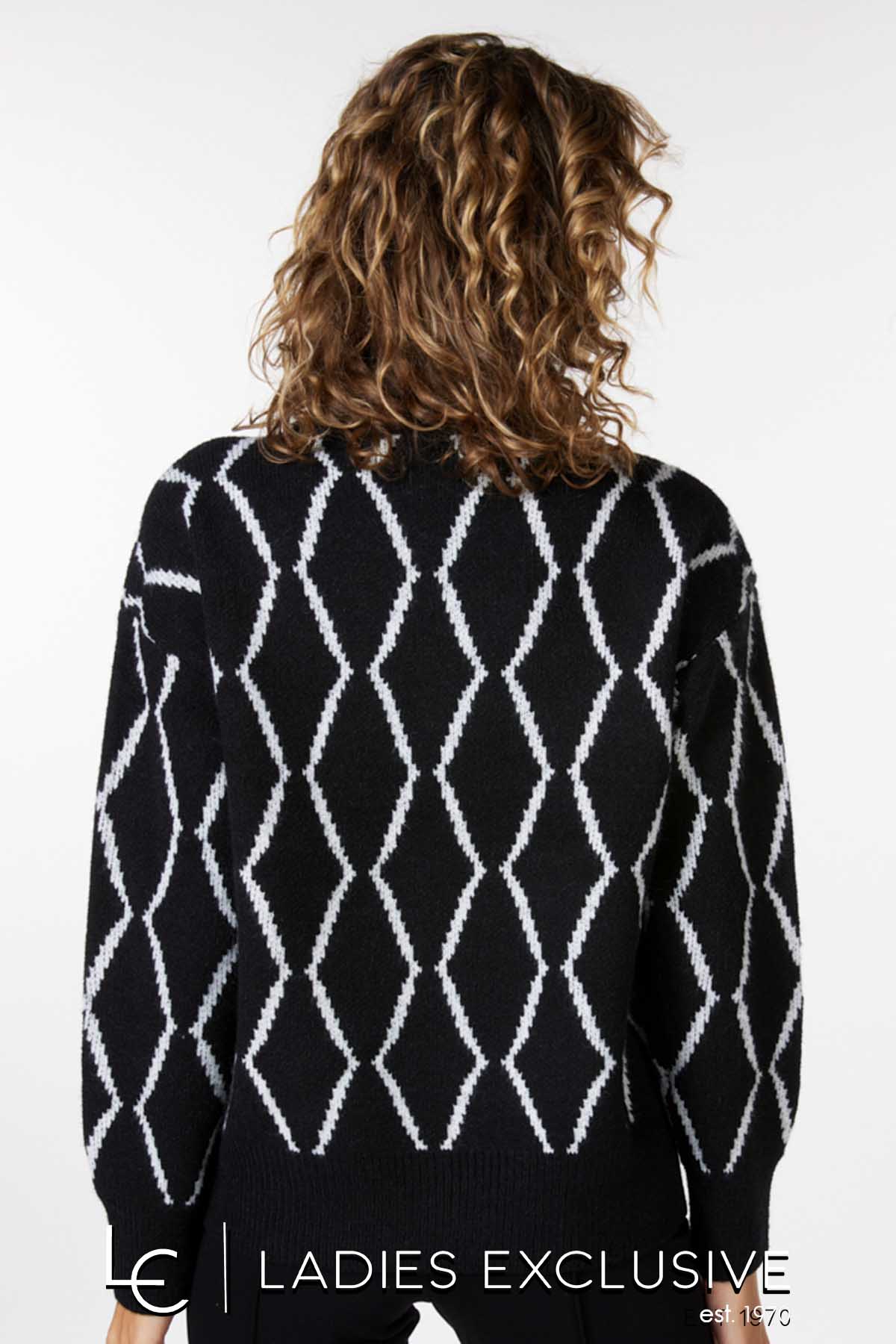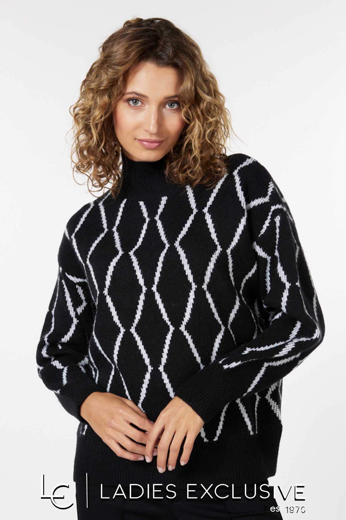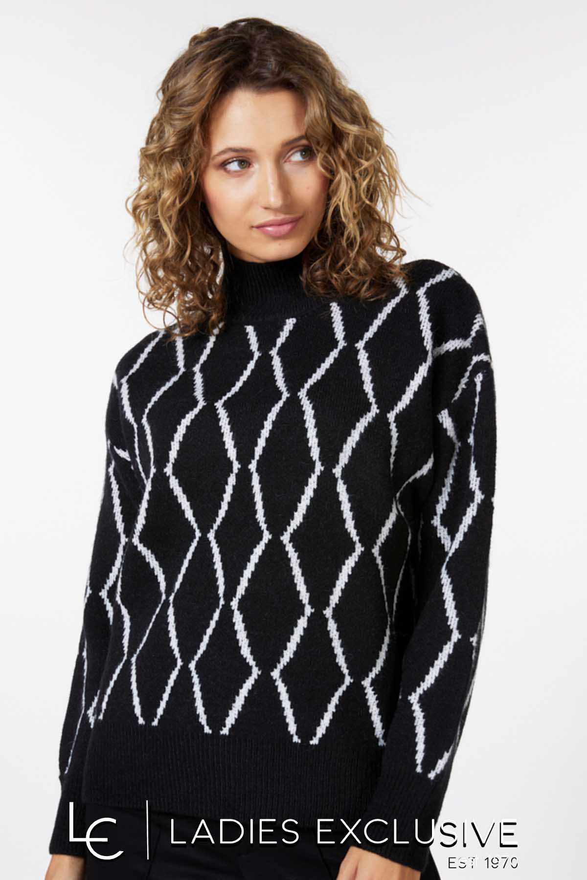 ESQUALO Πουλόβερ ασπρόμαυρο σε άνετη γραμμή, με όρθιο λαιμό.