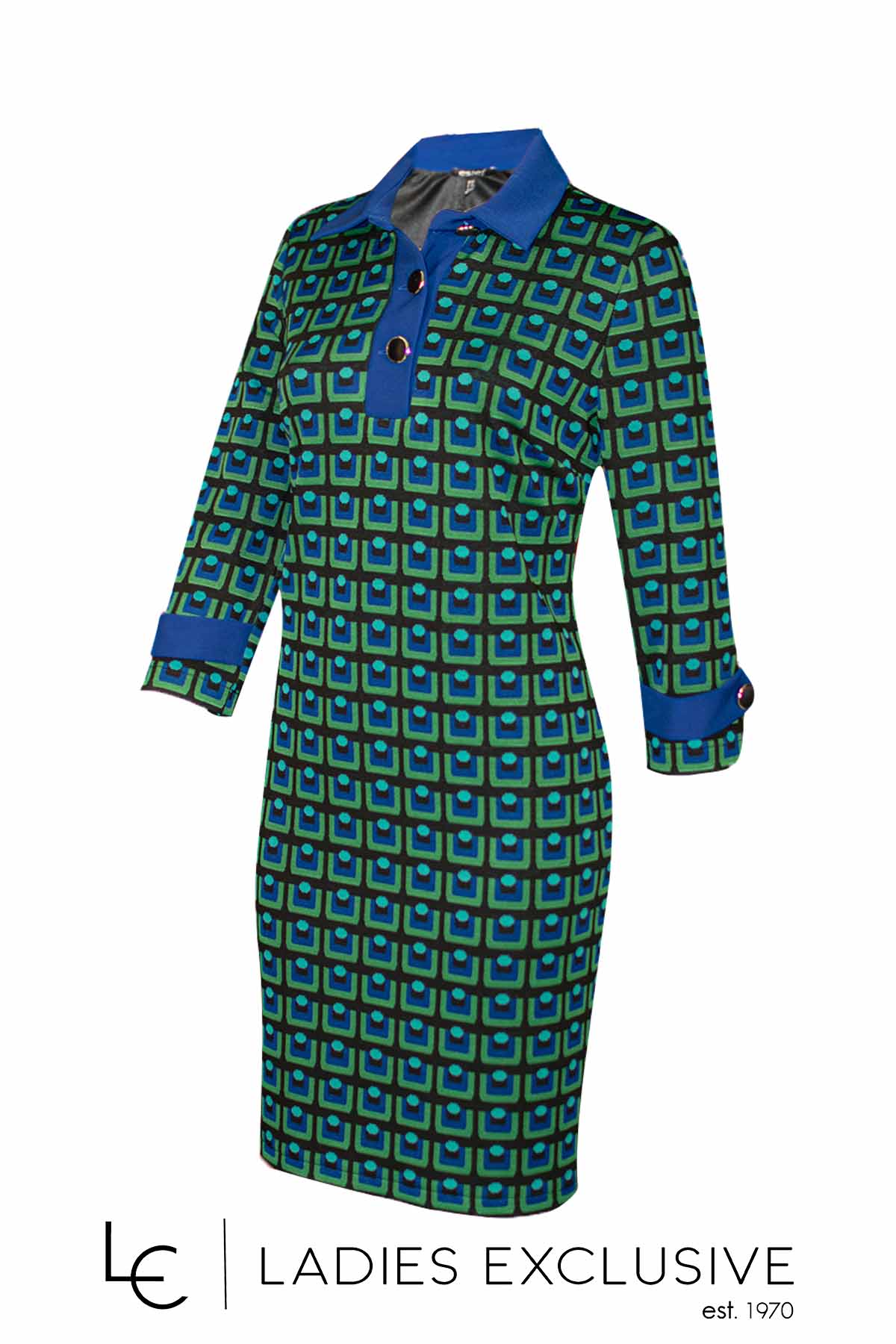 ESTEL Φόρεμα εμπριμέ με πέτο γιακά και μανίκι 3/4.