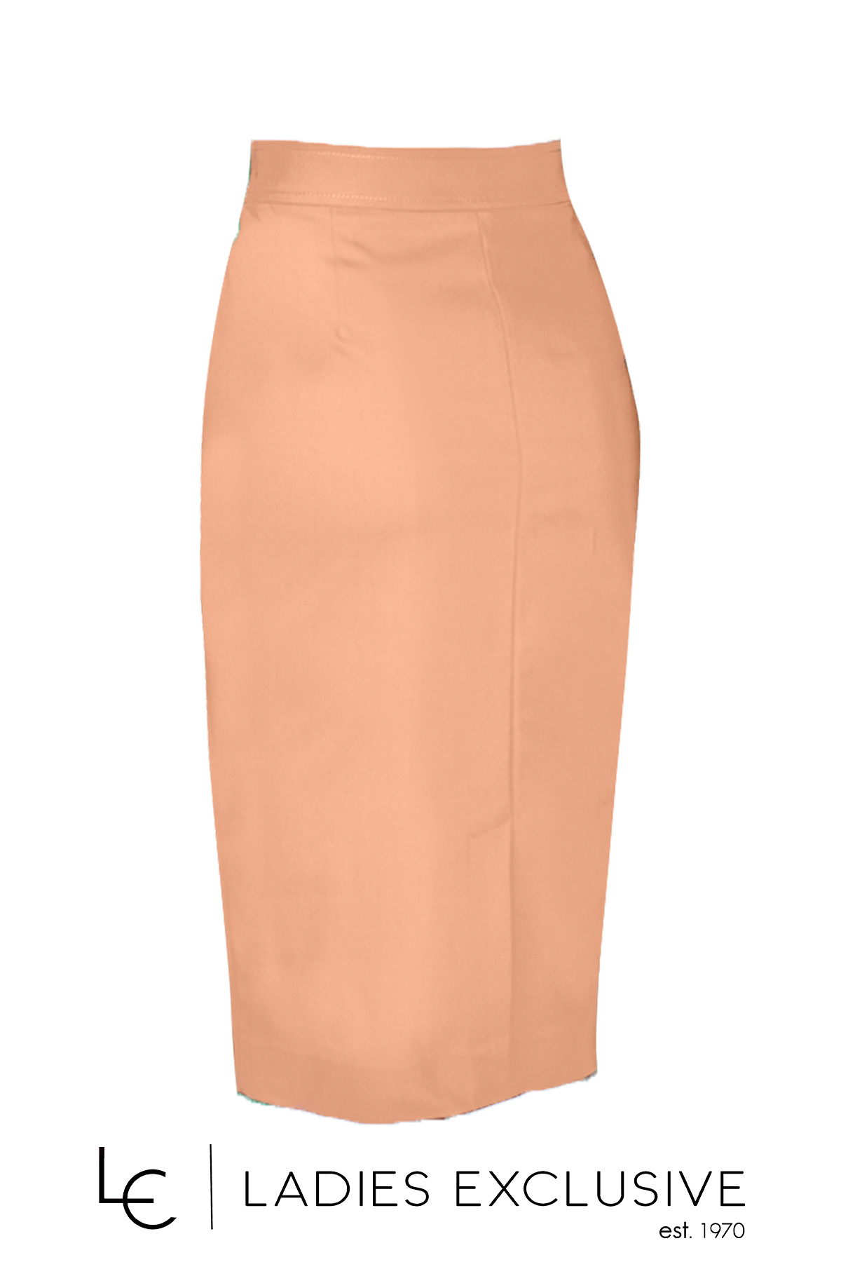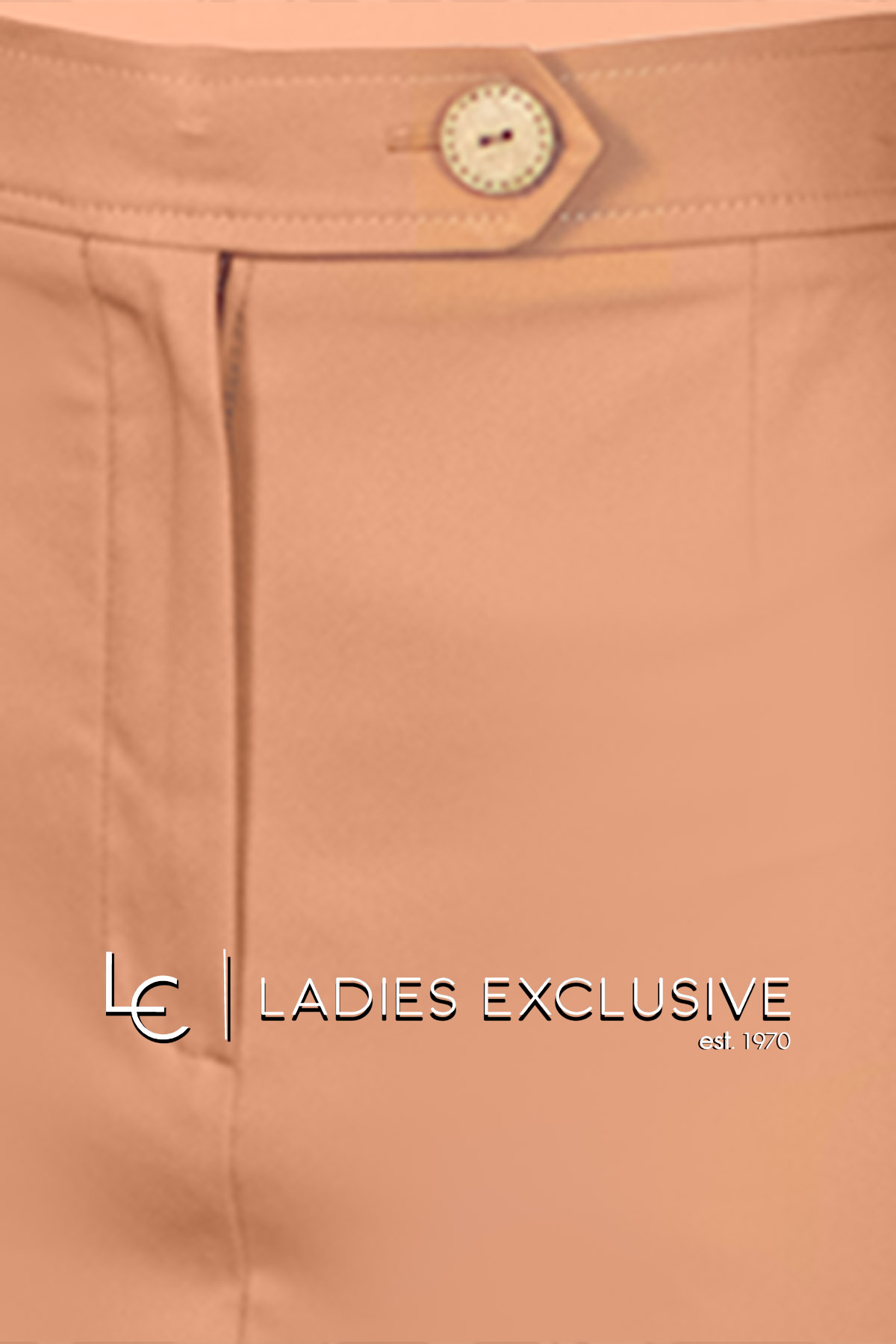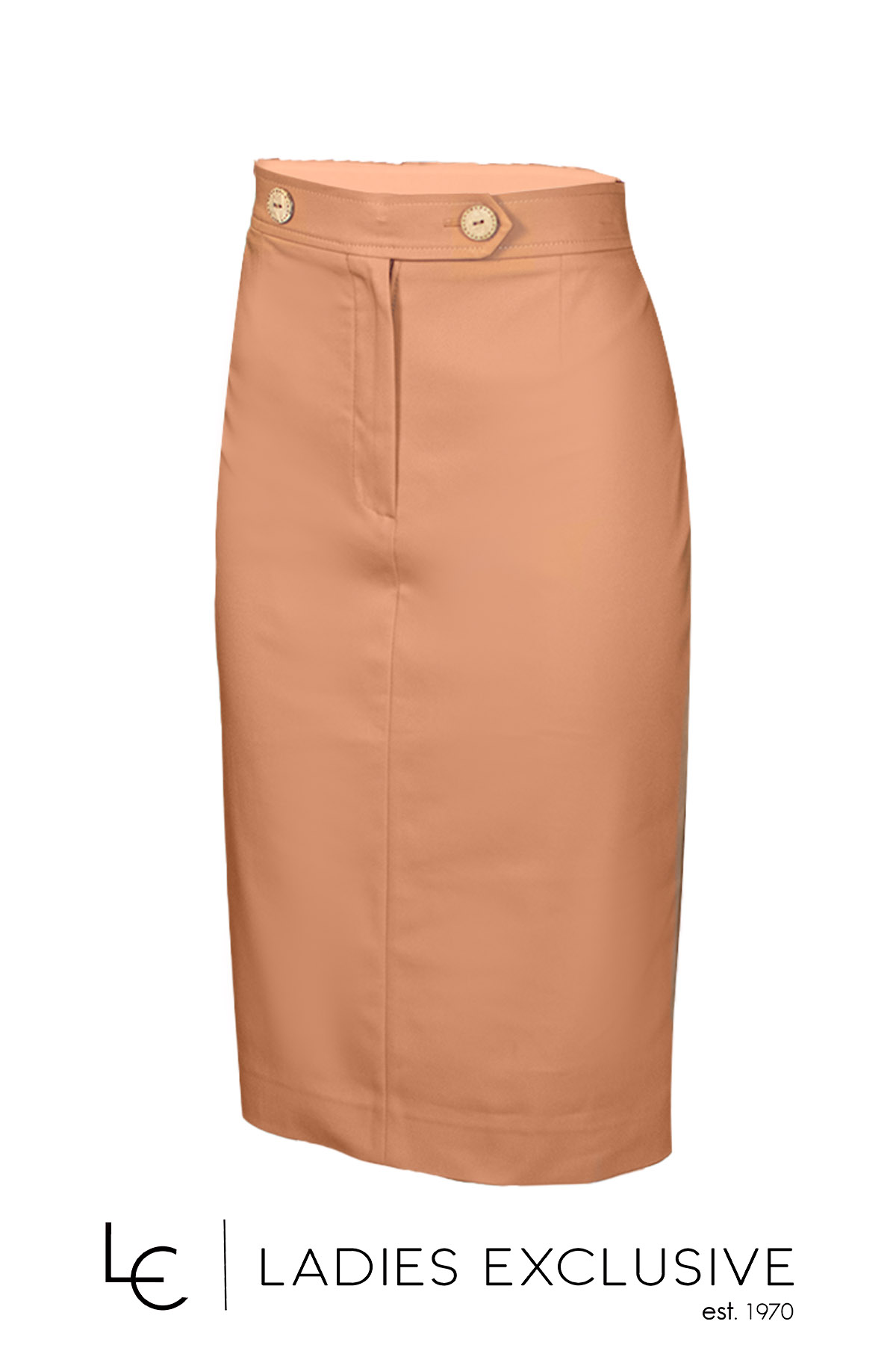 ESTEL Φούστα μπεζ βαμβακερή σε ίσια γραμμή, που κλείνει με φερμουάρ και μεγάλα κουμπιά.