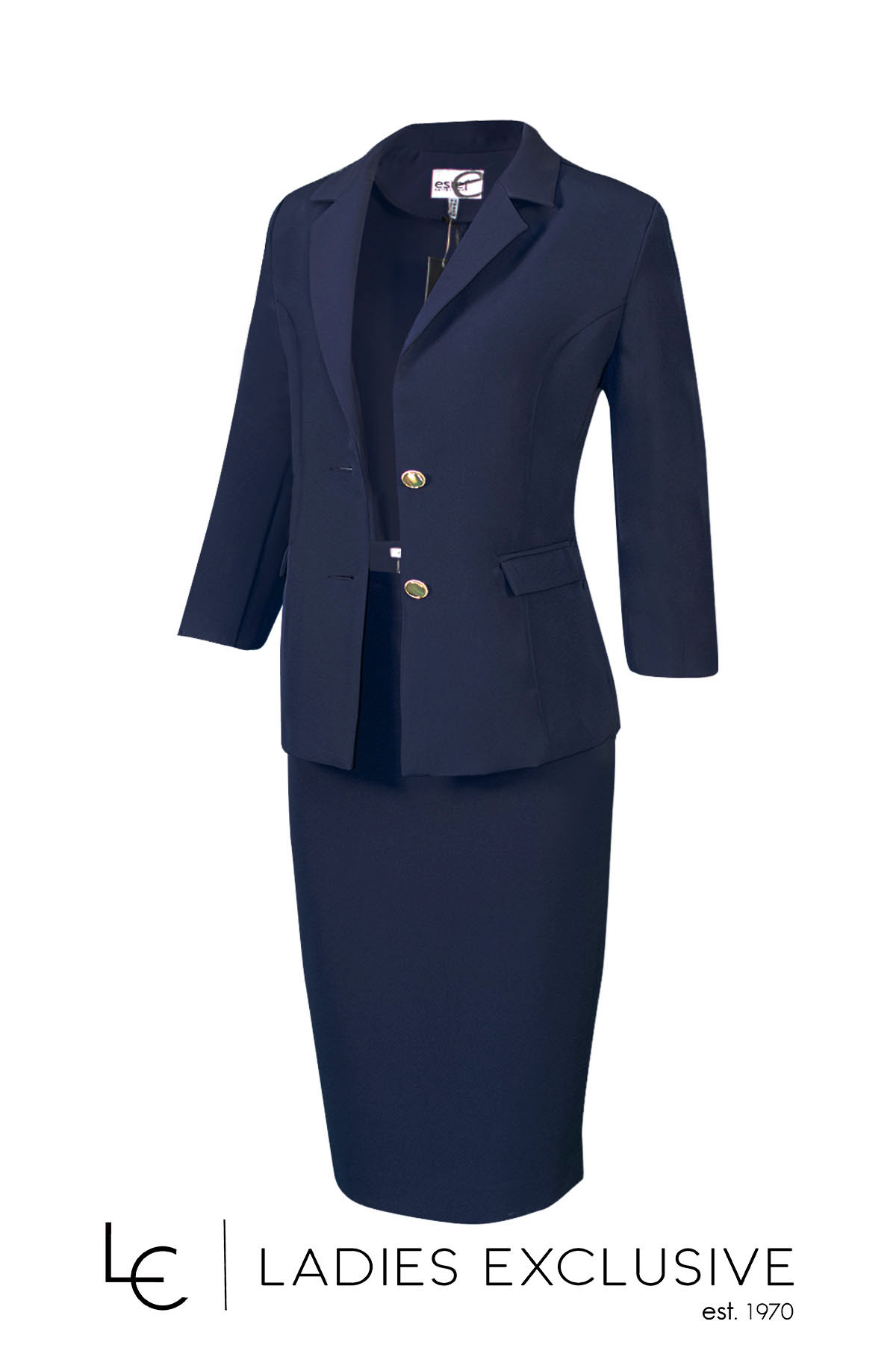 ESTEL Φούστα μπλε κρεπ σε ίσια γραμμή. Γίνεται σετ με το σακακι με κωδικό 07904-00.03.
