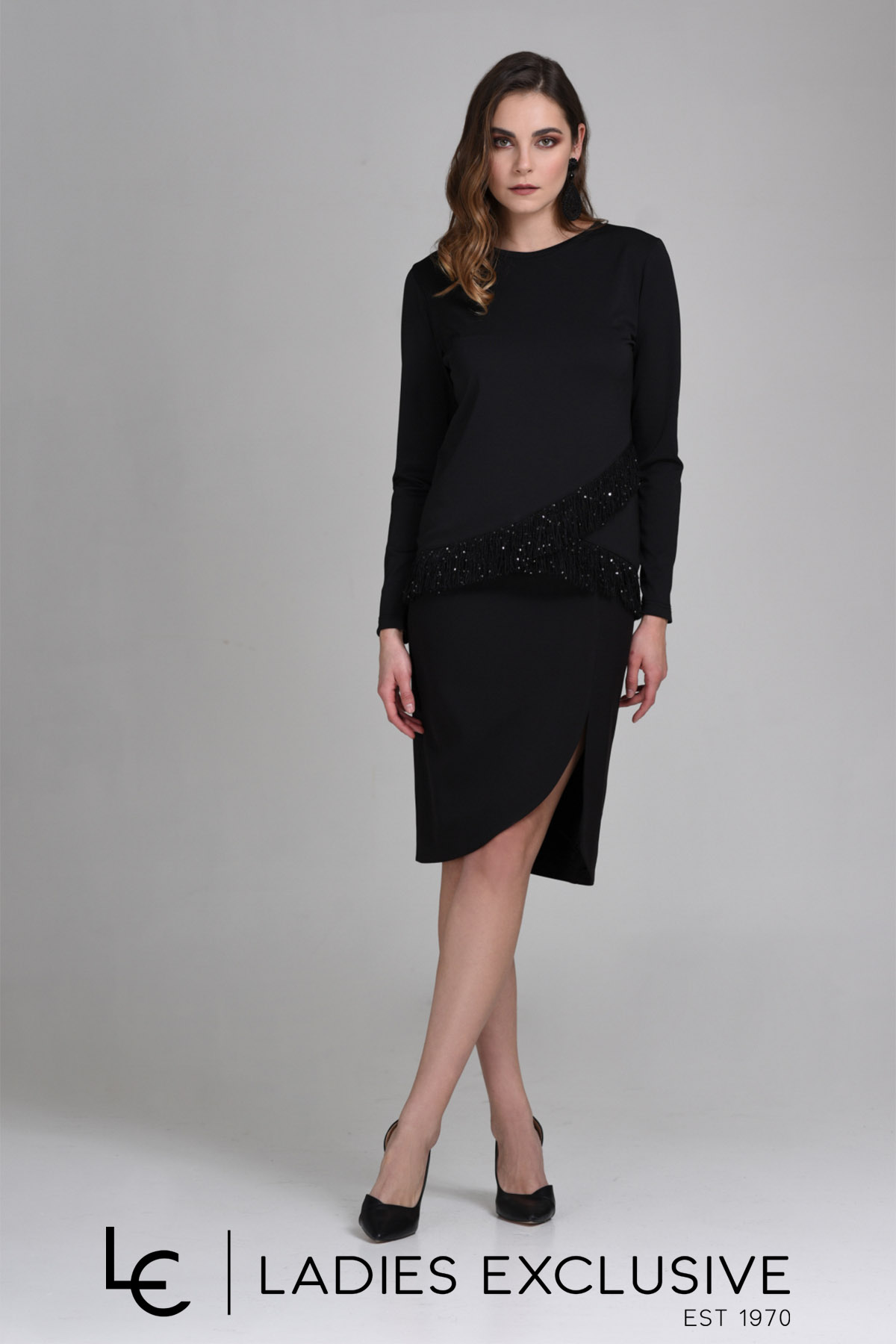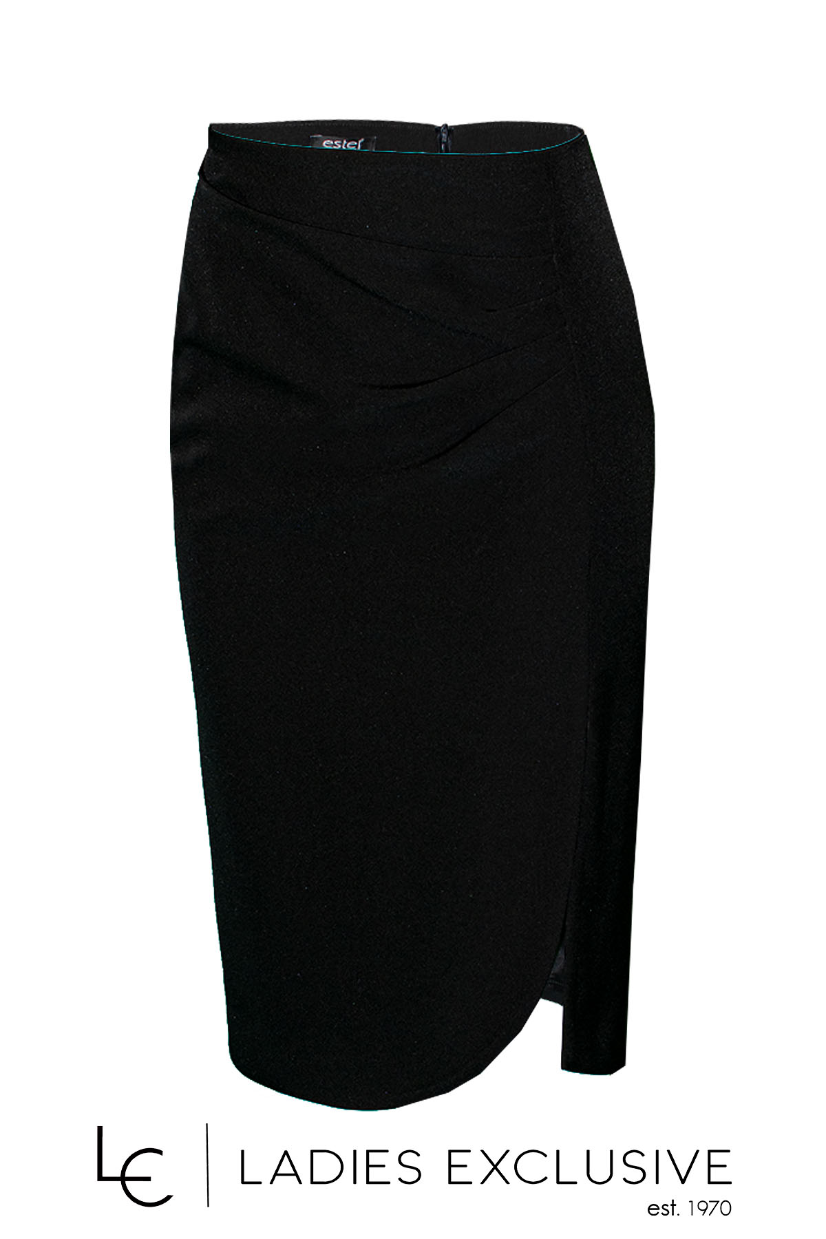 ESTEL Φούστα μαύρη κρεπ σε ίσια γραμμή με μεγάλο άνοιγμα στο μπροστινό μέρος.