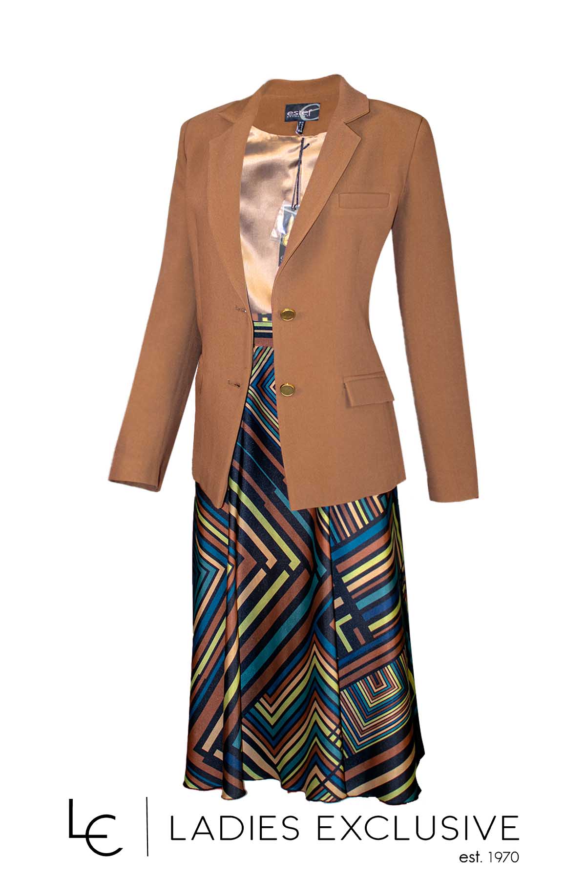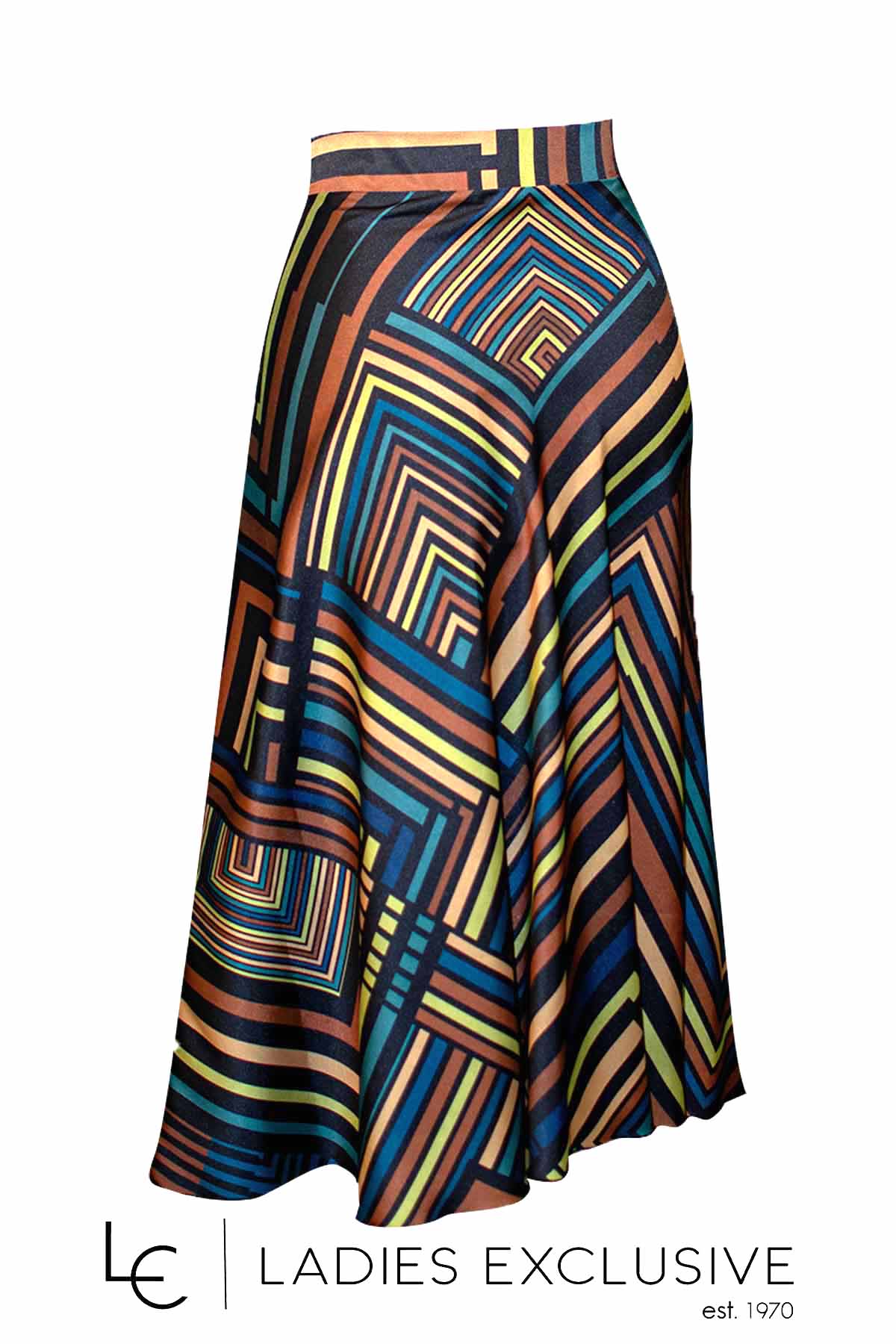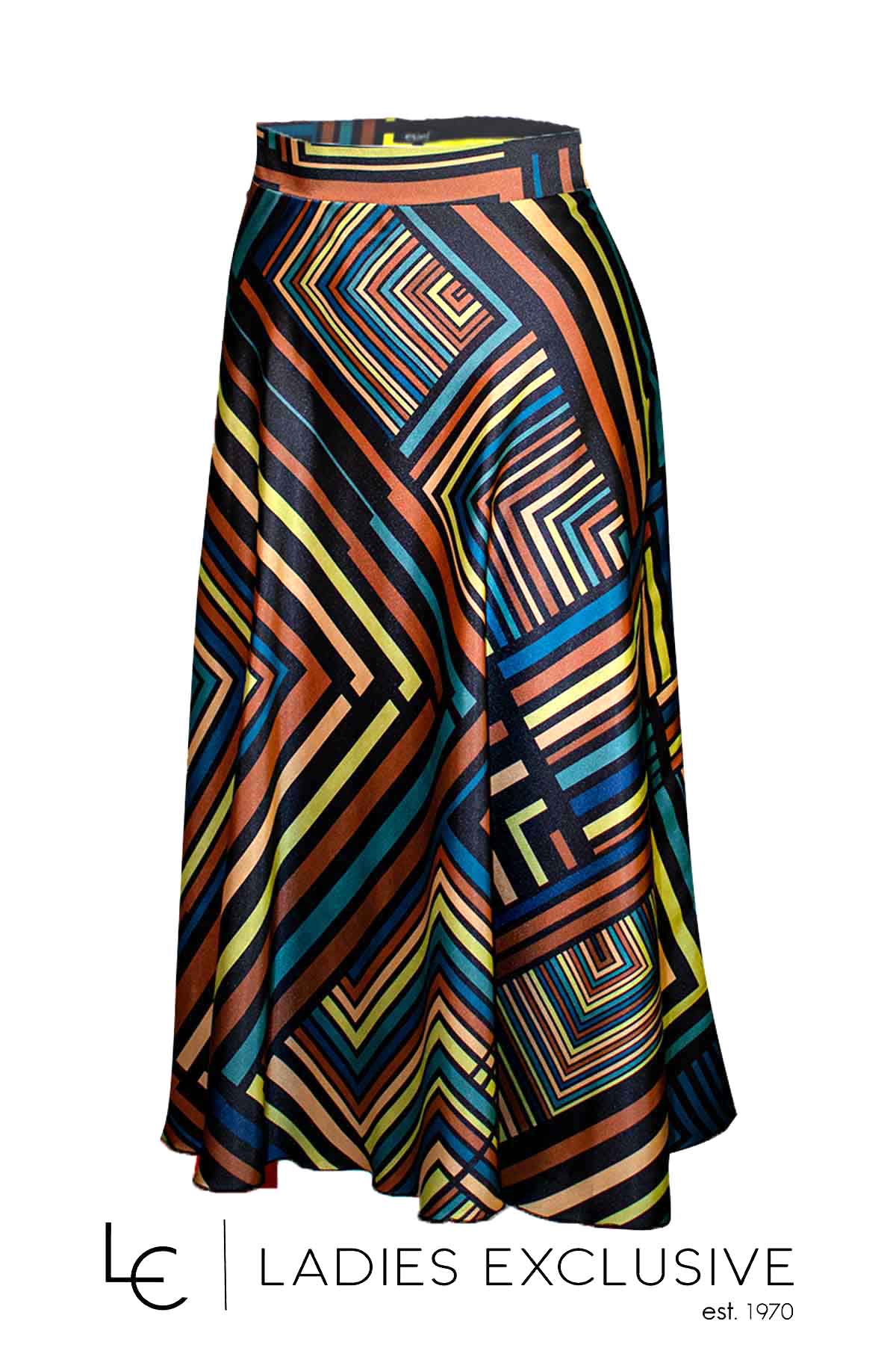 ESTEL Φούστα εμπριμέ με γεωμετρικά μοτίβα σατέν κλος.