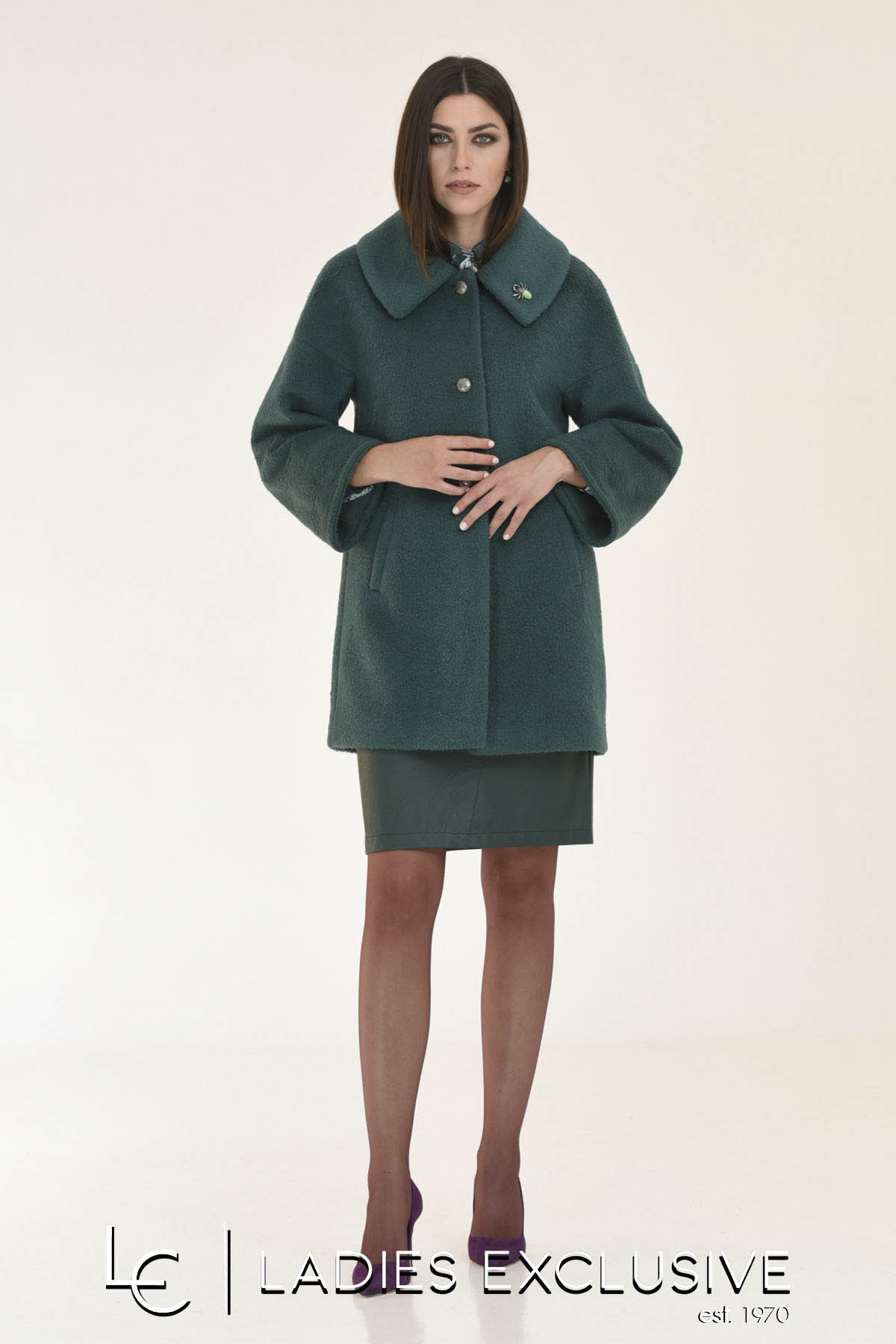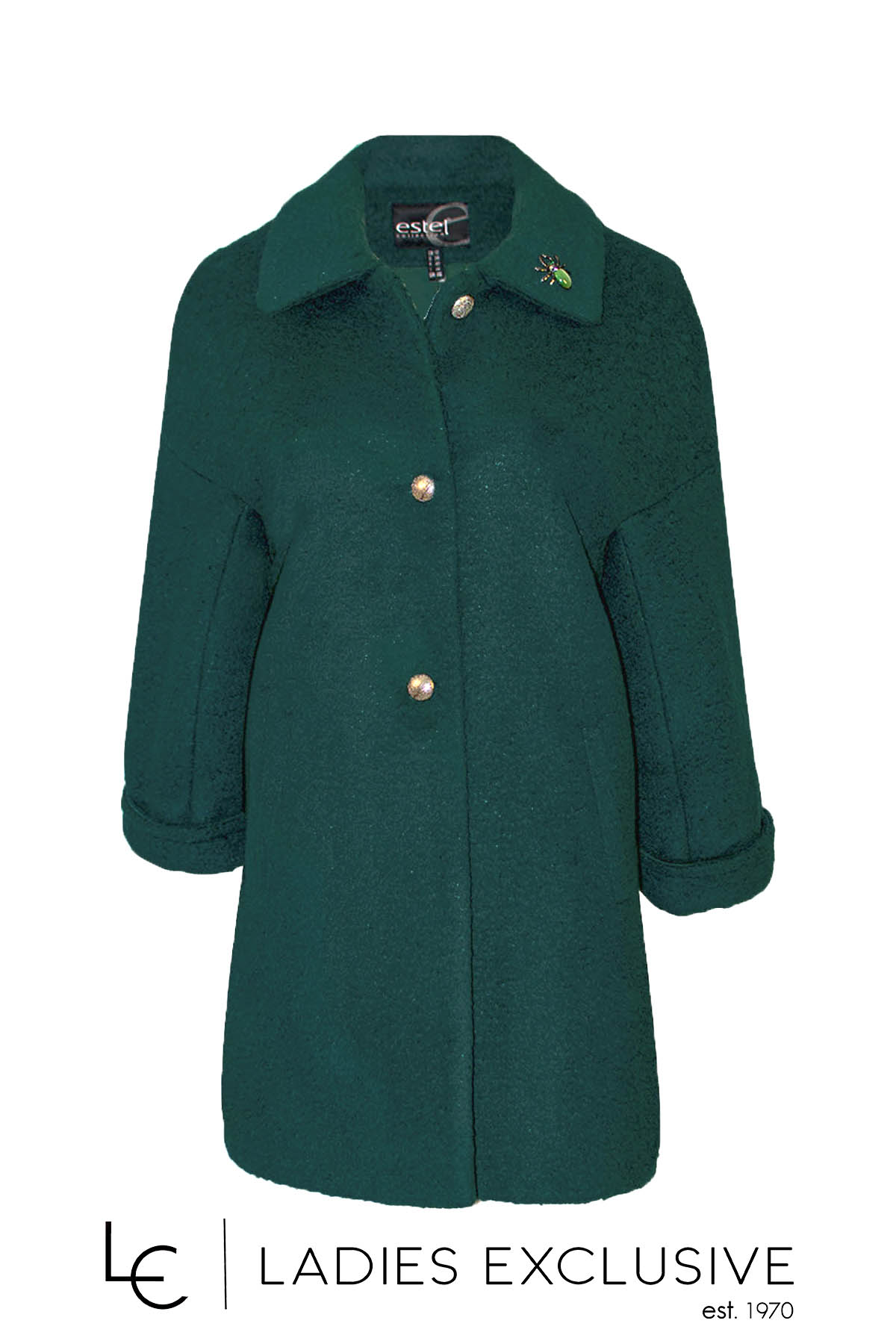 ESTEL Ημίπαλτο πράσινο σε άνετη γραμμή με μανίκι ρεγκλάν και καρφίτσα στο πέτο.