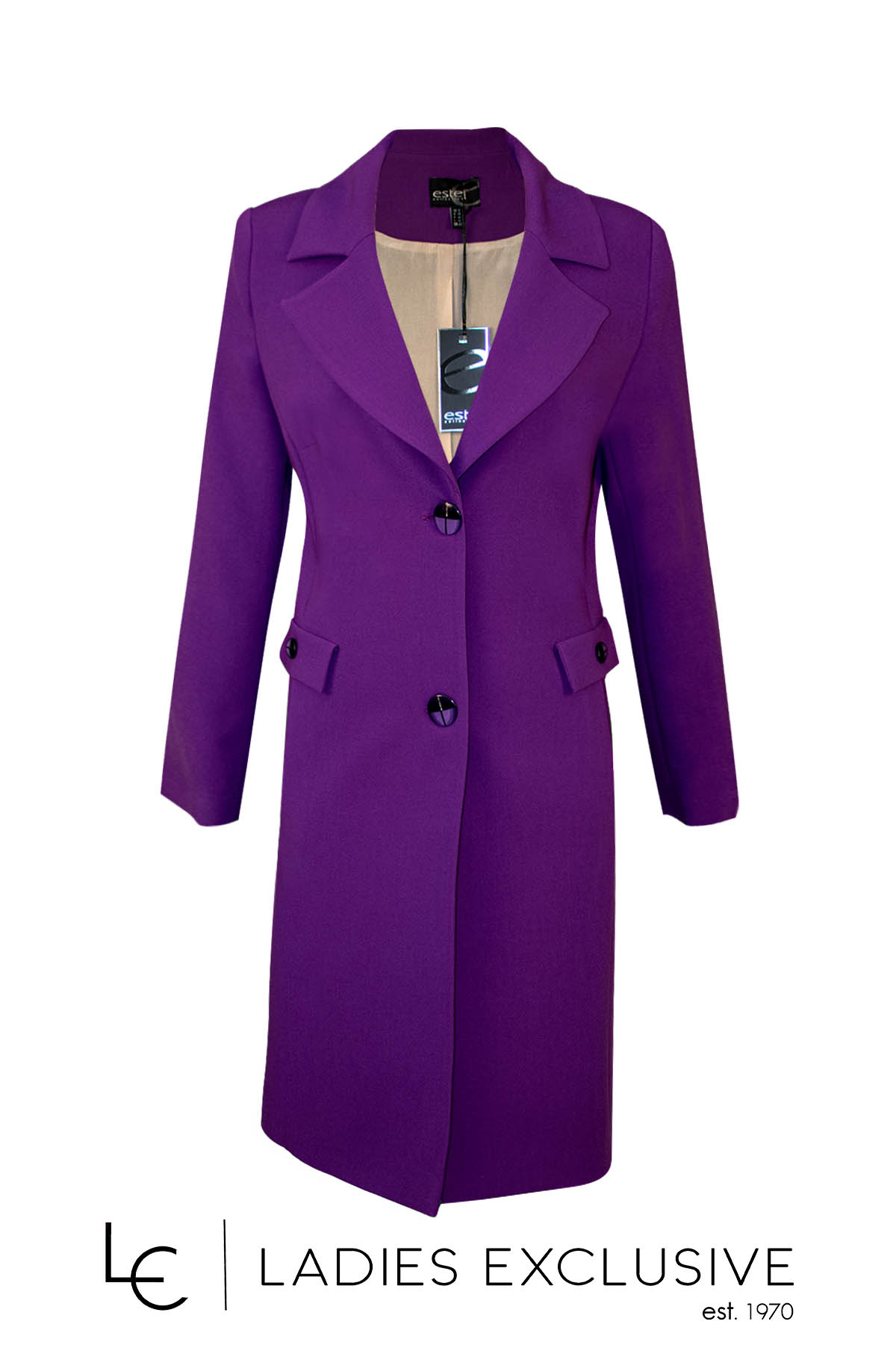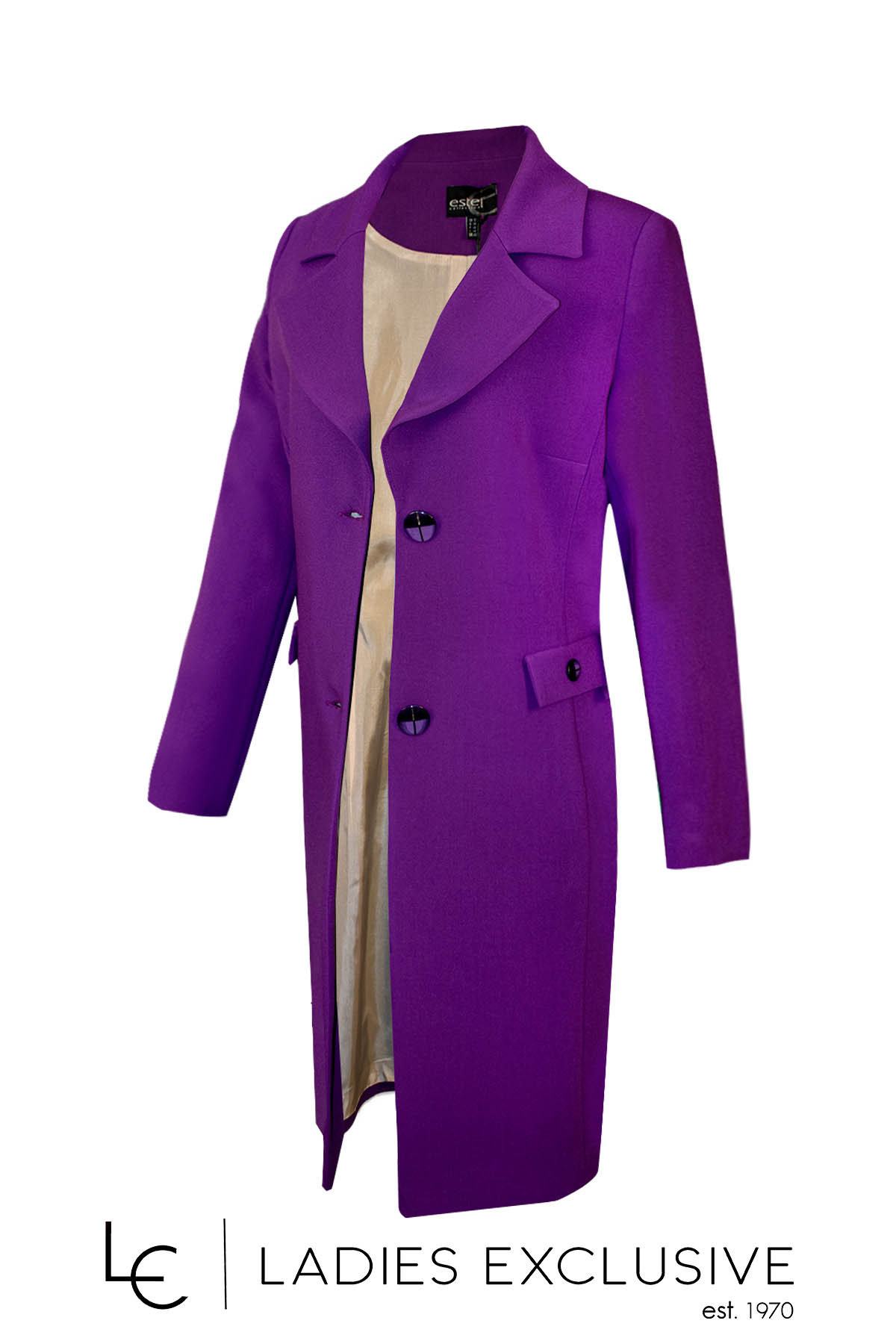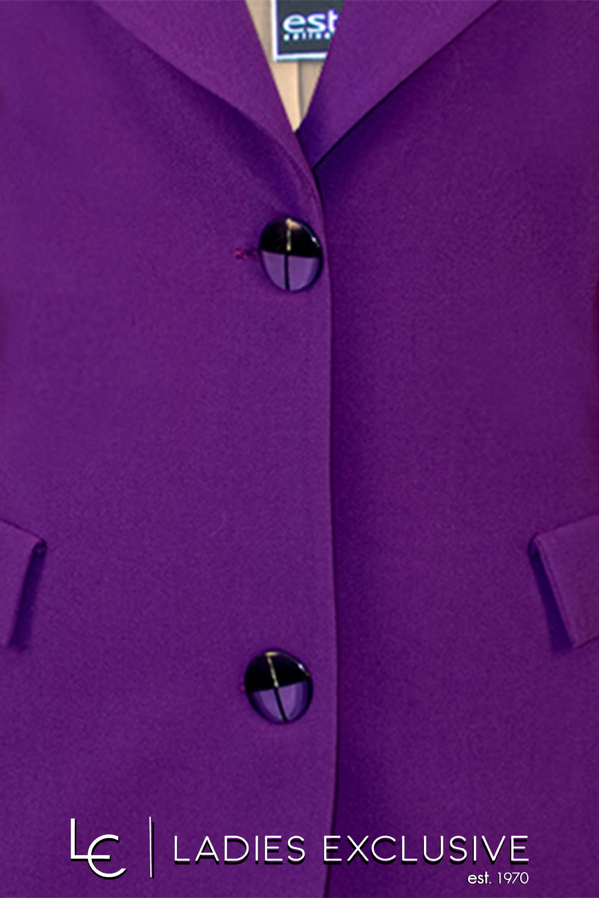 ESTEL Μαντώ μωβ κρεπ με πλαϊνές τσέπες κρυφές και διακοσμητικά καπάκια με κουμπί.