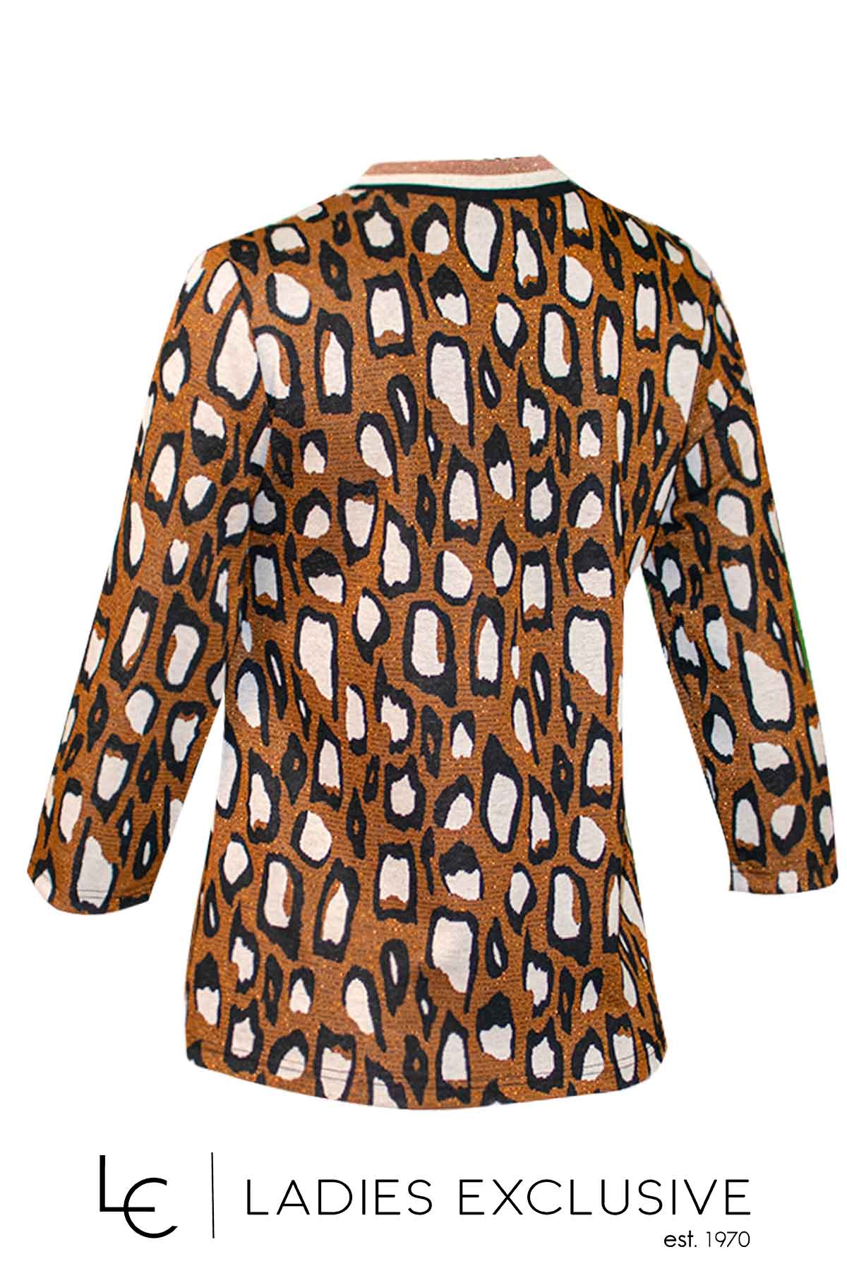 ESTEL Μπλούζα animal print, με χρυσοκλωστή στην ύφανση, με μανίκι 3/4 και ελαστική λαιμόκοψη.