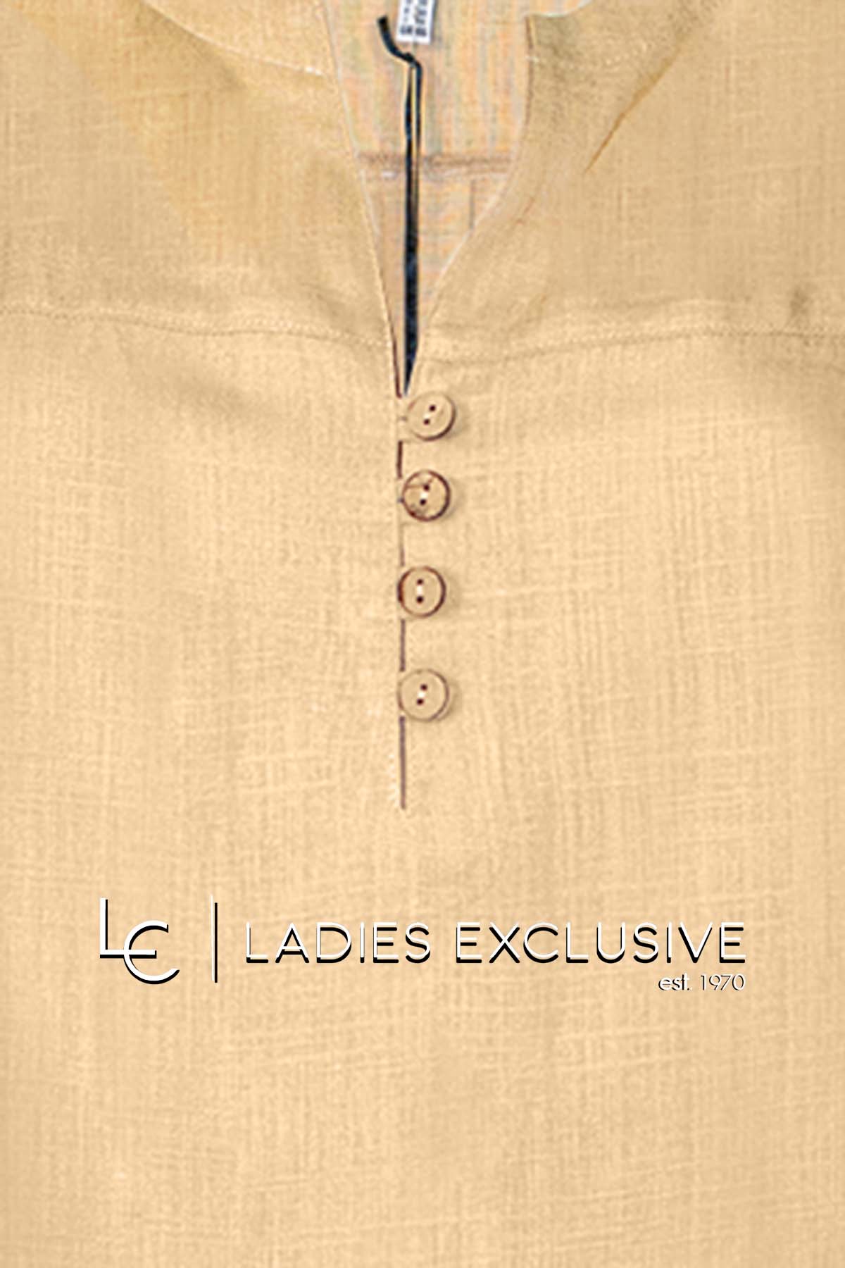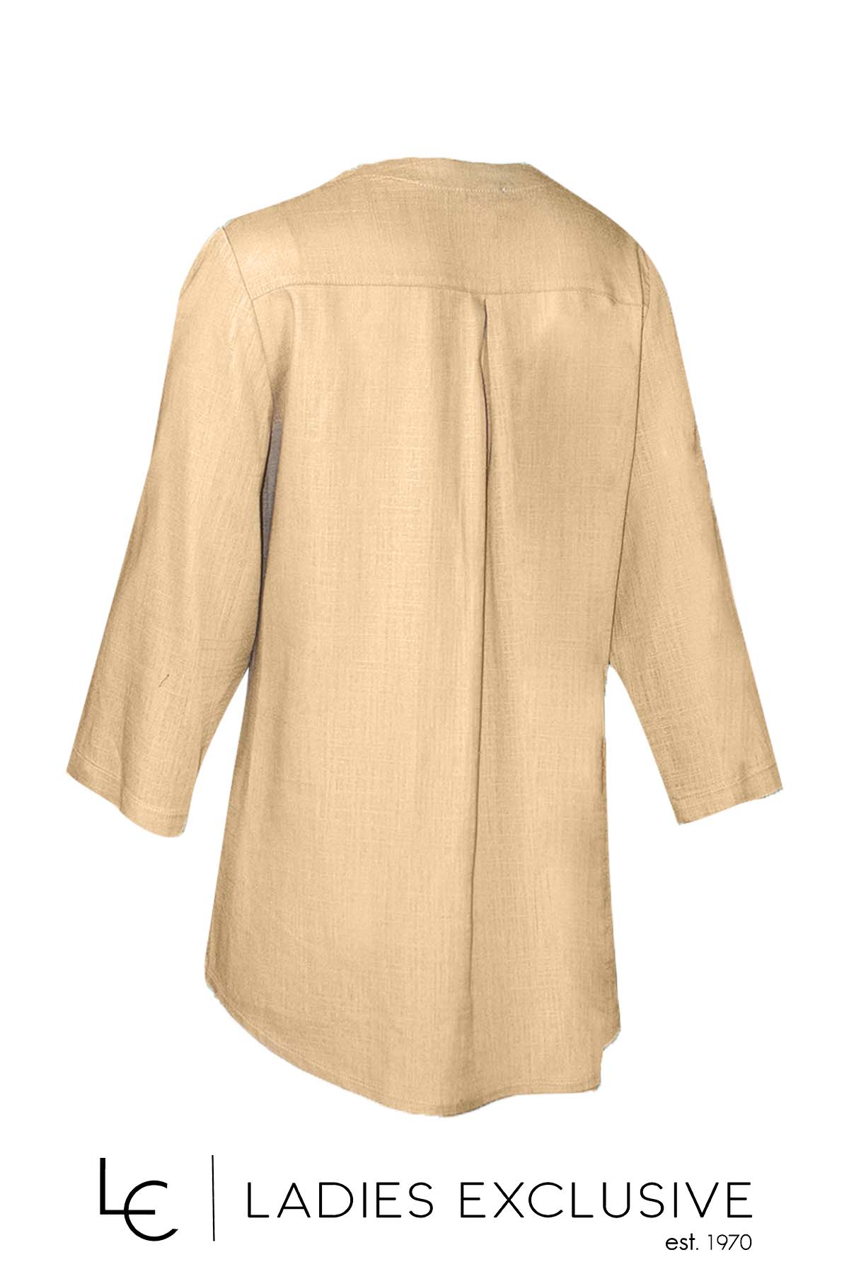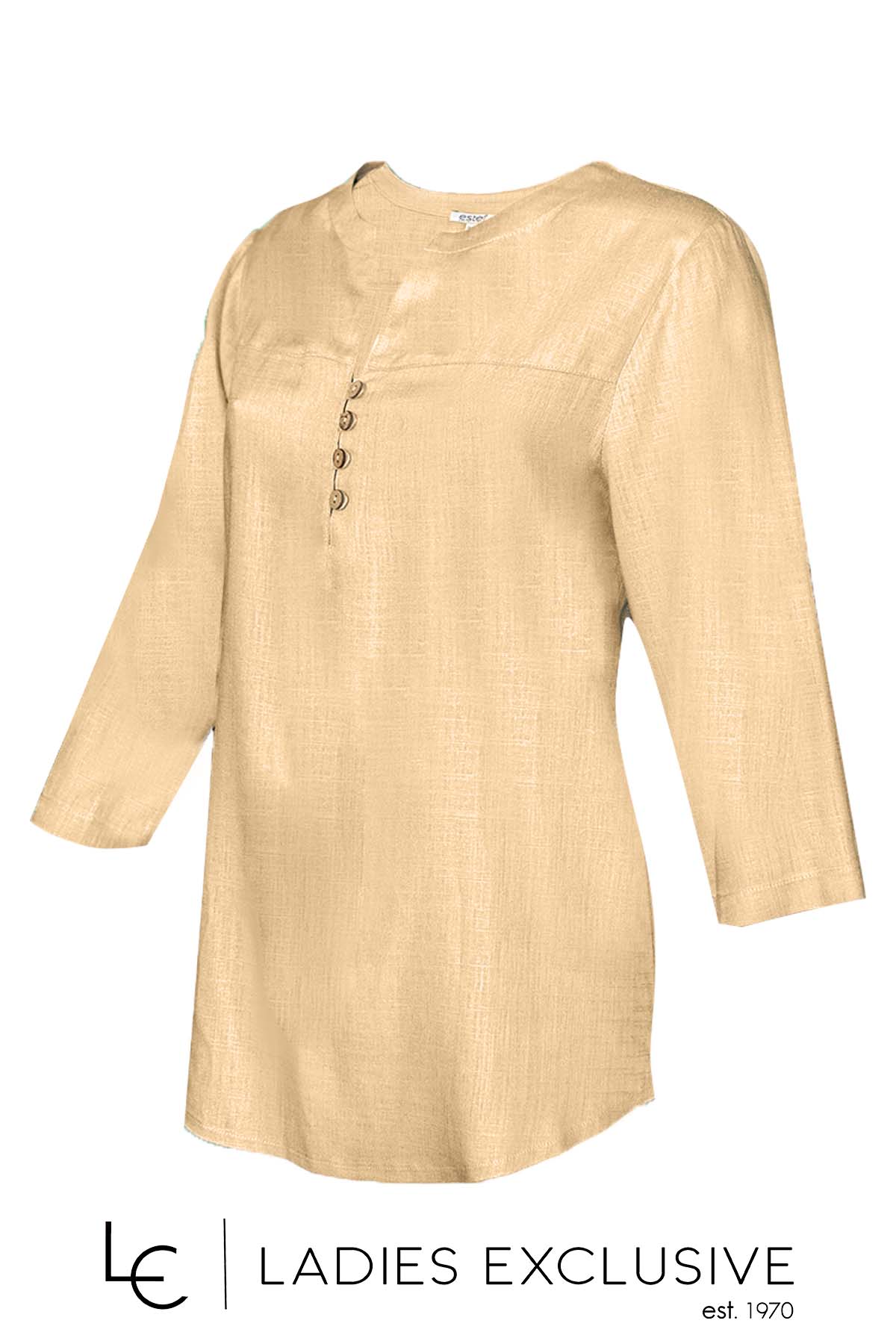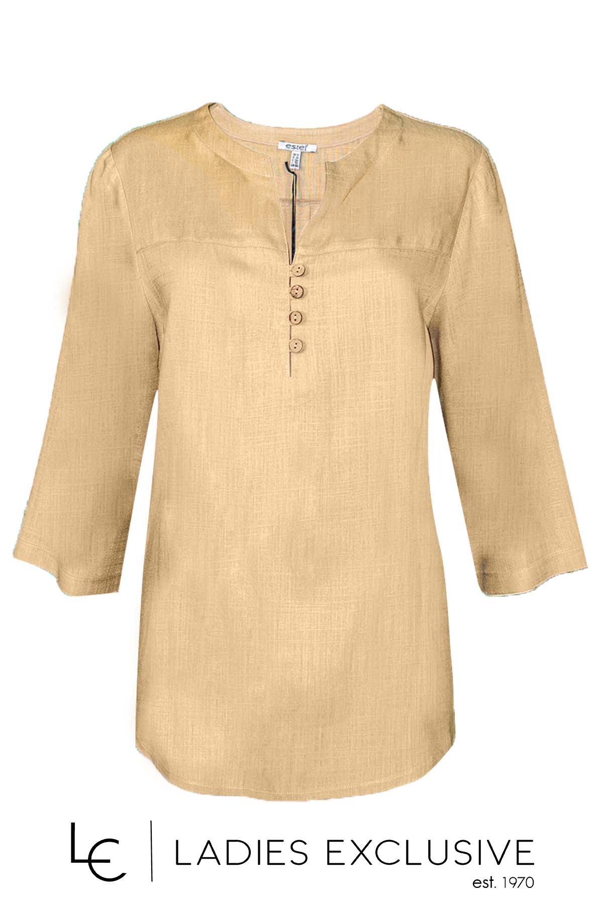 ESTEL Μπλούζα μπεζ λινή σε άνετη γραμμή, με μανίκι 3/4 και άνοιγμα v με κουμπιά.