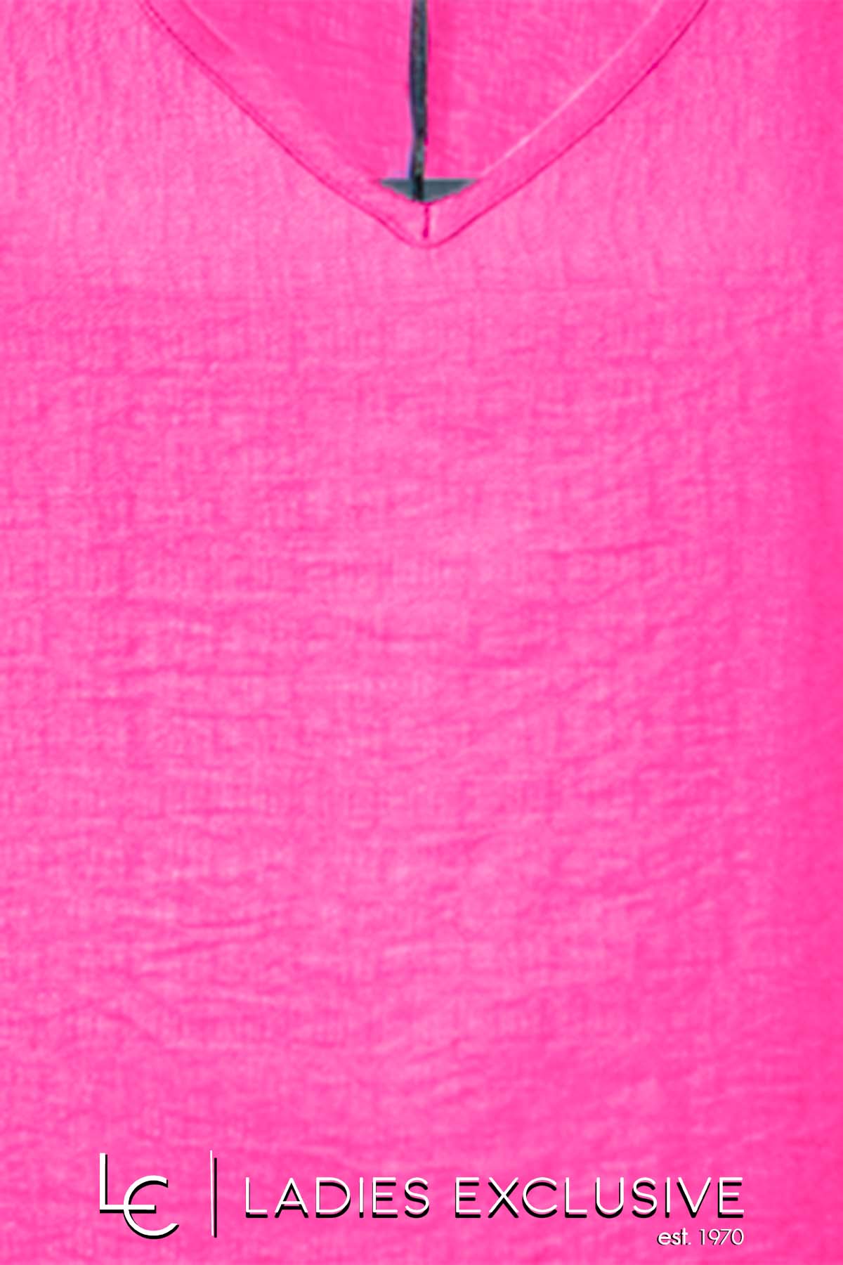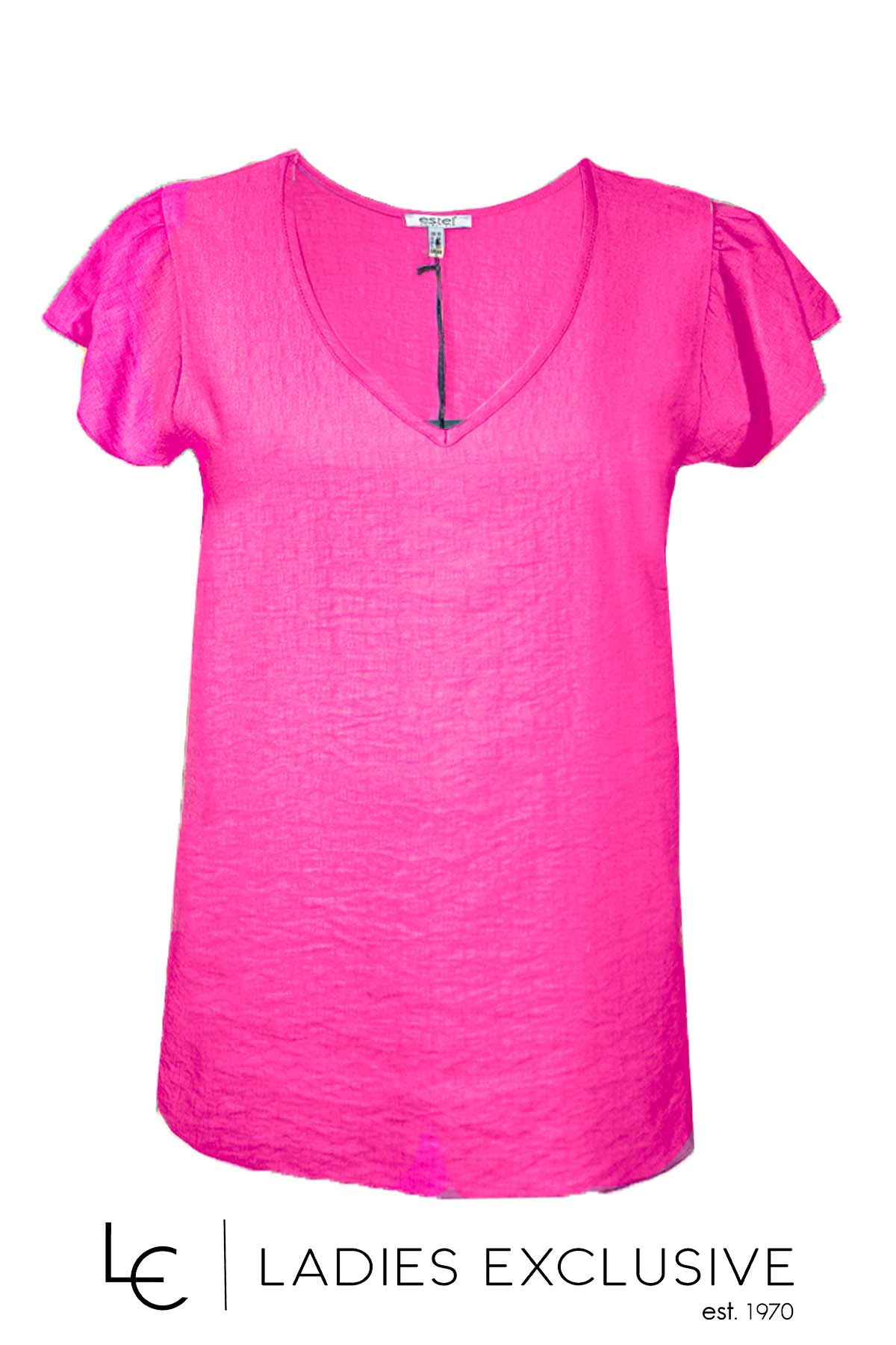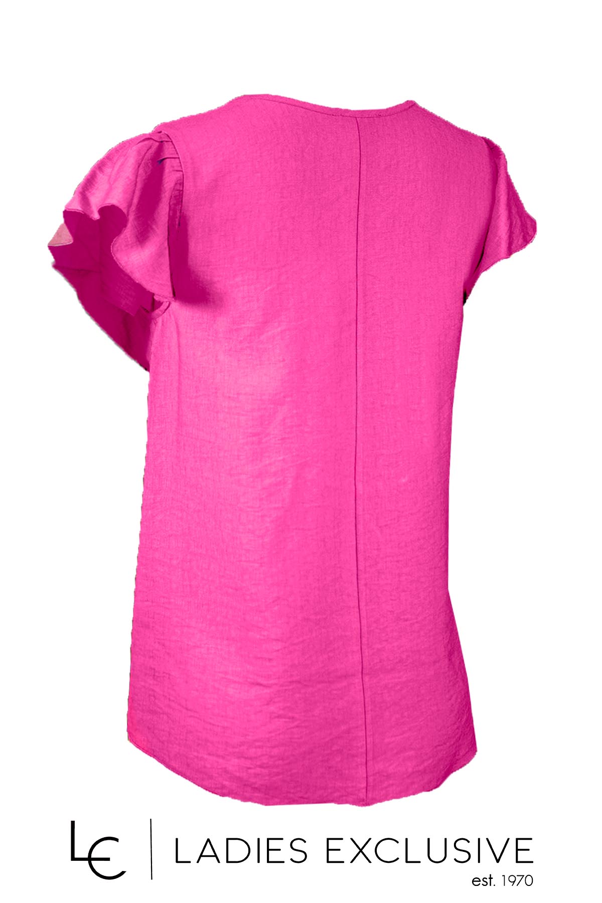 ESTEL Μπλούζα φούξια σε άνετη γραμμή, με βολάν στο μανίκι και άνοιγμα v.