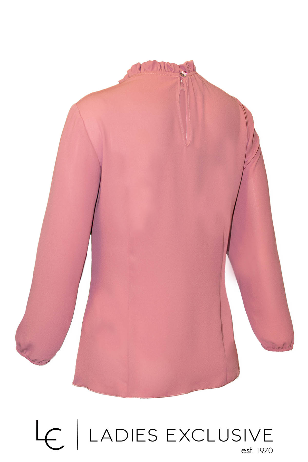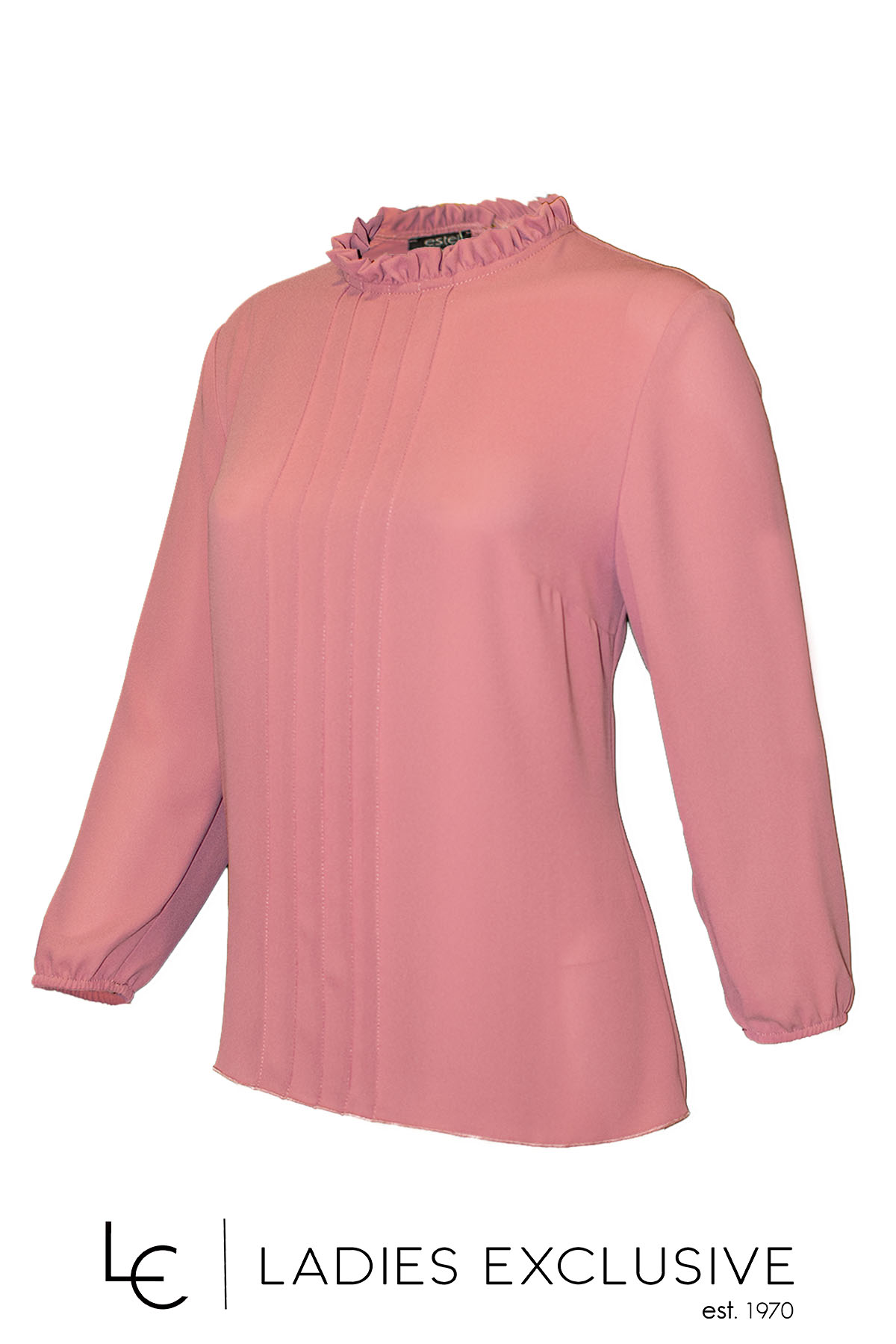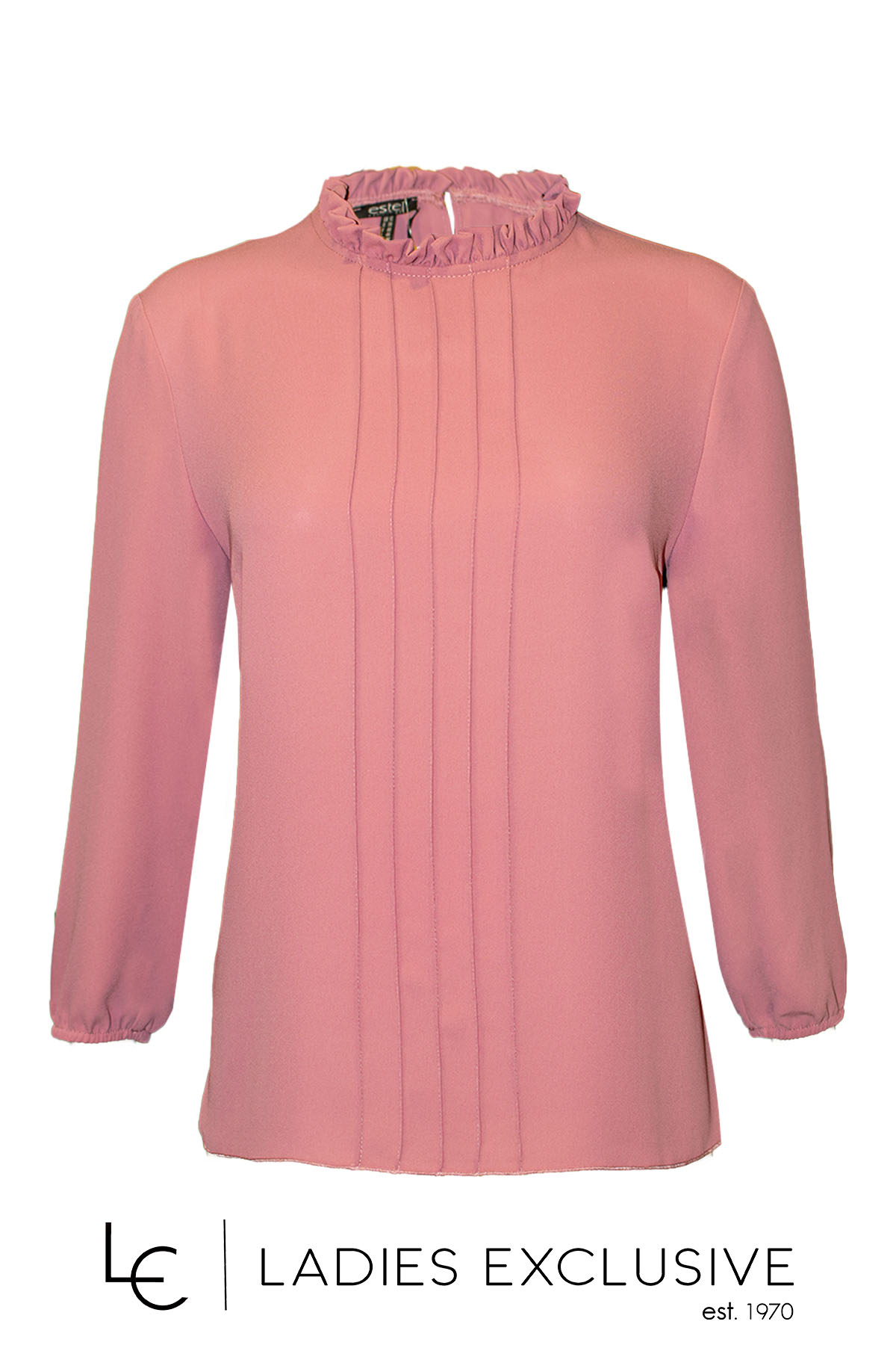 ESTEL Μπλούζα ροζ με μακρύ μανίκι, με μικρό βολάν στο λαιμό και διακοσμητικές πιέτες στο μπροστινό μέρος.
