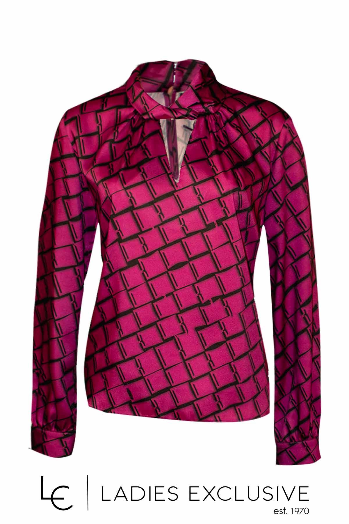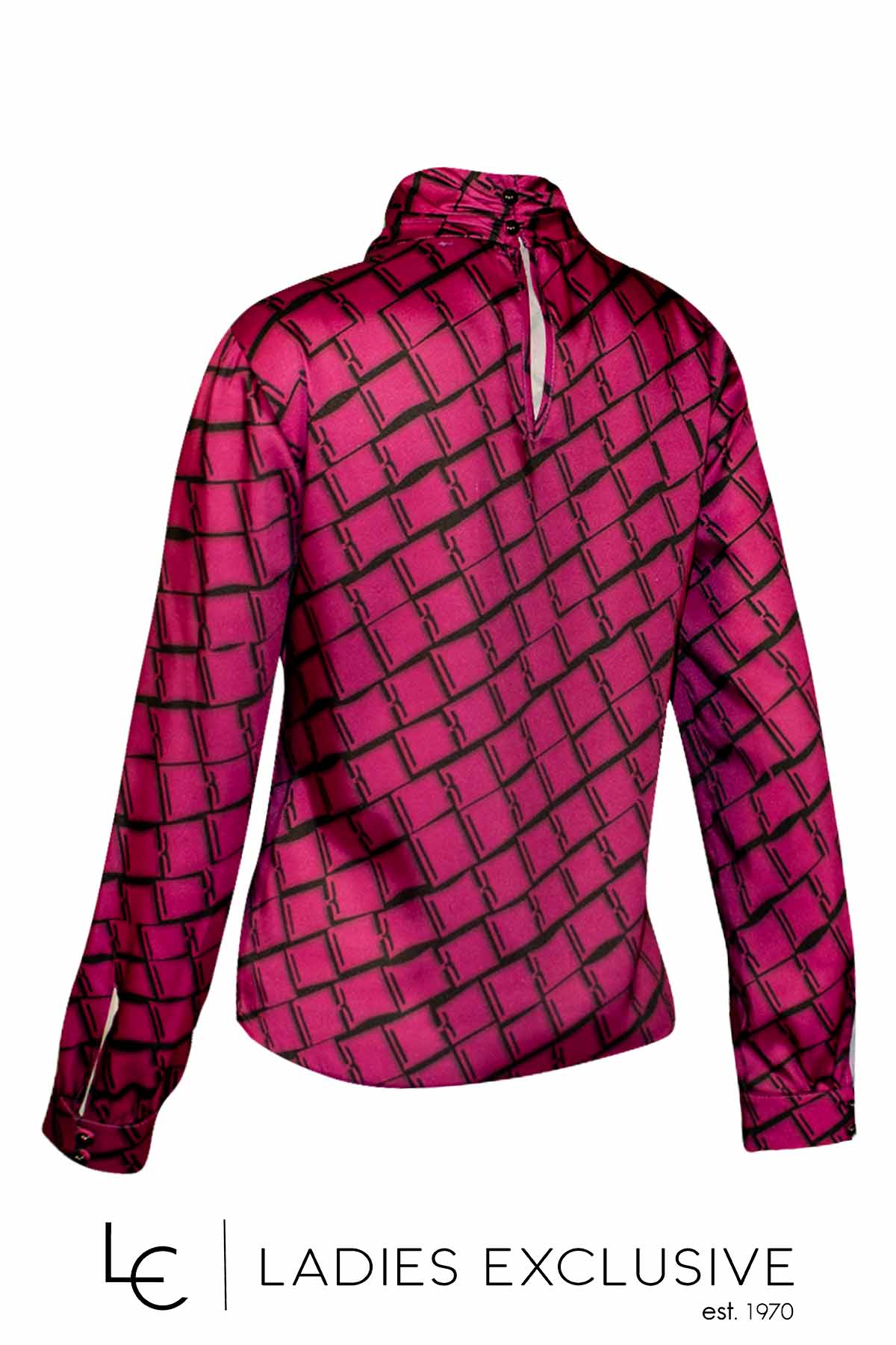 ESTEL Μπλούζα ματζέντα με σχέδια, όρθιο λαιμό και άνοιγμα στο μπροστινό μέρος.