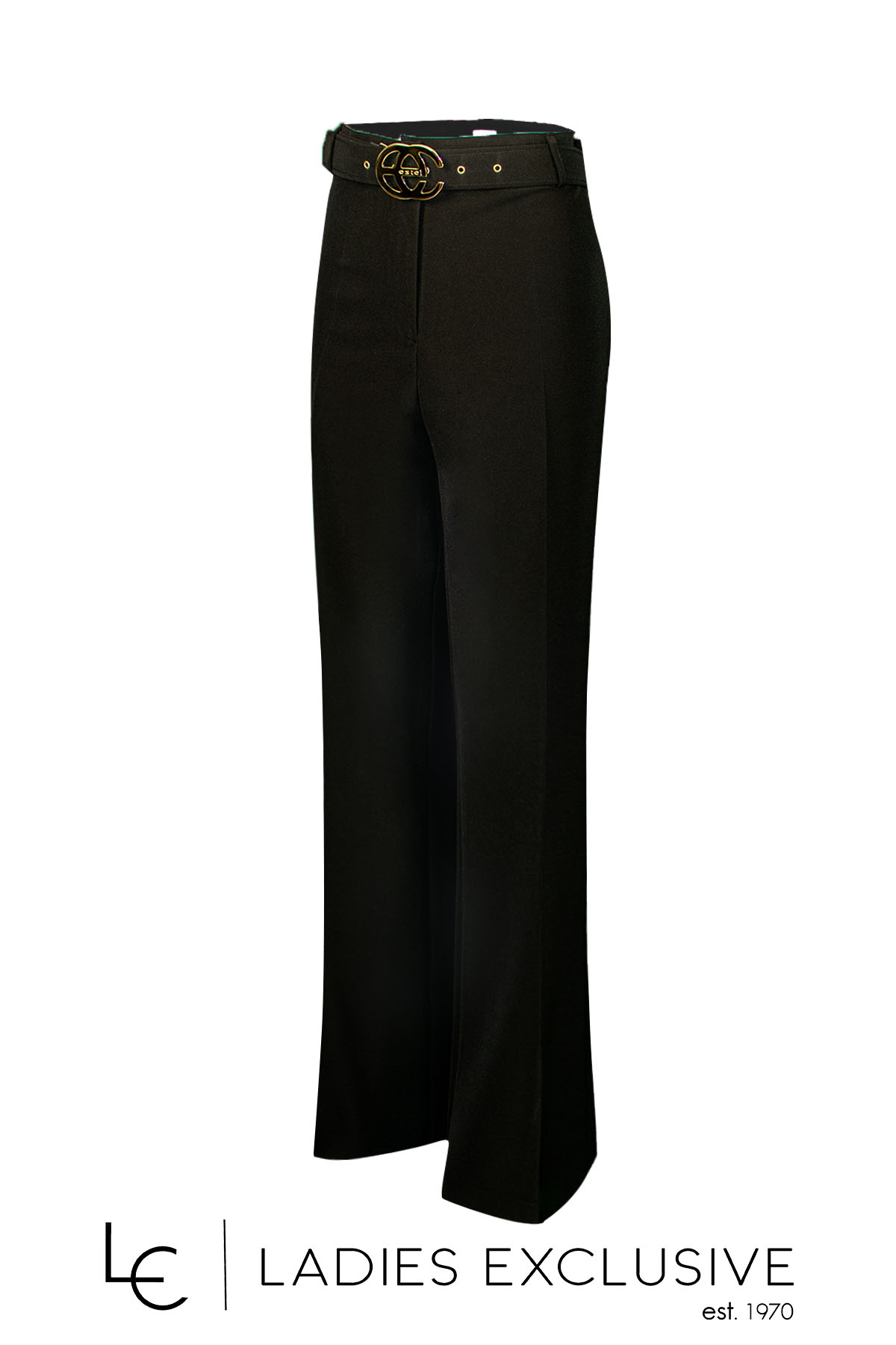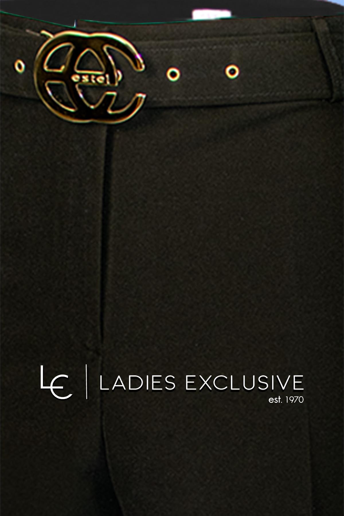 ESTEL Παντελόνα μαύρη κρεπ με ζώνη από το ίδιο ύφασμα και εντυπωσιακή αγκράφα.