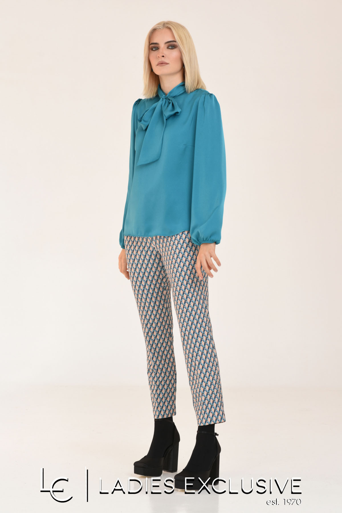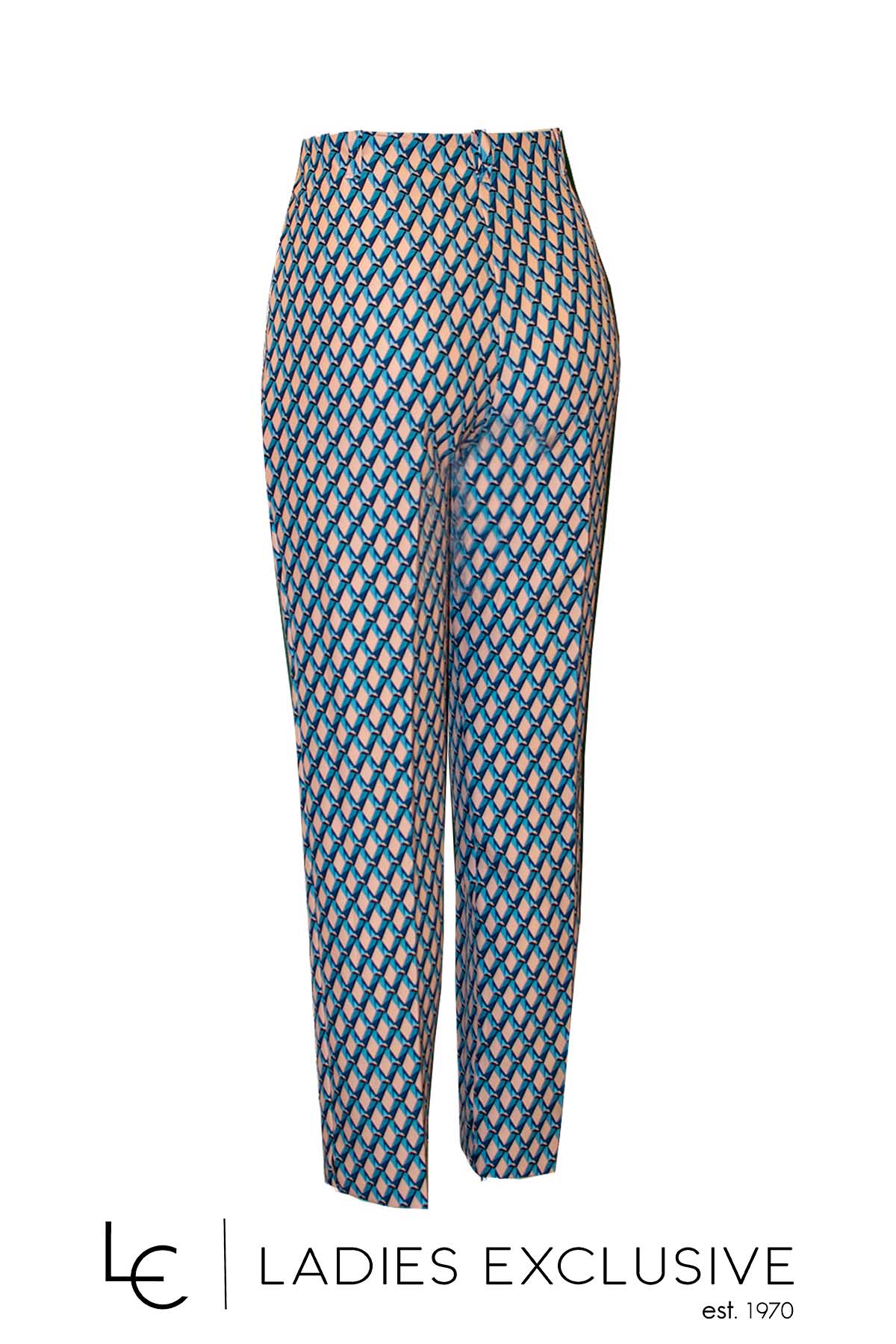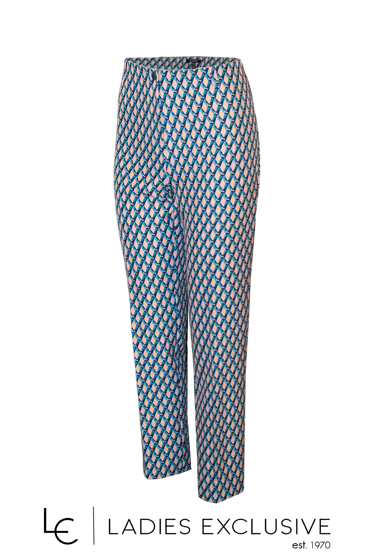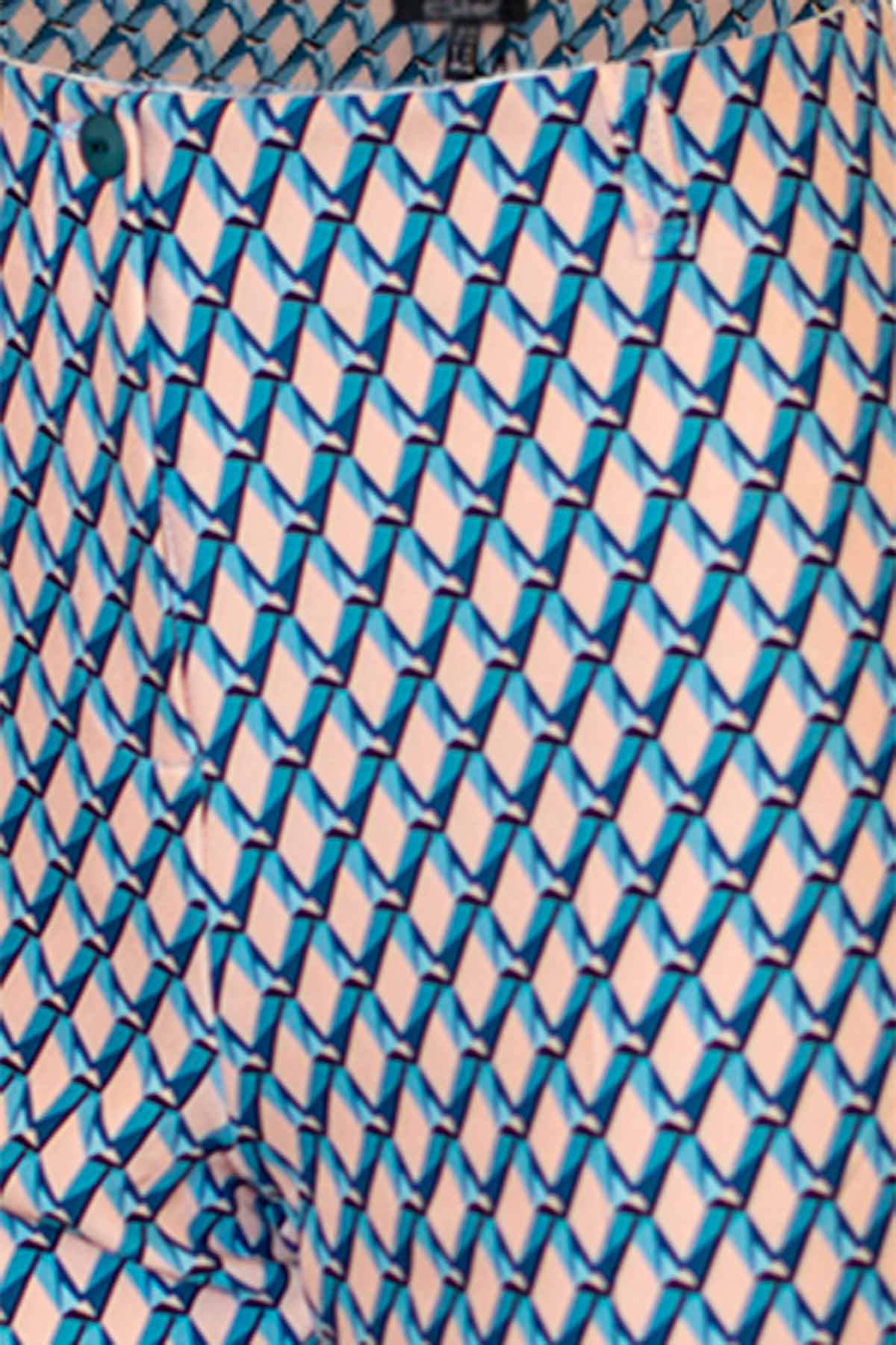 ESTEL Παντελόνι αστραγάλου με vintage μοτίβο σε πετρόλ απόχρωση. Υπάρχει και ίδιο πουκάμισο με τον κωδ. 07345-00.11.