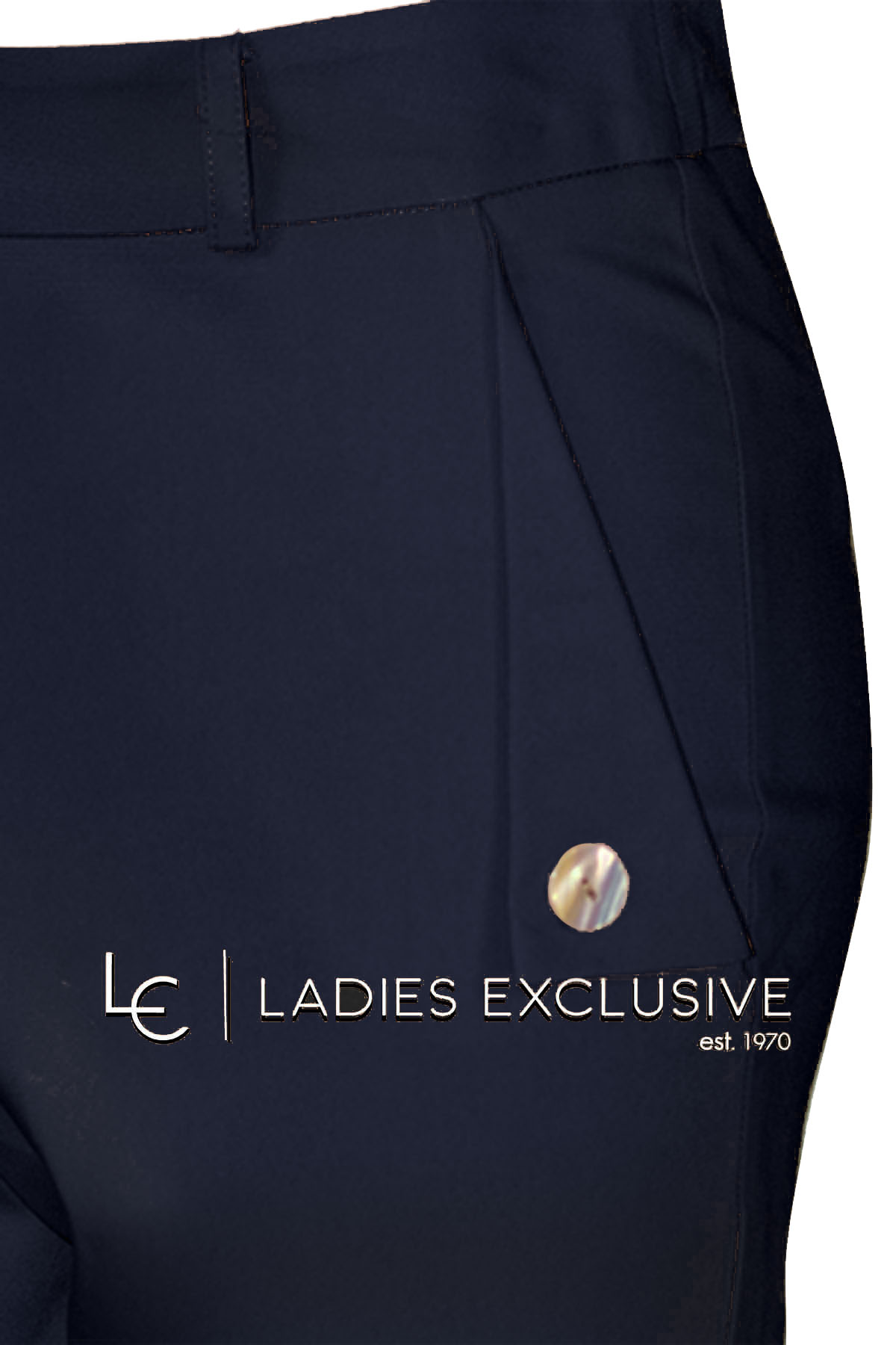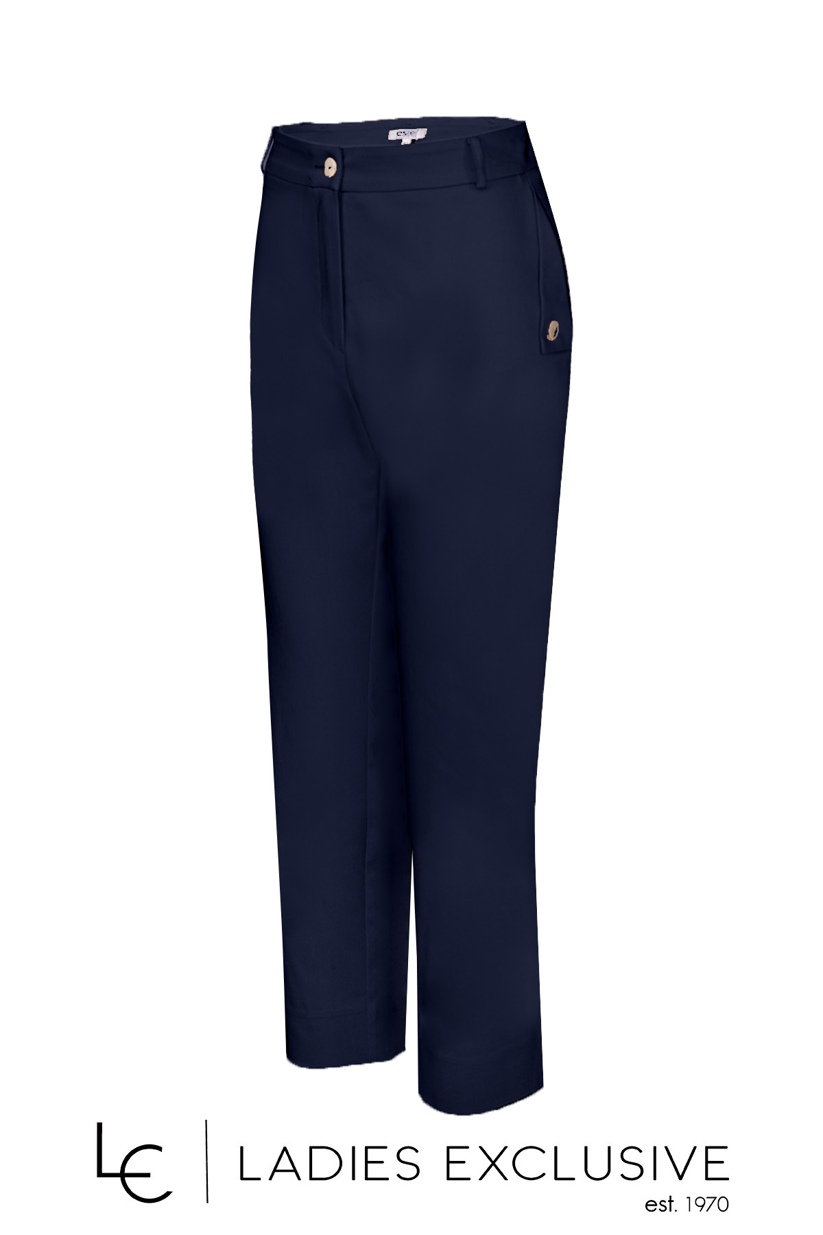 ESTEL Παντελόνι μπλε βαμβακερό αστραγάλου, με ιδιαίτερες πλαϊνές τσέπες με κουμπί.