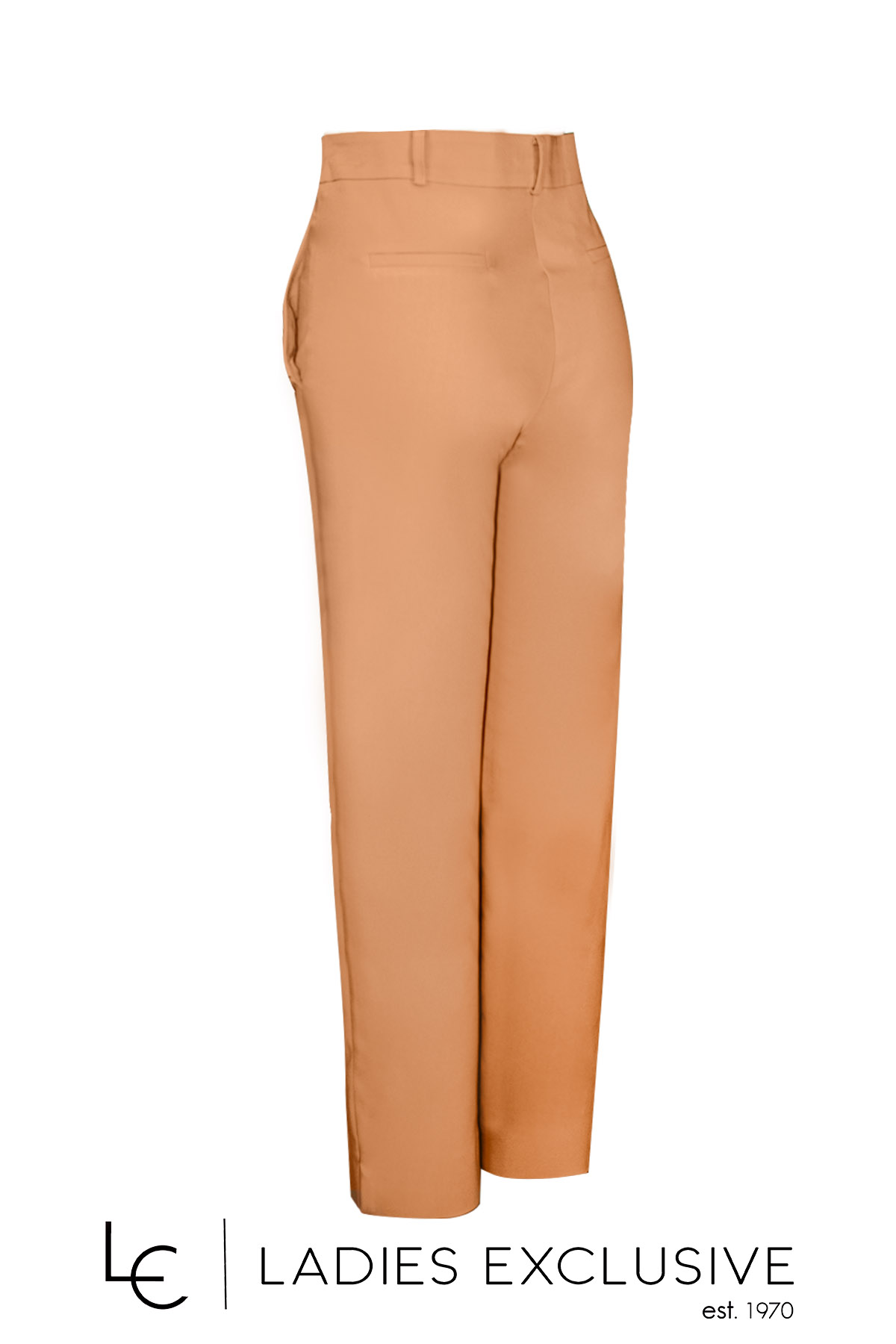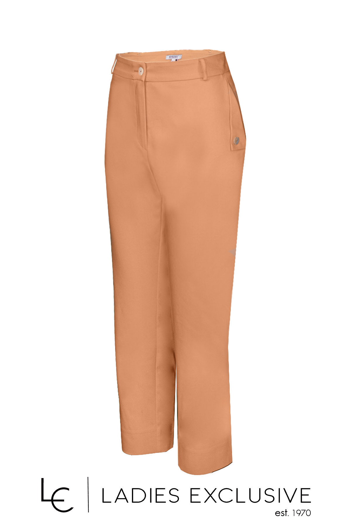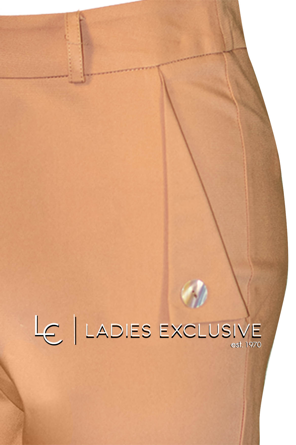 ESTEL Παντελόνι καμηλό βαμβακερό αστραγάλου, με ιδιαίτερες πλαϊνές τσέπες με κουμπί.