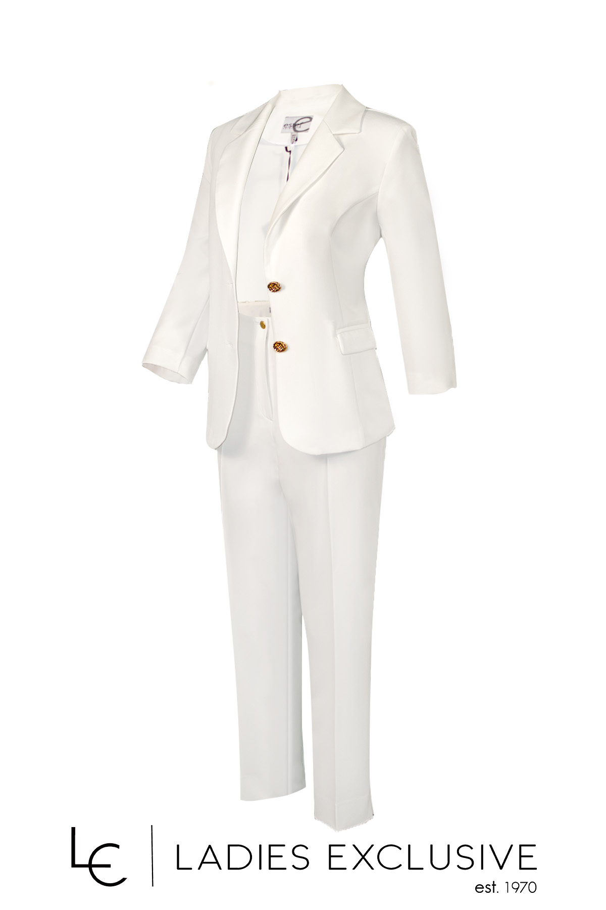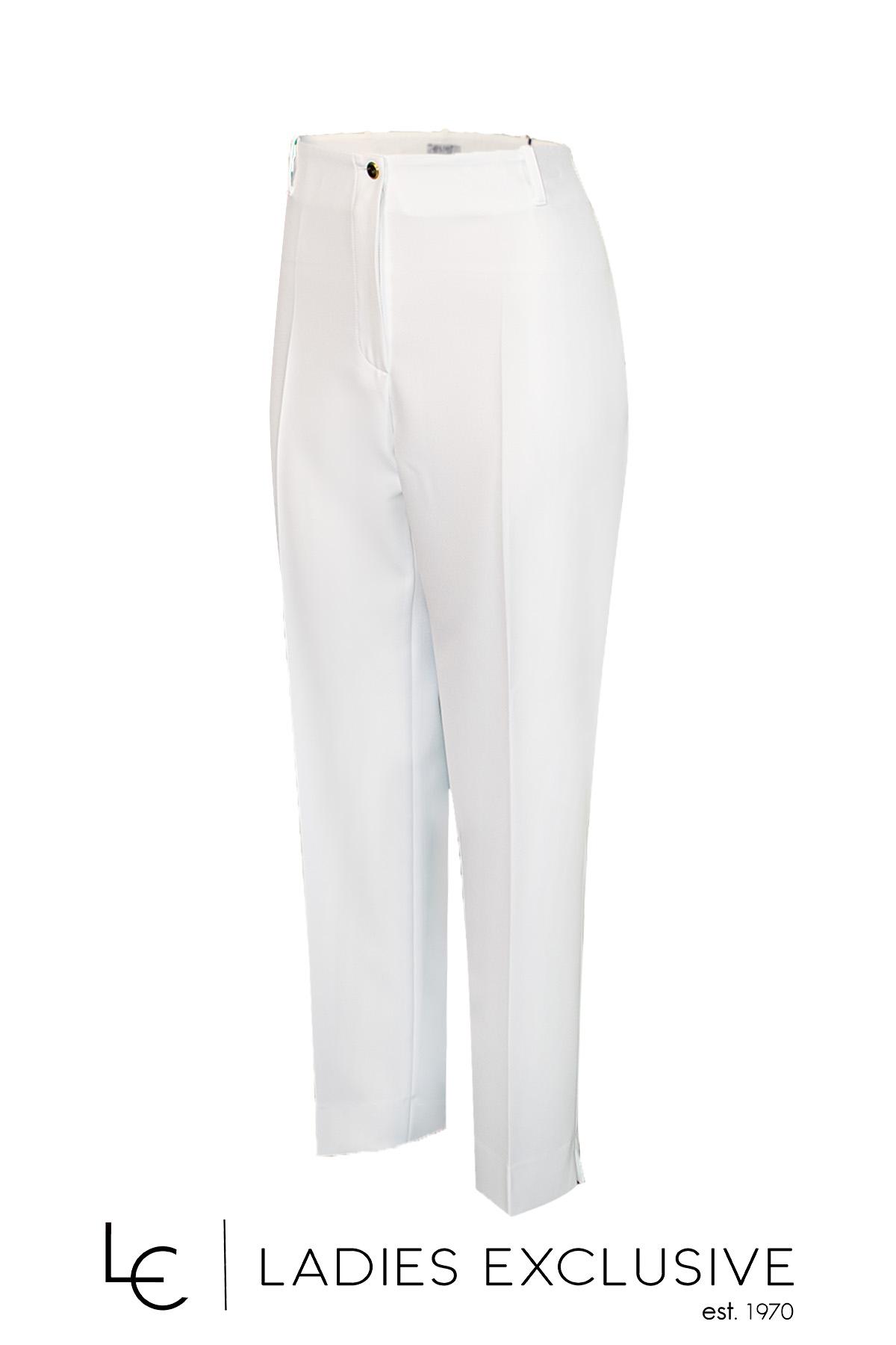 ESTEL Παντελόνι λευκό κρεπ αστραγάλου με μικρό άνοιγμα στο κάτω μέρος. Γίνεται σετ με το σακάκι με κωδικό 07401-00.06.