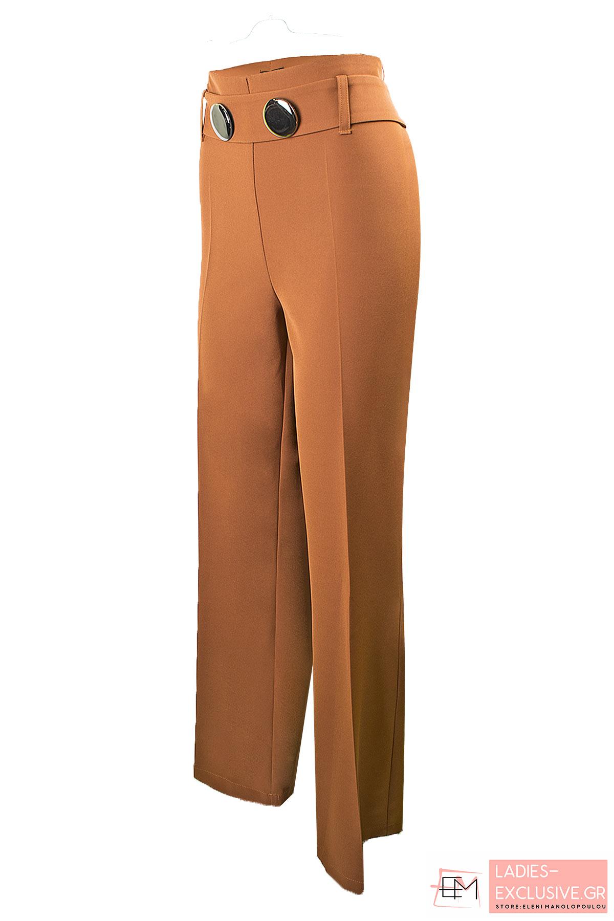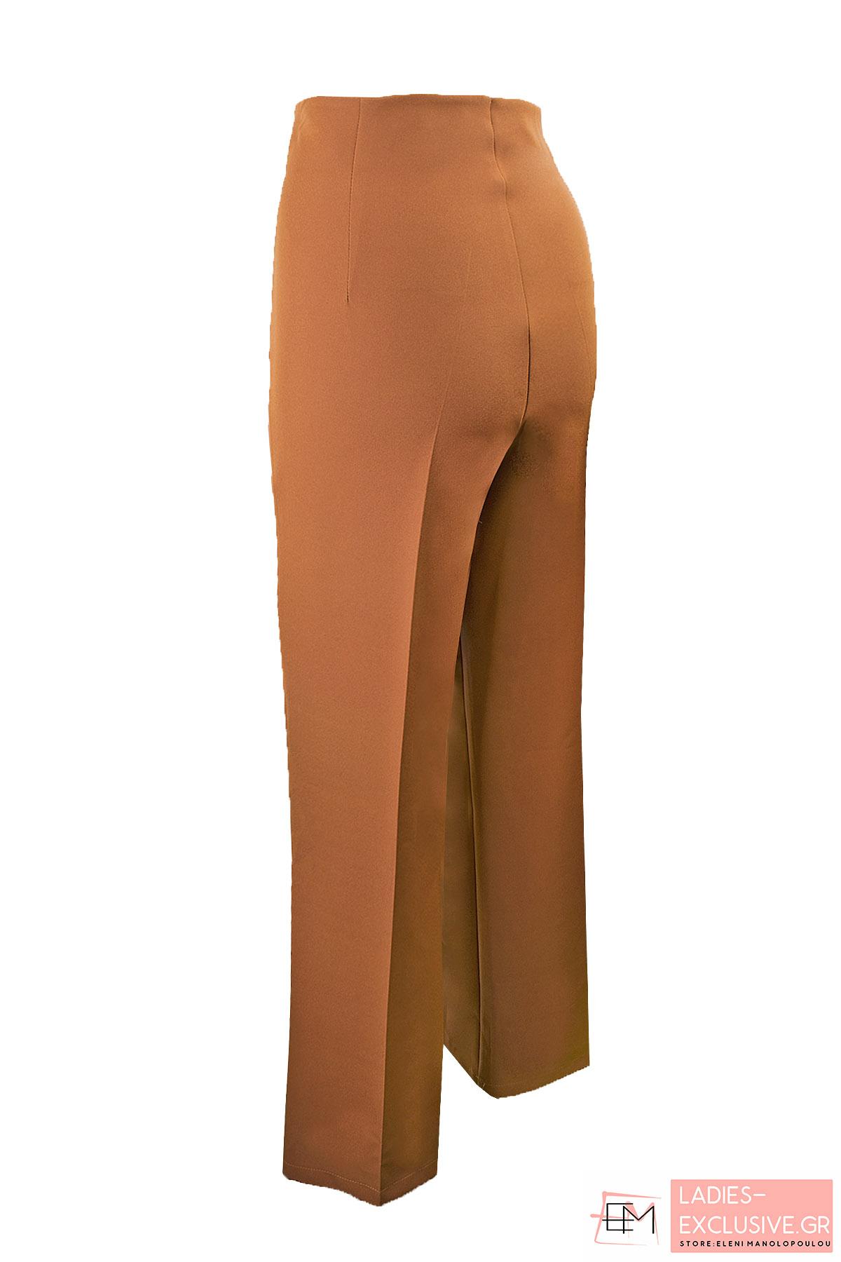 Κρεπ παντελόνι με ψηλή μέση και διακοσμητική ζώνη .Καταλήγει σε καμπάνα και κλείνει με φερμουάρ στο πλάι