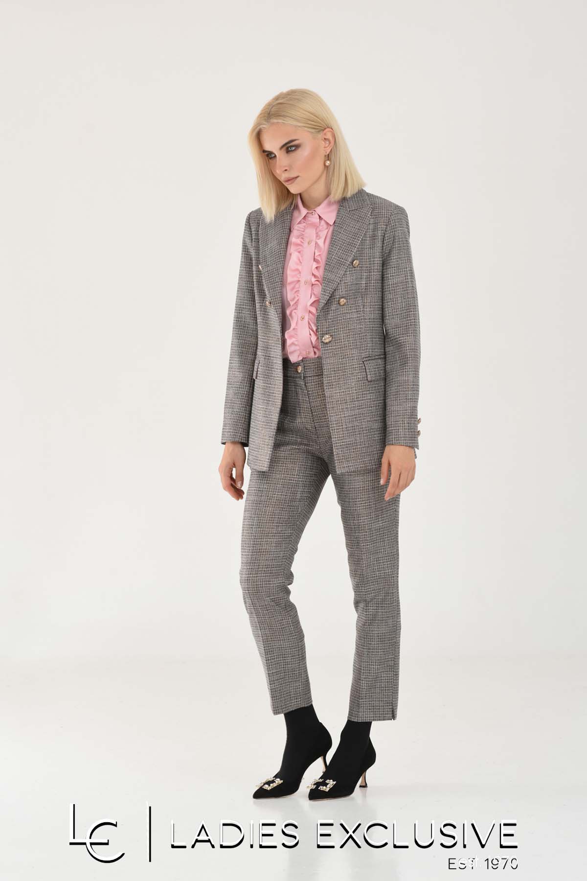 ESTEL Παντελόνι κρεπ καρό. Γίνεται σετ με το σακάκι με κωδικό 07308-00.28.