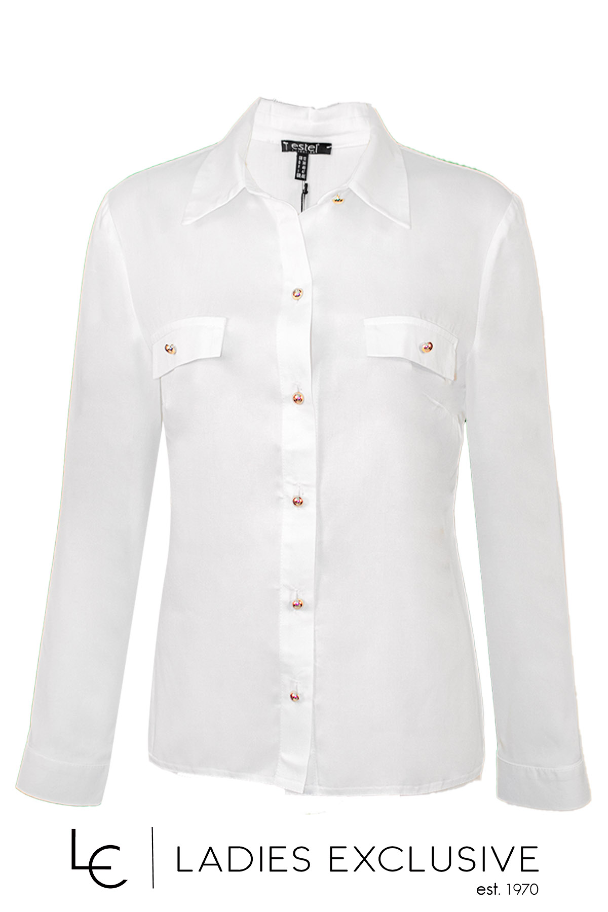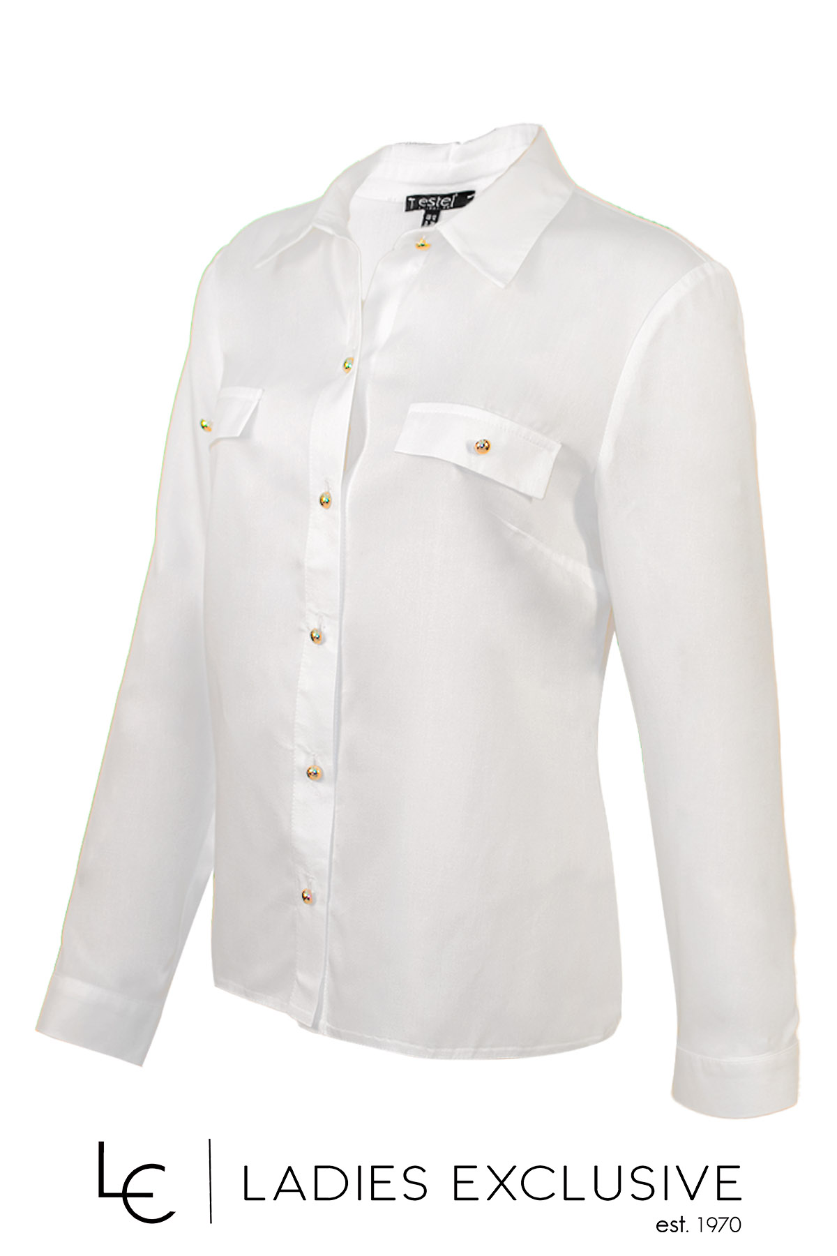 ESTEL Πουκάμισο λευκό με χρυσά στρογγυλά κουμπιά και διακοσητικά καπάκια τσέπης.