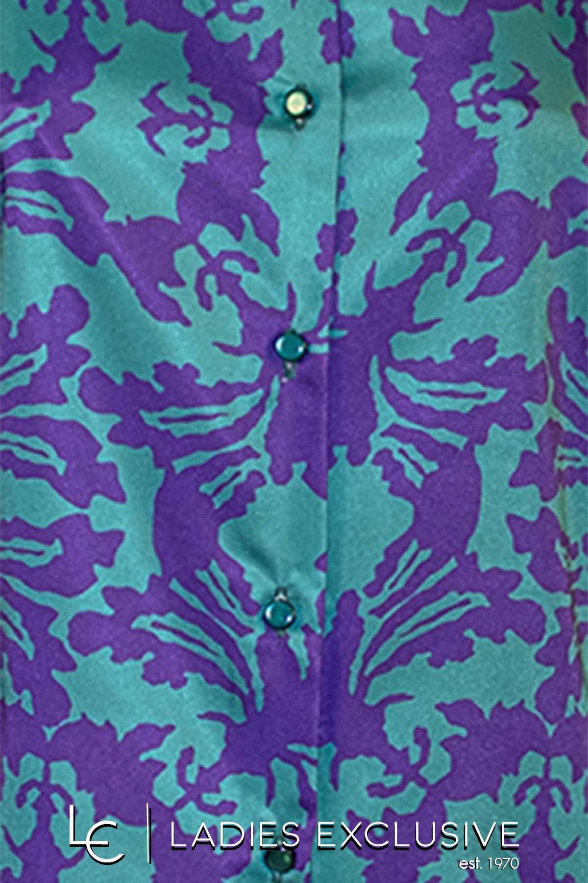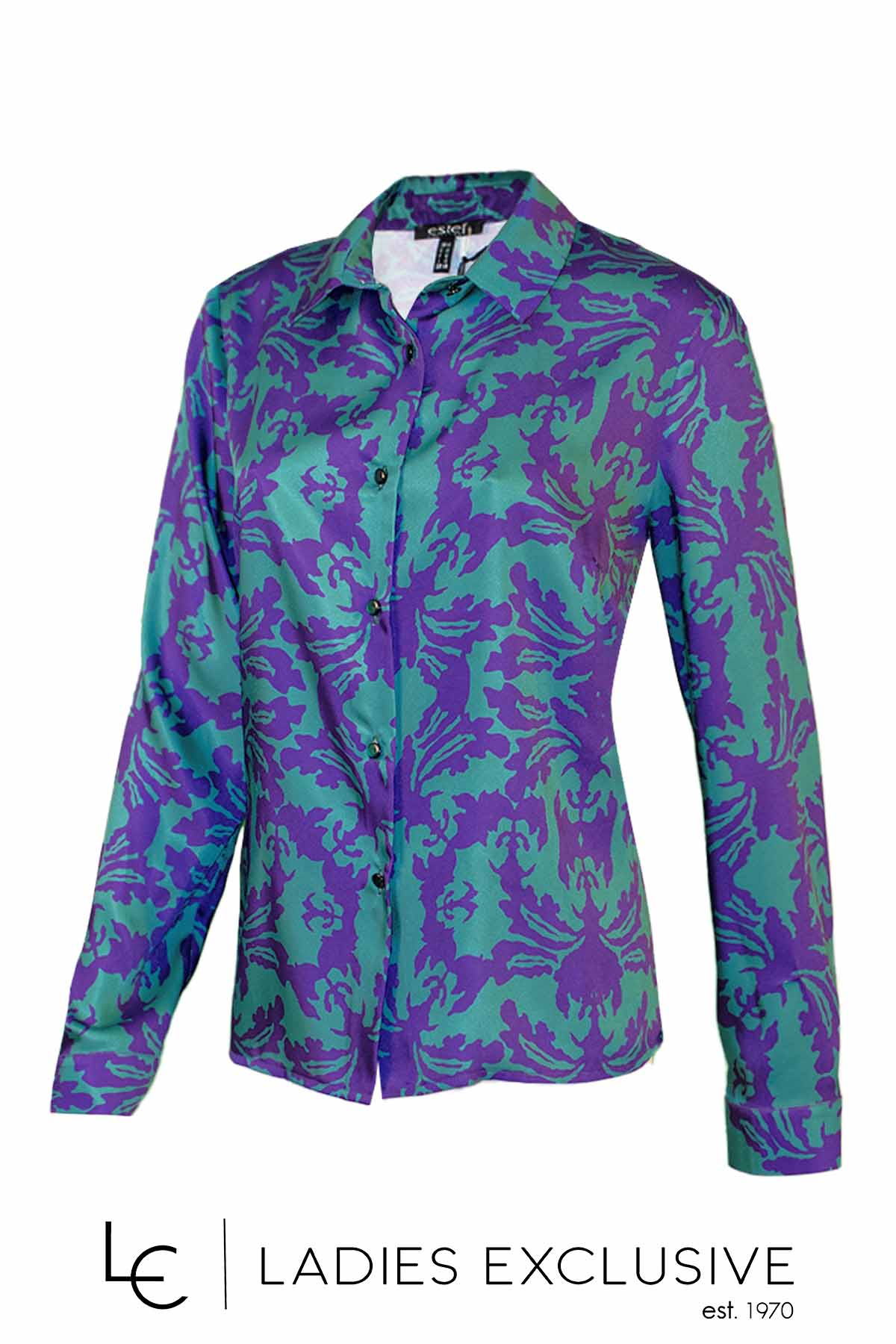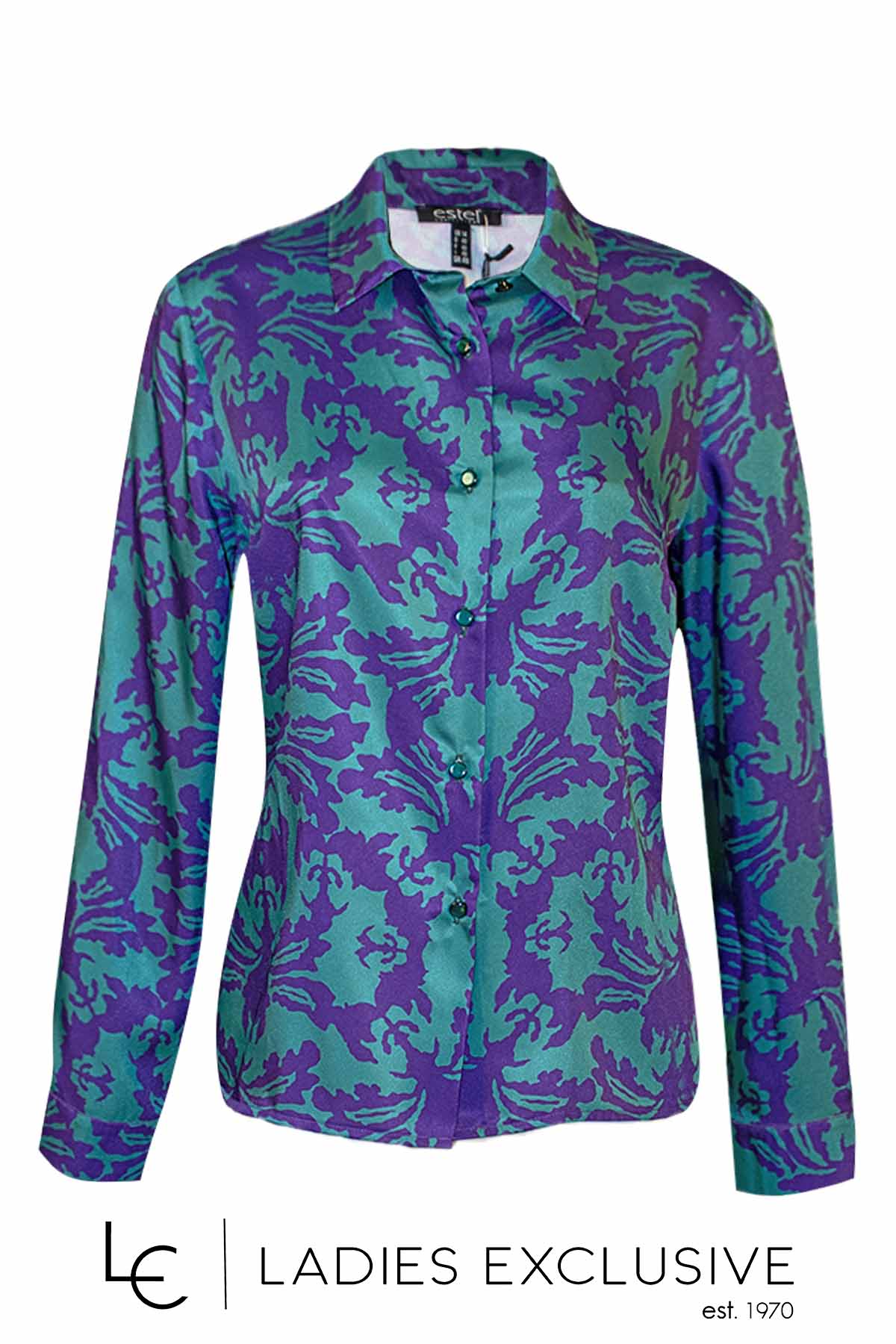 ESTEL Πουκάμισο εμπριμέ σατέν πράσινο με μωβ.