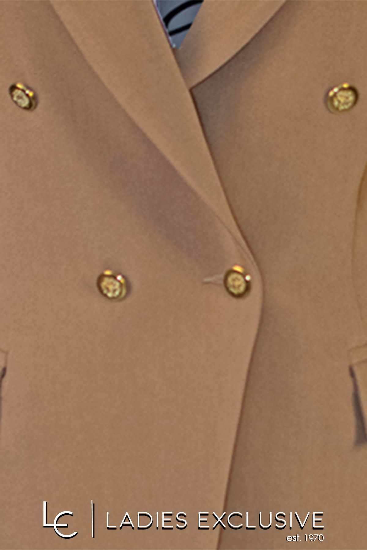ESTEL Σακάκι μπεζ blazer κρεπ με τσέπες με καπάκια και χρυσά κουμπιά. Γίνεται σετ με το παντελόνι με κωδικό 07701-00.09.