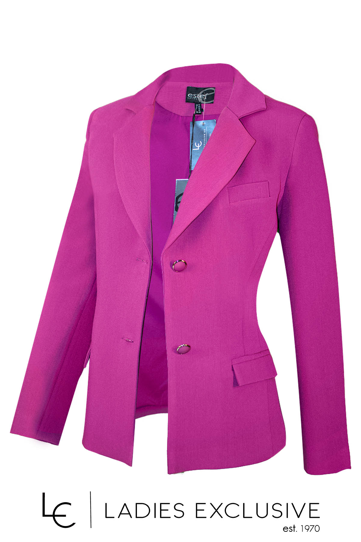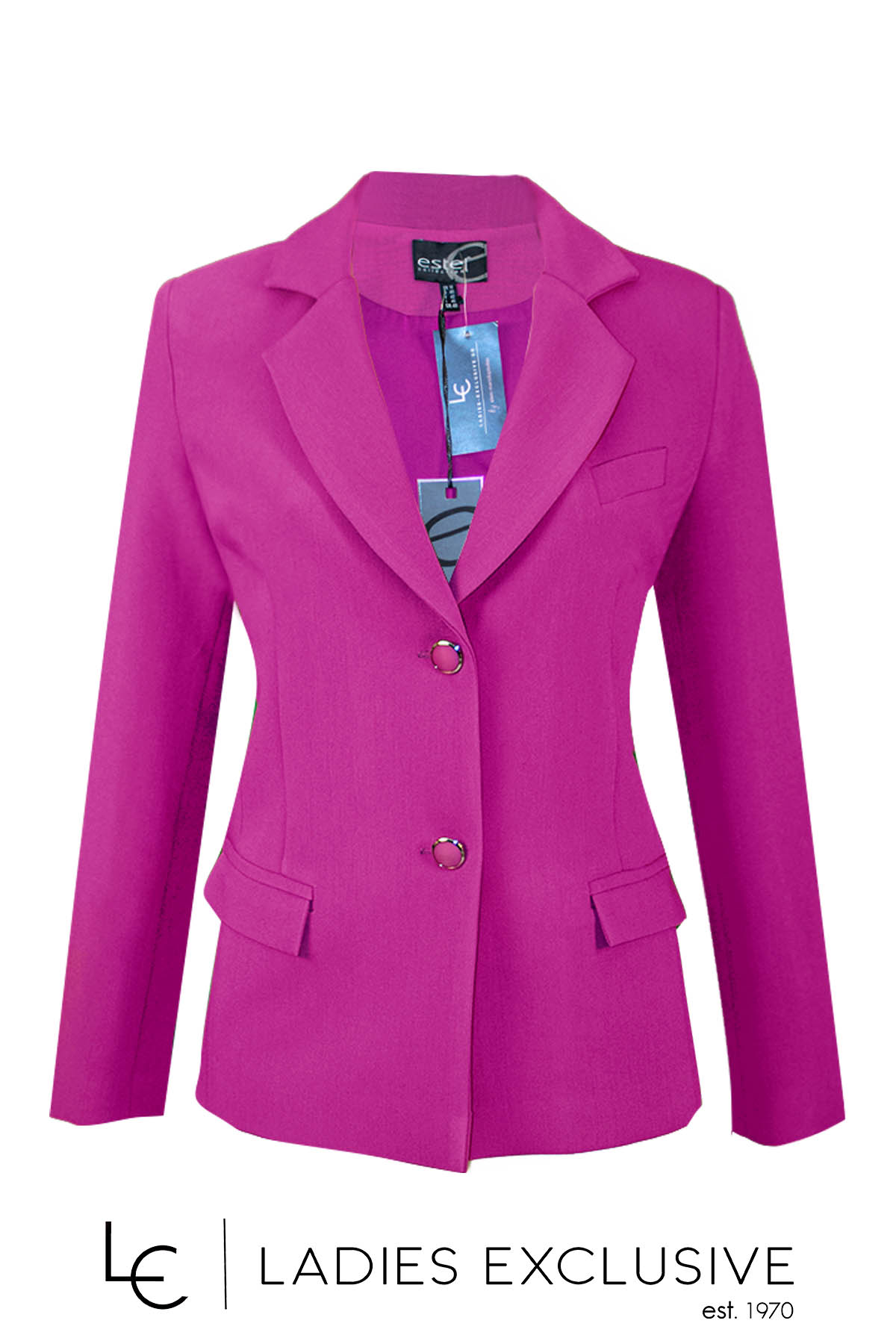 ESTEL Σακάκι φούξια με πέτο γιακά και τσέπες με καπάκια. Γίνεται σετ με το παντελόνι με κωδικό 07740-01.33.