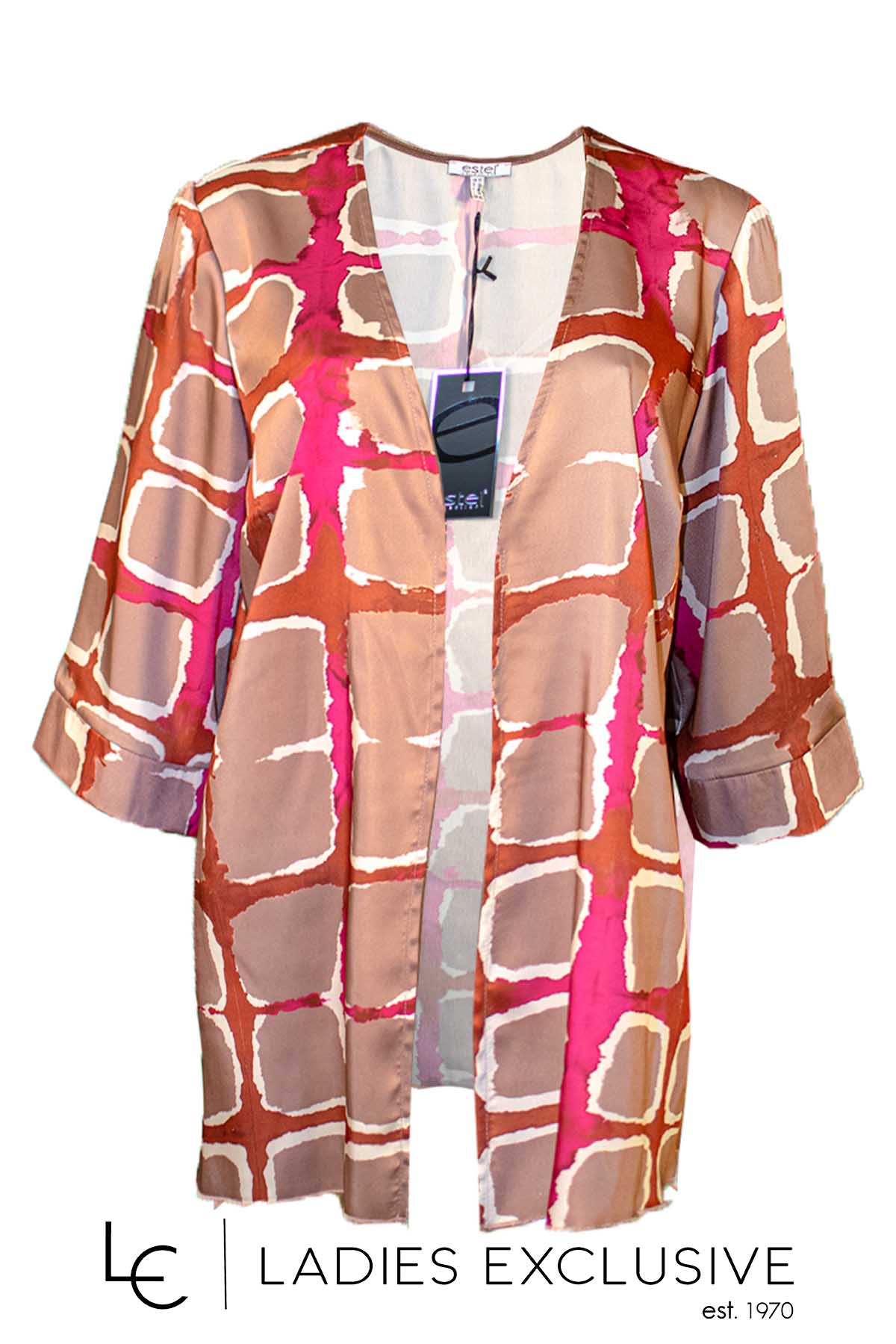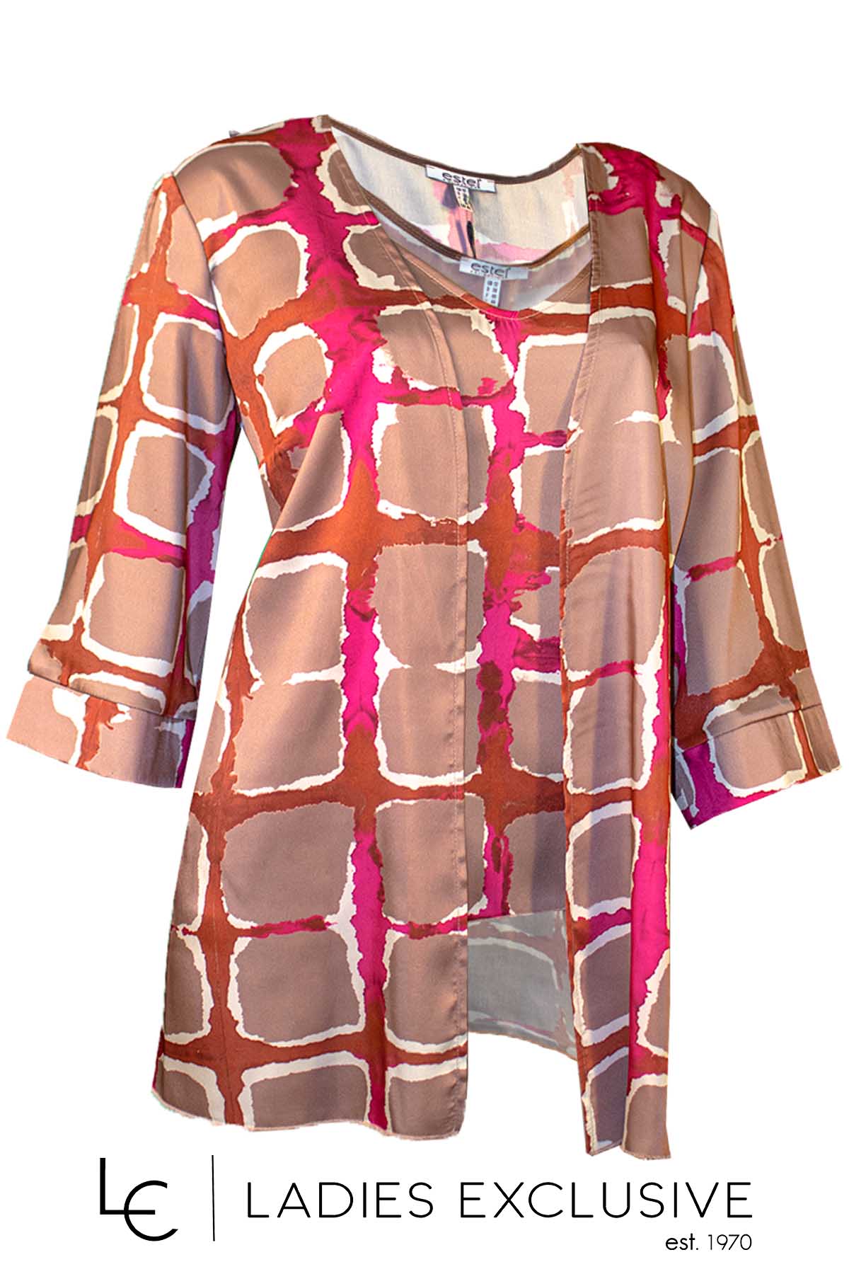 ESTEL Τουνίκ εμπριμέ σατέν με μανίκι 3/4. Γίνεται σετ με την μπλούζα με κωδικό 08019-00.28.