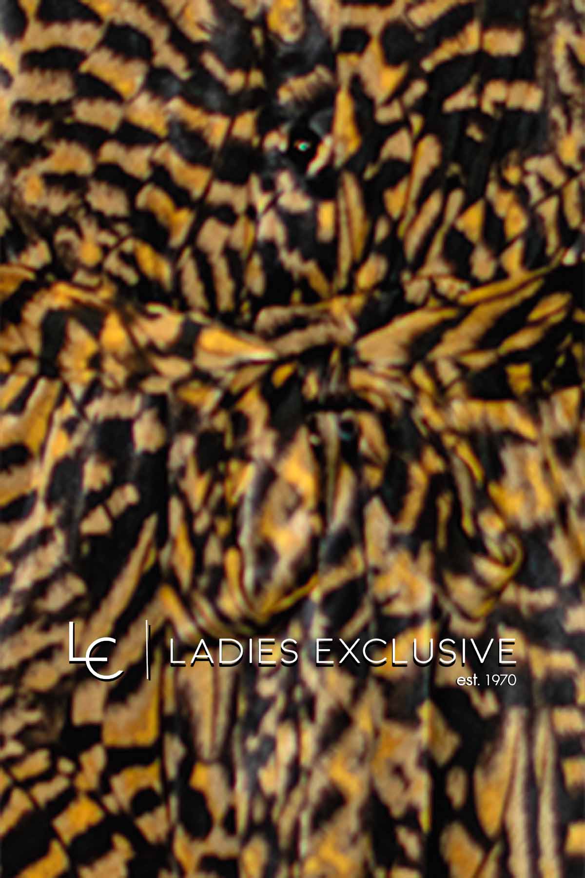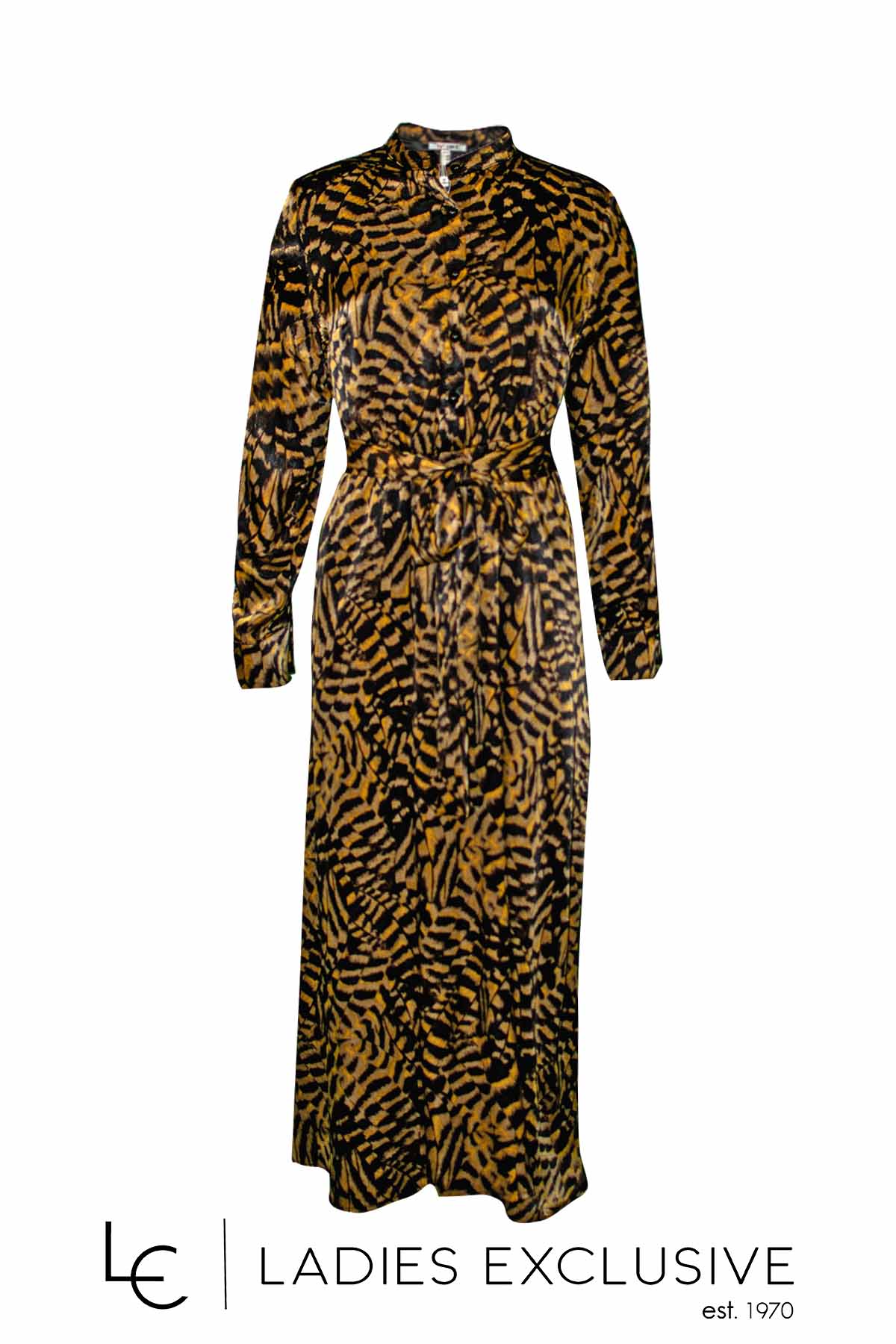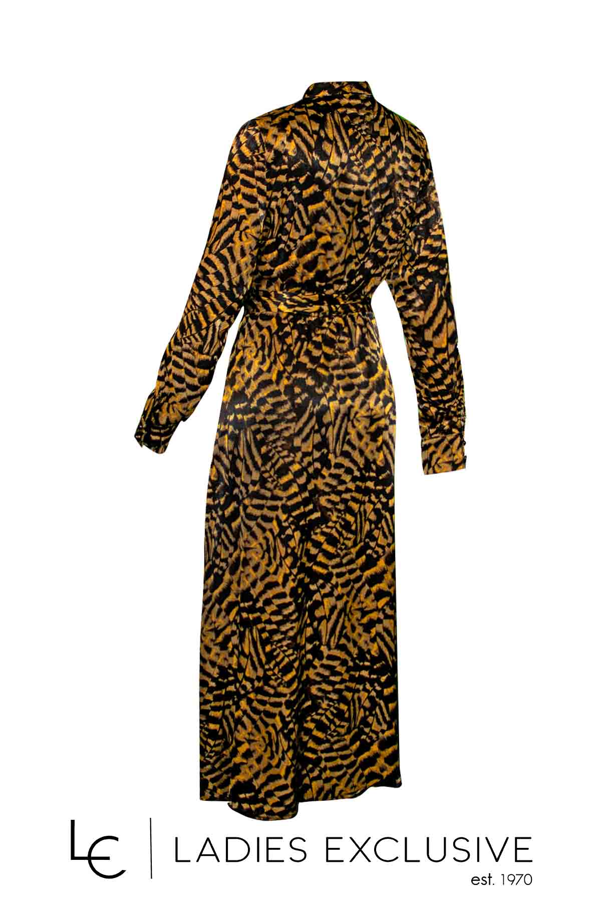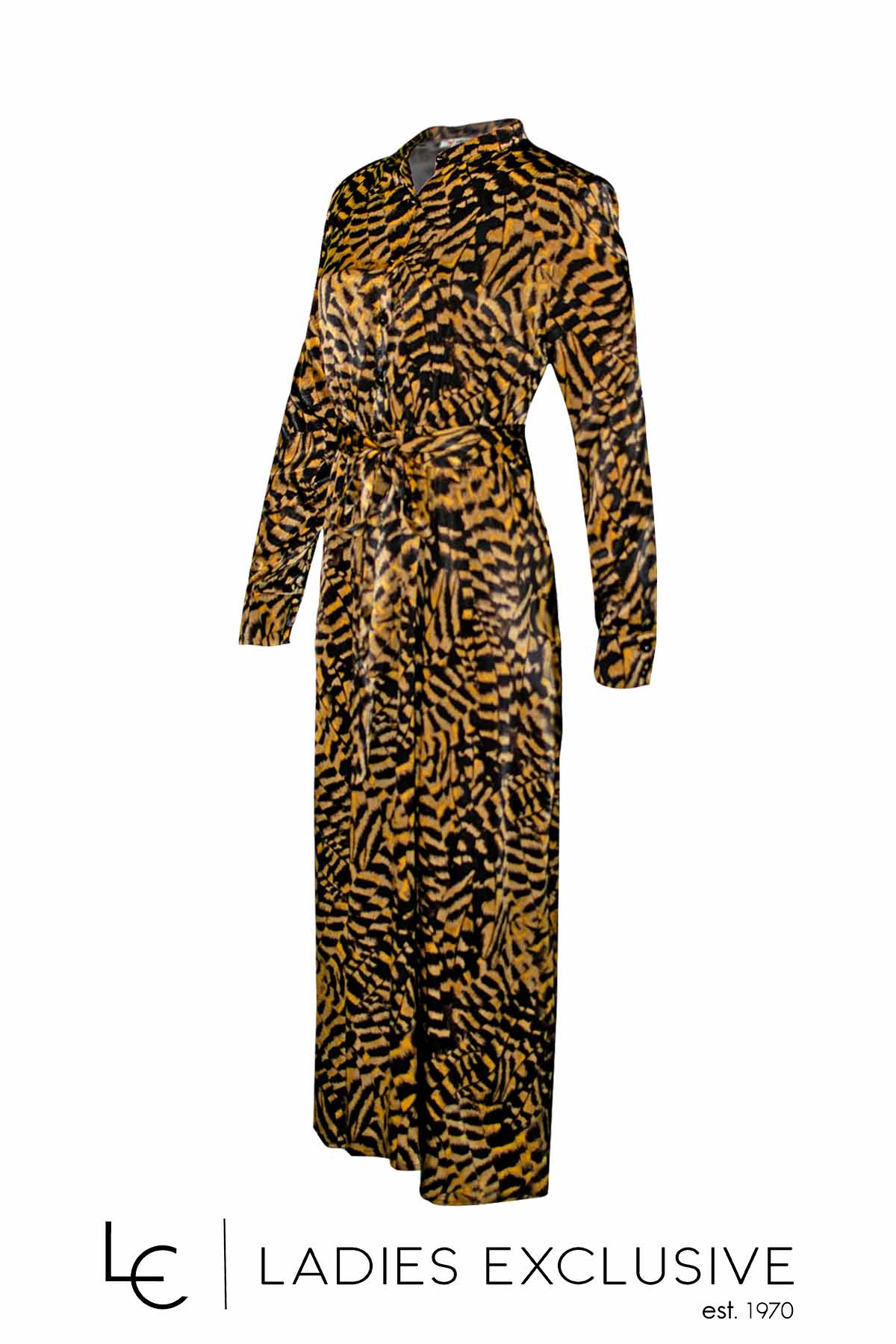 FIBES Φόρεμα καφέ με μαύρο αμπίρ μακρύ, με λάστιχο και κουμπιά στο πάνω μέρος.