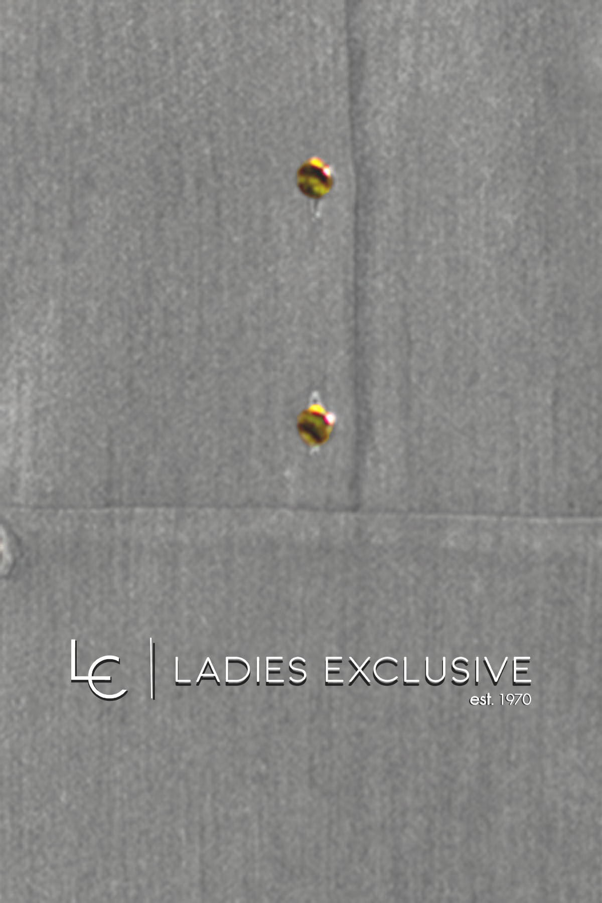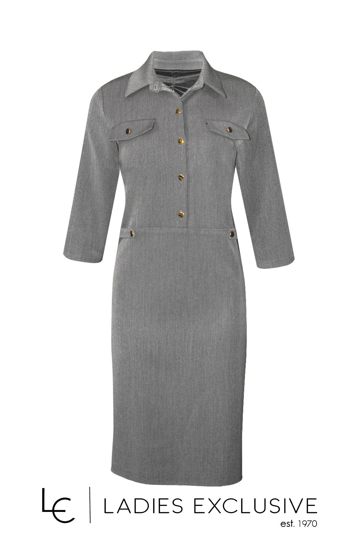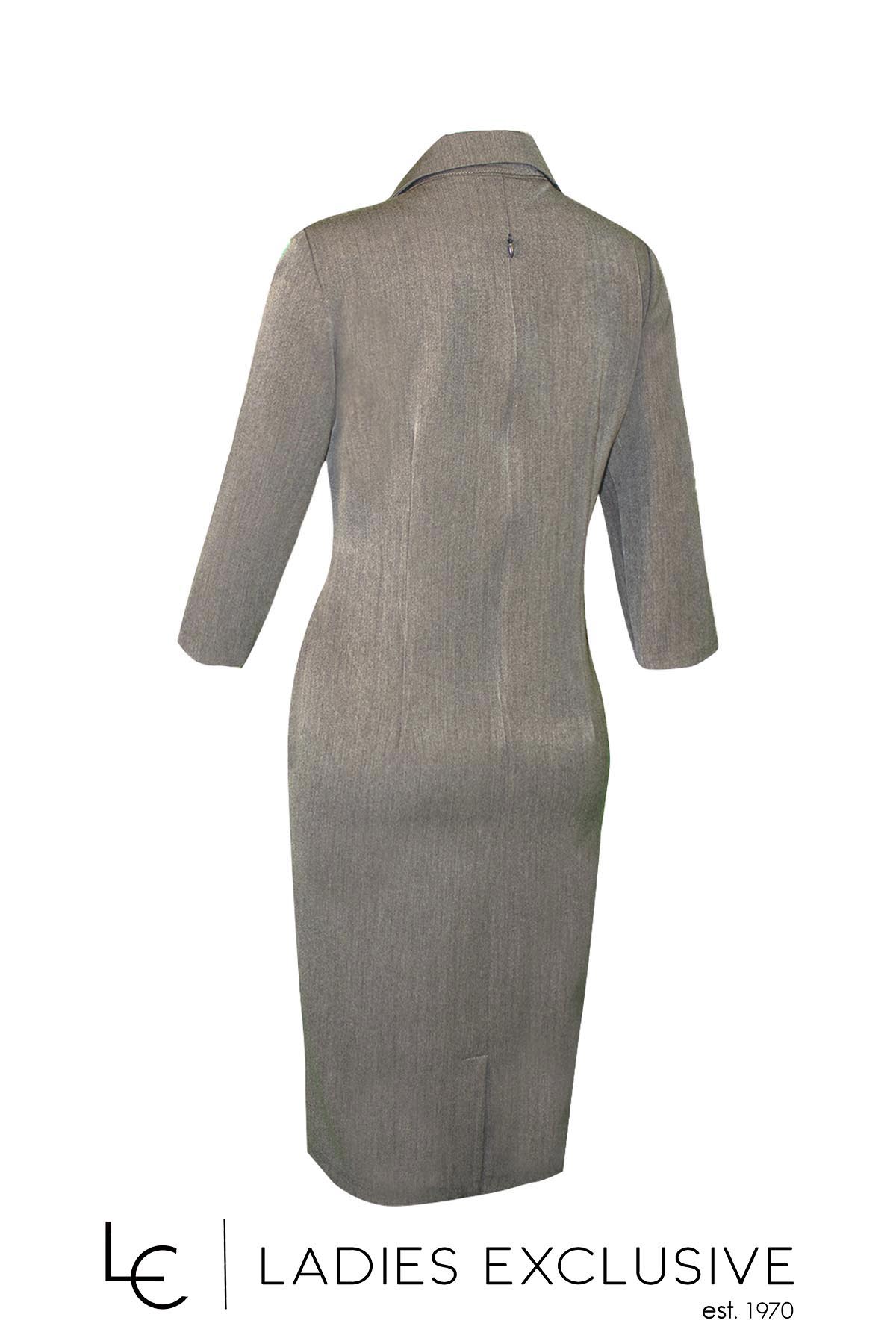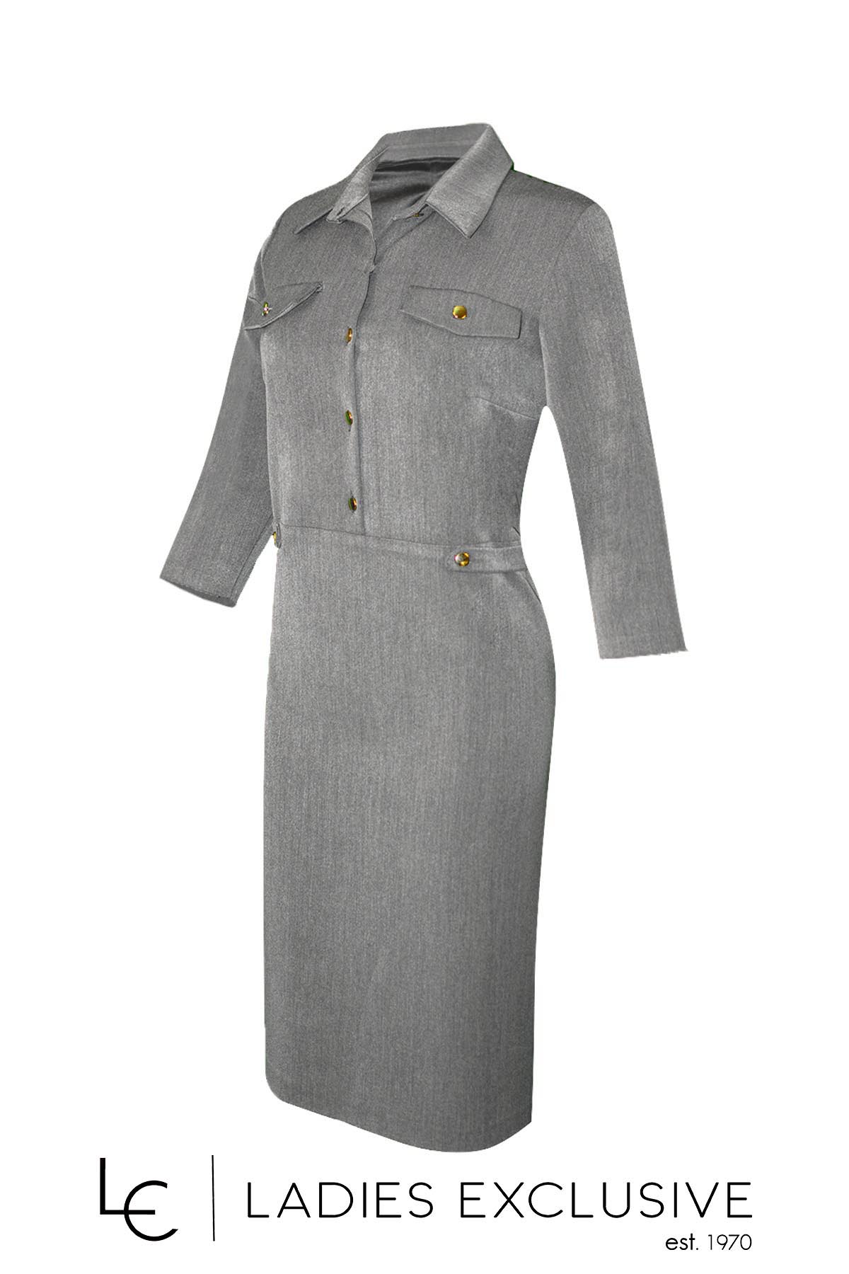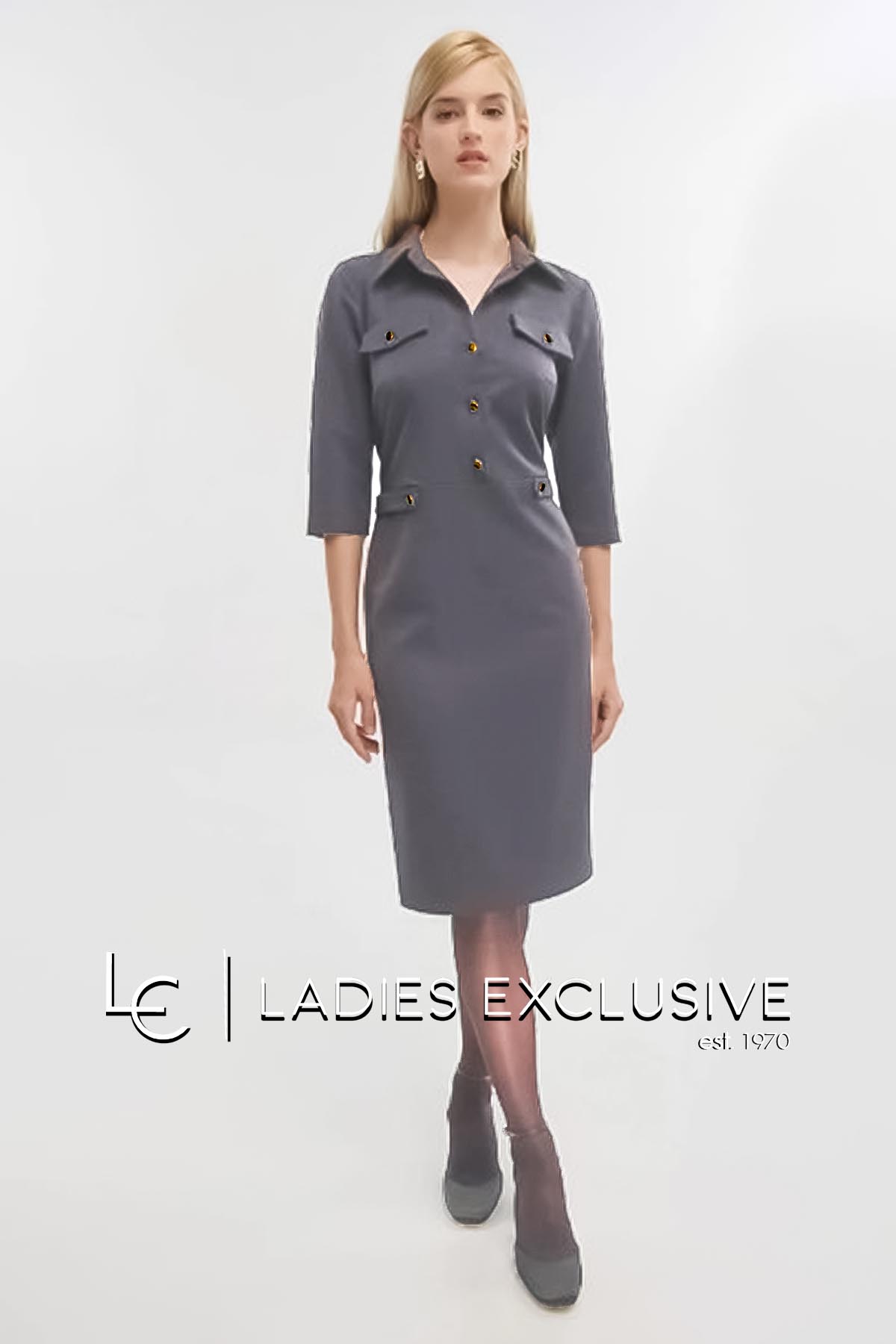 FIBES Φόρεμα γκρι με πέτο γιακά, κουμπιά και μανίκι 3/4.