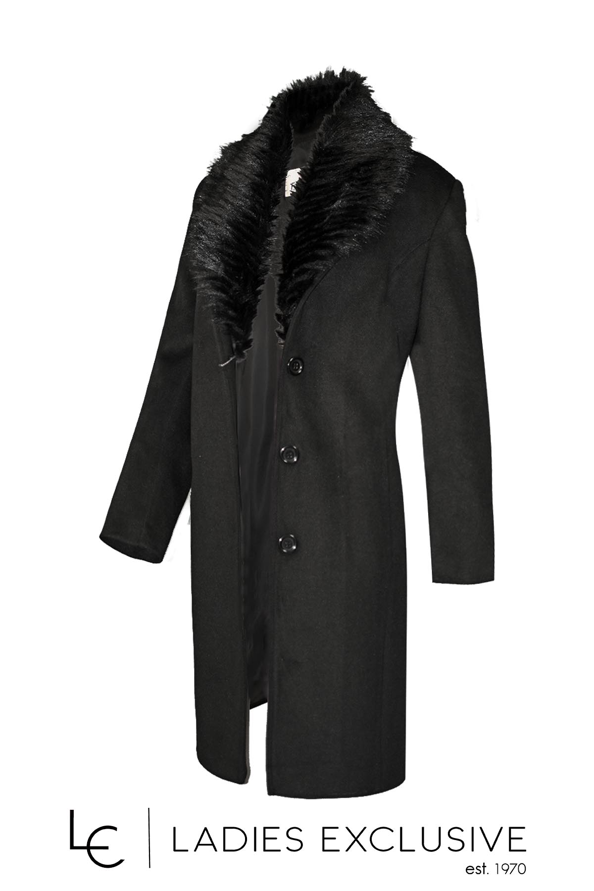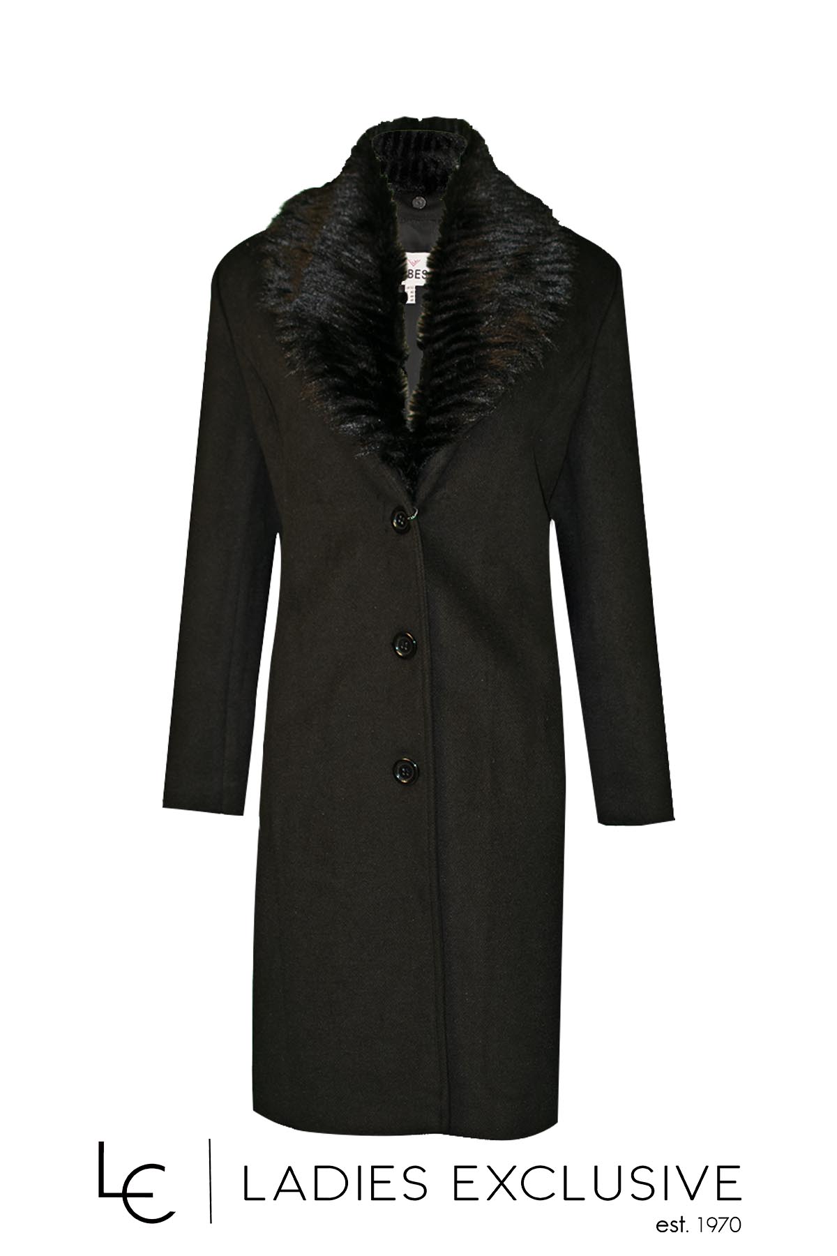 FIBES Ημίπαλτο μαύρο με αποσπώμενη γούνα.