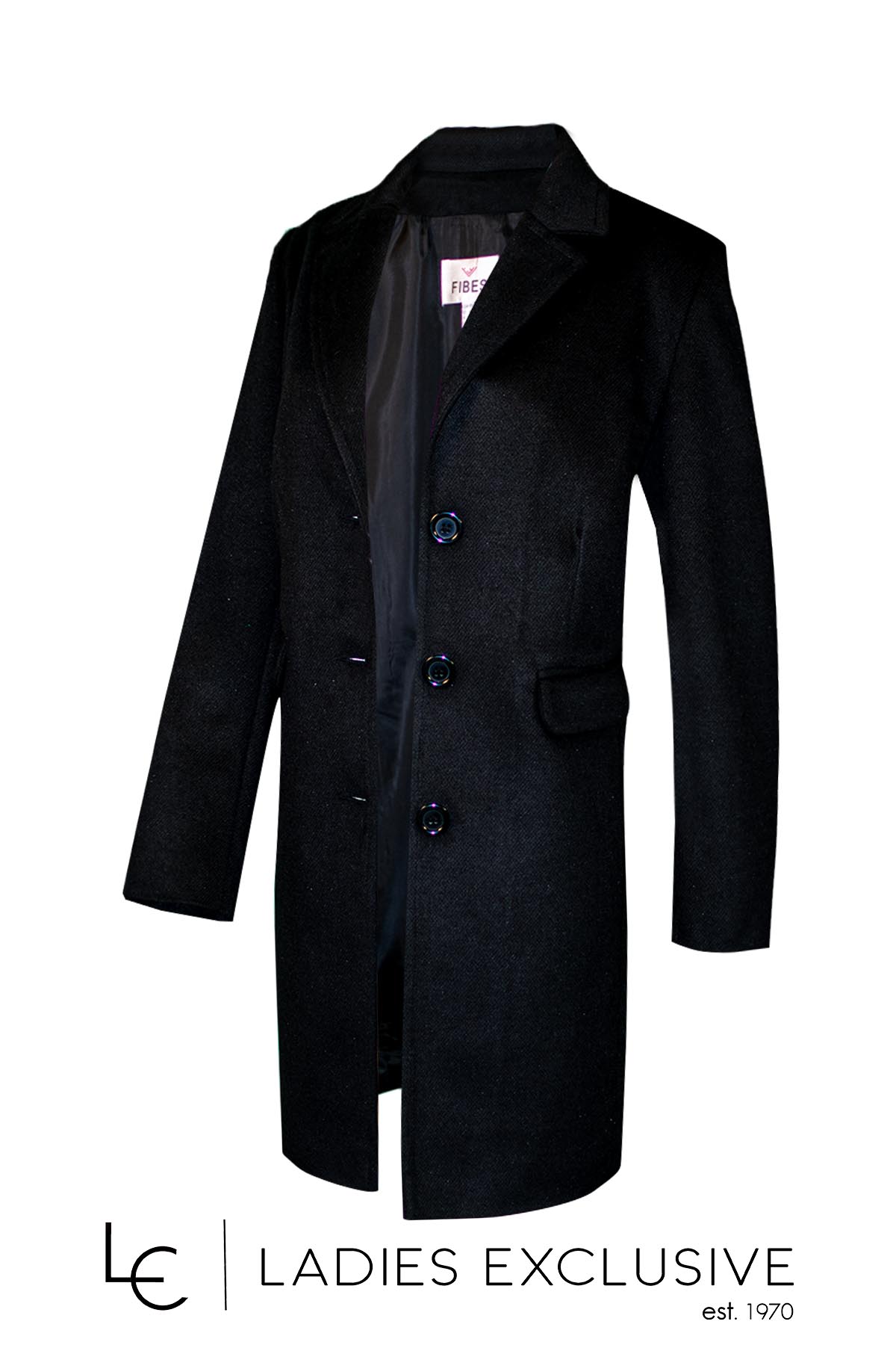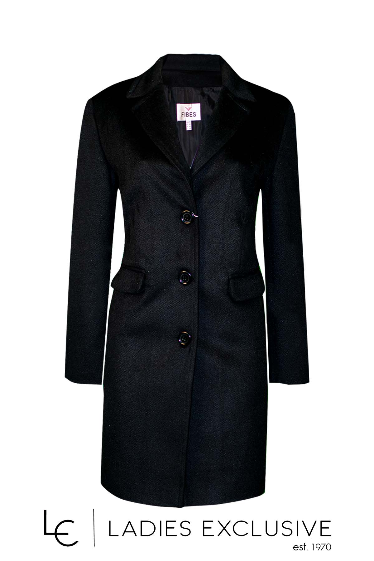 FIBES Ημίπαλτο μαύρο με τσέπες με καπάκια.