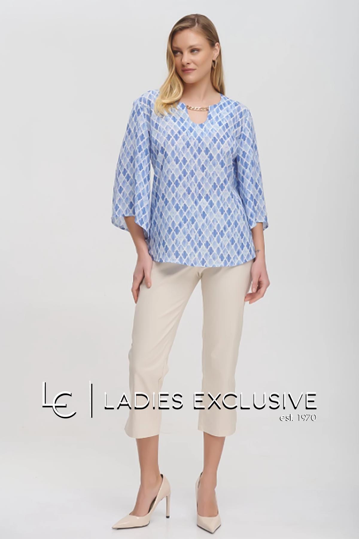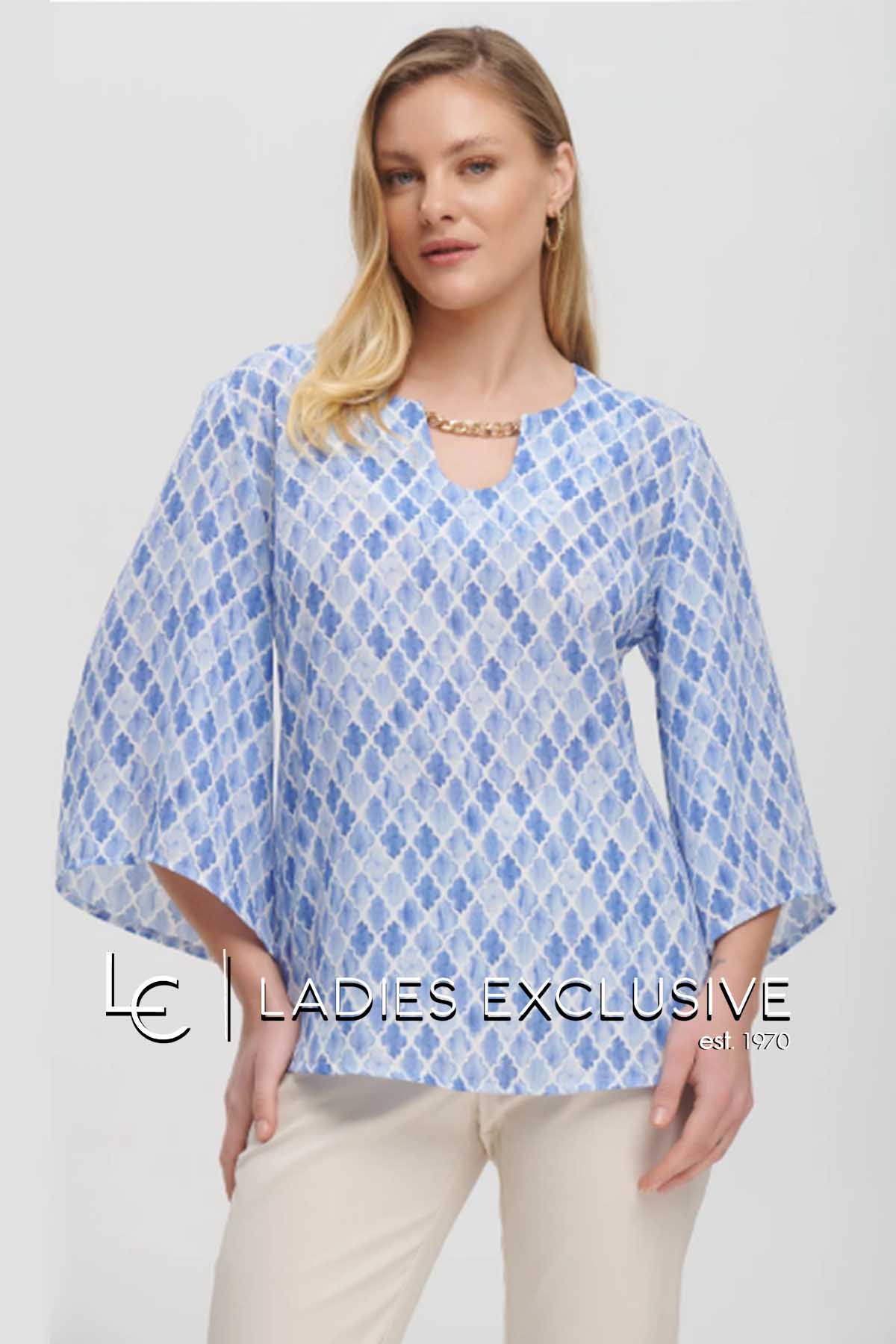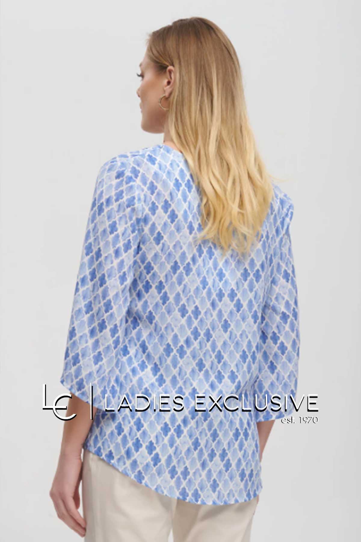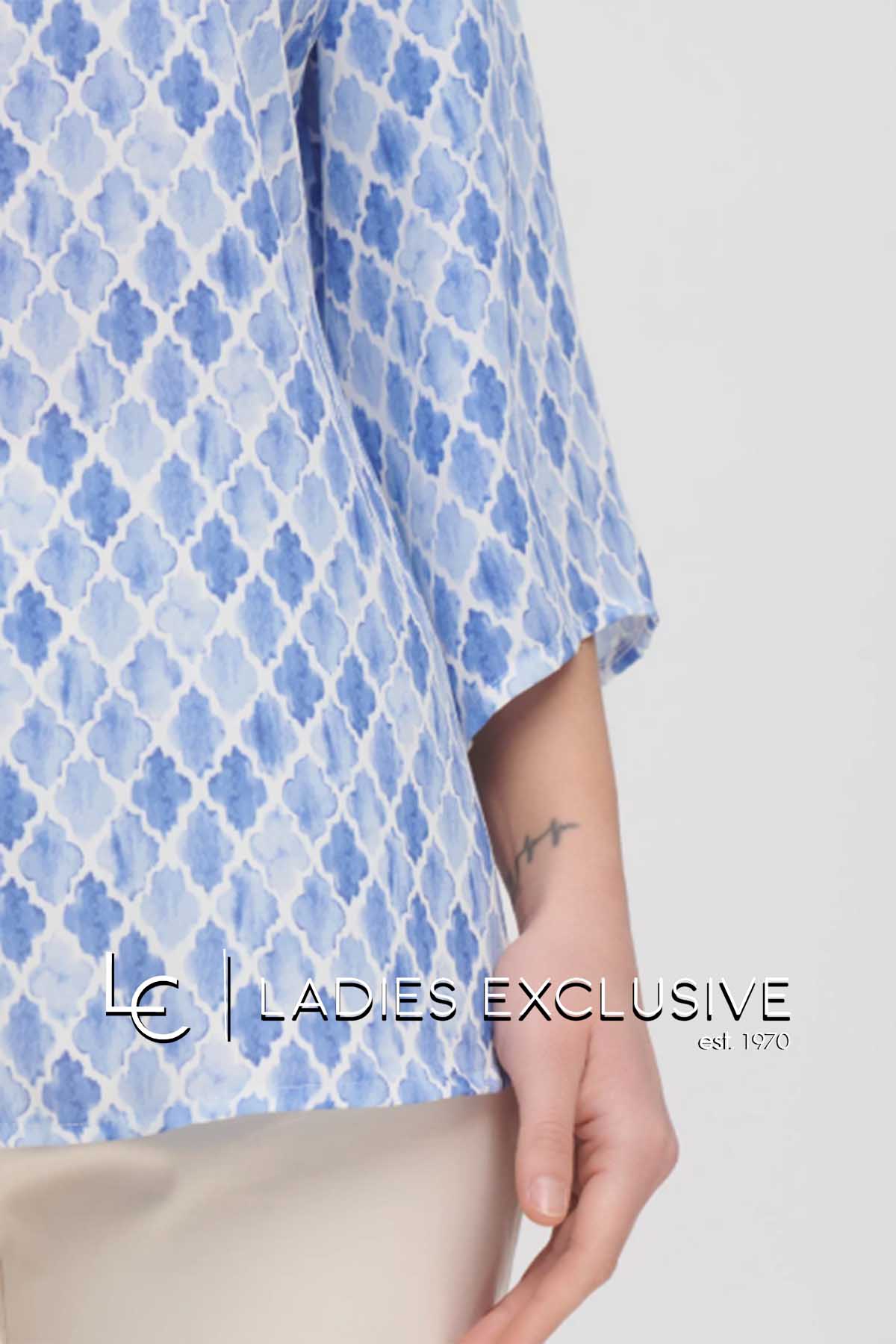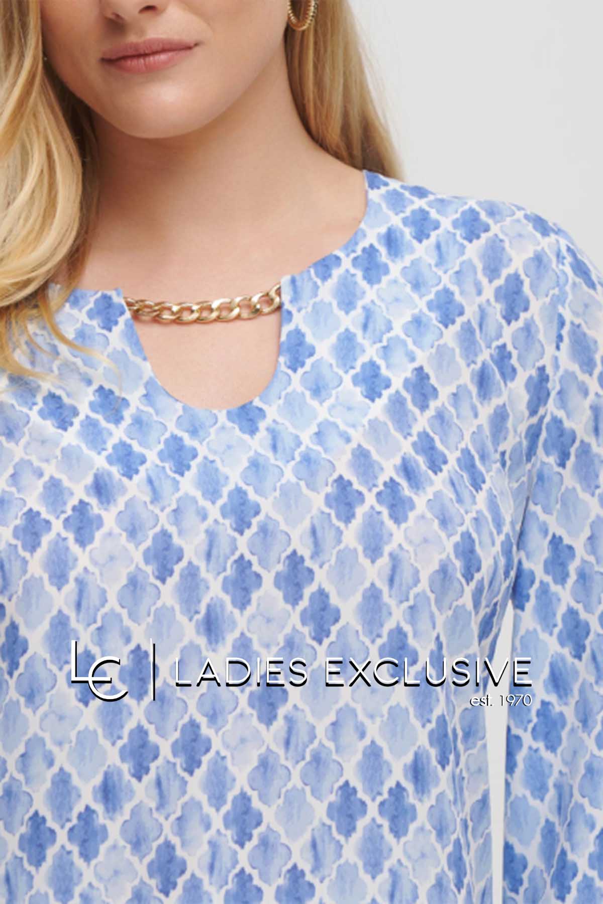 FIBES Μπλούζα μπλε σε ανετη γραμμή με μανίκι 3/4 και αλυσιδάκι στο άνοιγμα μπροστά.