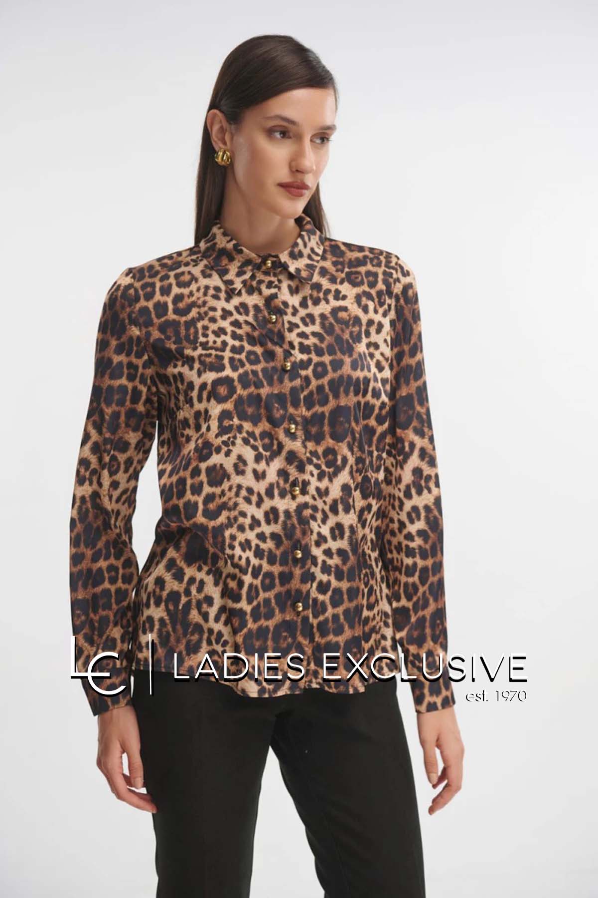 FIBES Πουκάμισο σατέν animal print, σε άνετη γραμμή, με κρυφή πατιλέτα στα κουμπιά.