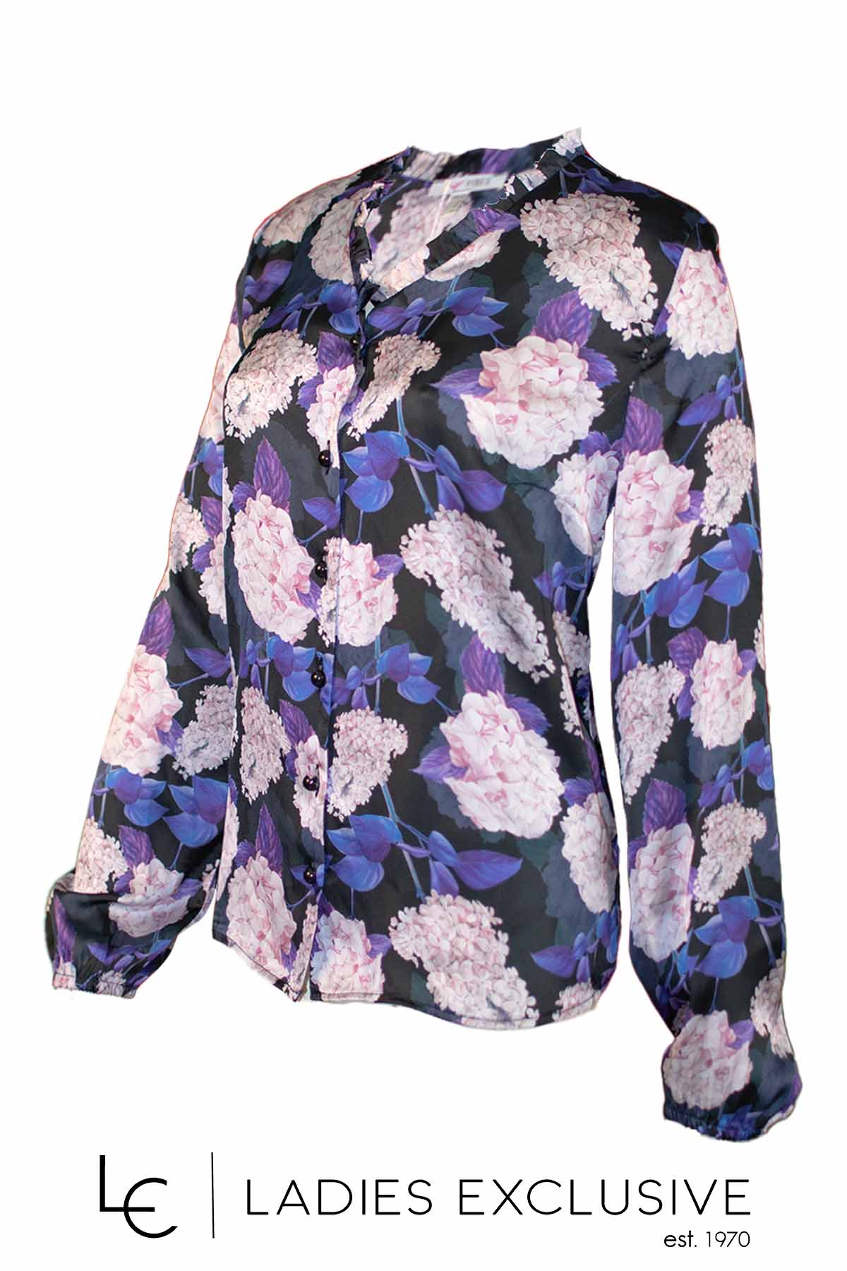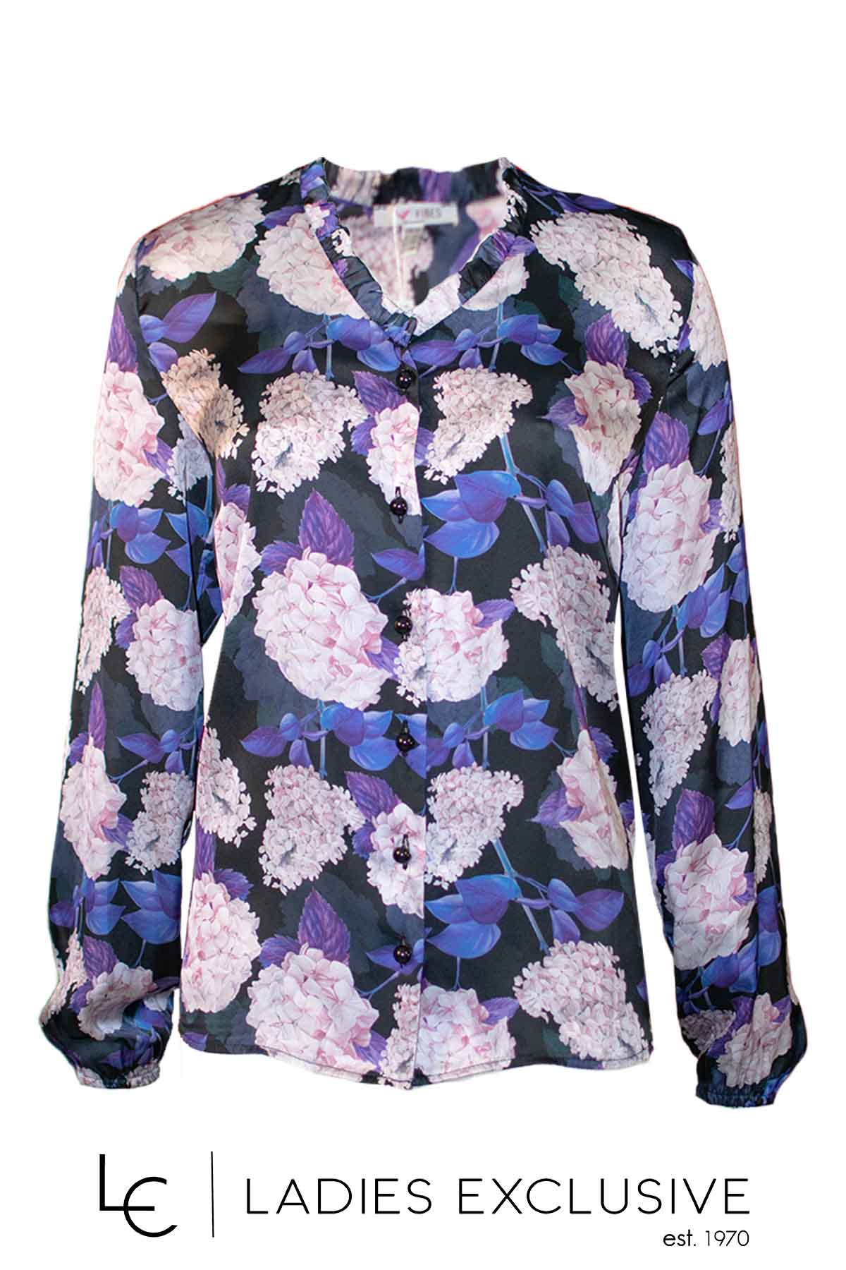 FIBES Πουκάμισο φλοράλ με μικρό βολάν στο v και λάστιχο στο μανίκι.