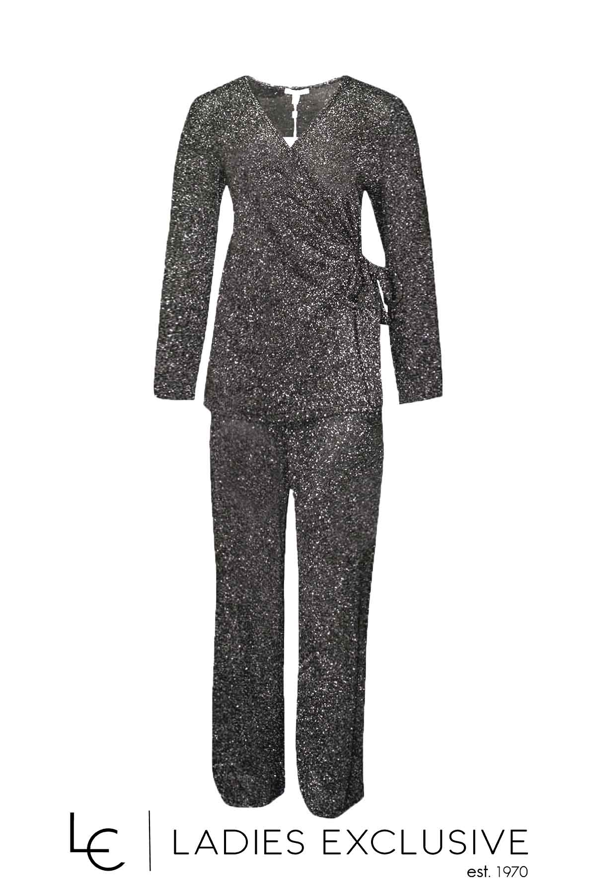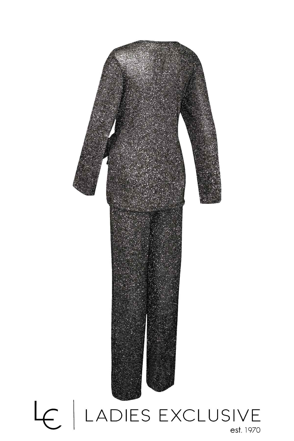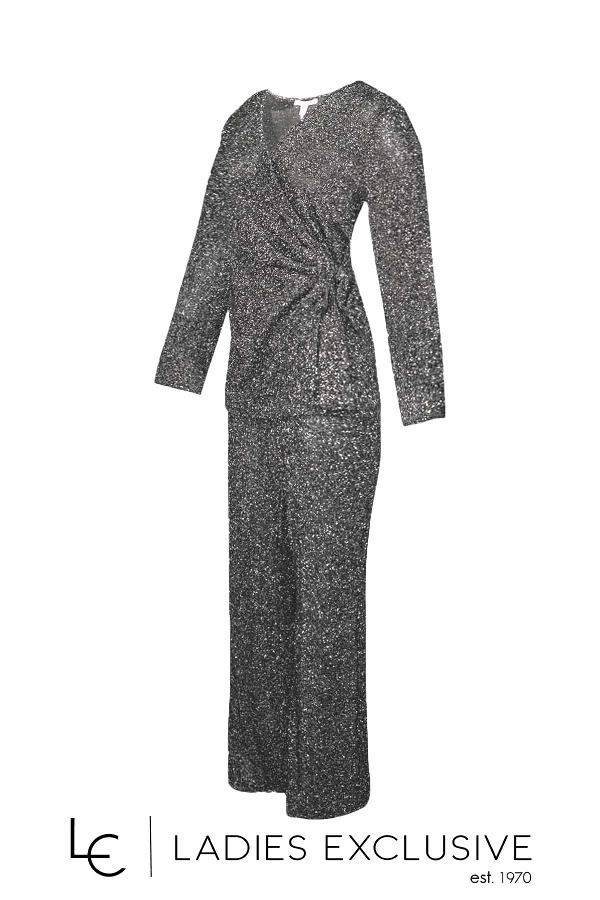 FIBES Σετ 2 τεμαχίων, που αποτελείται από μπλούζα κρουαζέ με δέσιμο σε μεταλλικό λαμπερό ύφασμα και ίδια παντελόνα με λάστιχο στη μέση.
