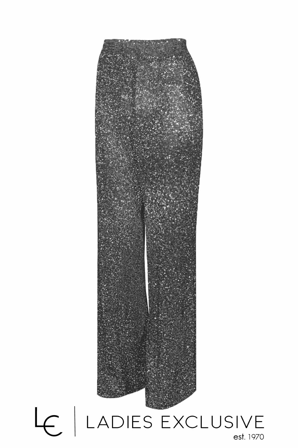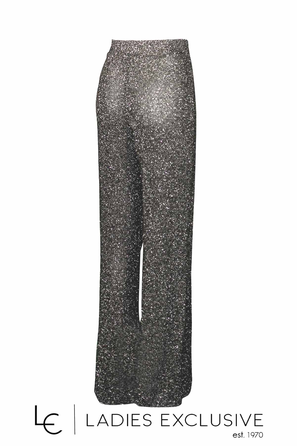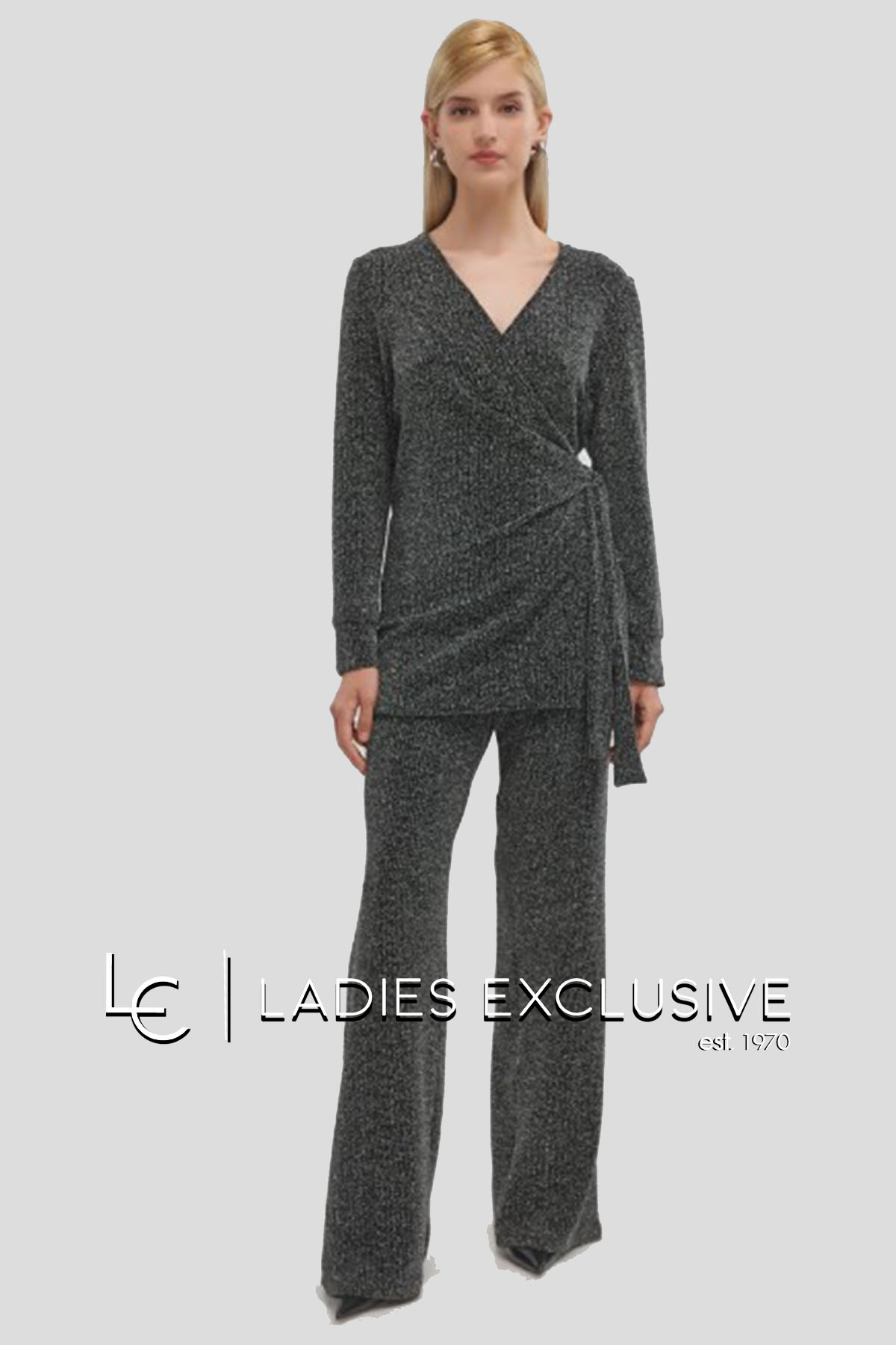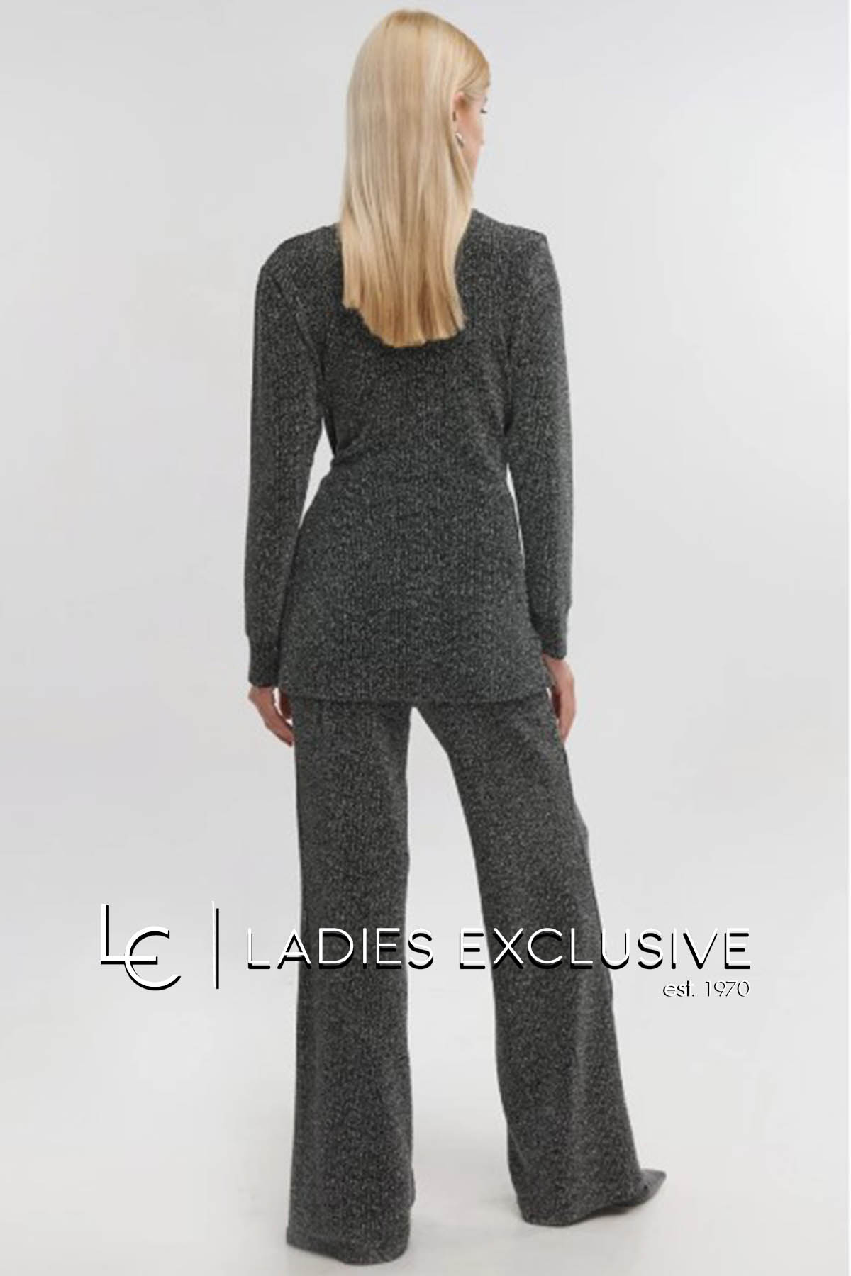 FIBES Σετ 2 τεμαχίων, που αποτελείται από μπλούζα κρουαζέ με δέσιμο σε μεταλλικό λαμπερό ύφασμα και ίδια παντελόνα με λάστιχο στη μέση.