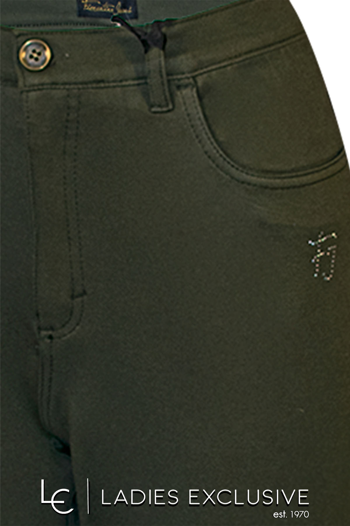 FIORENTINA JEANS Παντελόνι λαδί από διαγωνάλ ελαστικό ύφασμα με μικρές τσέπες στο πίσω μέρος.