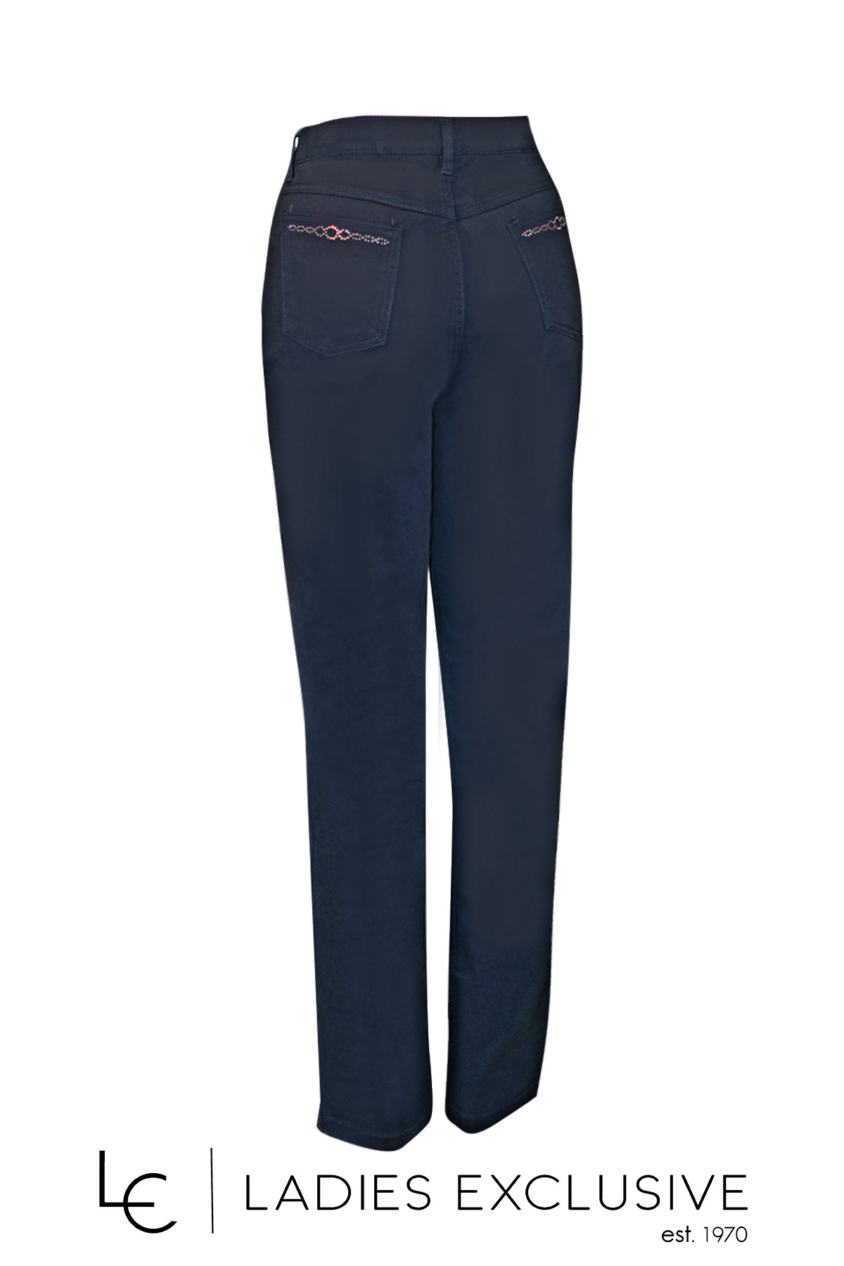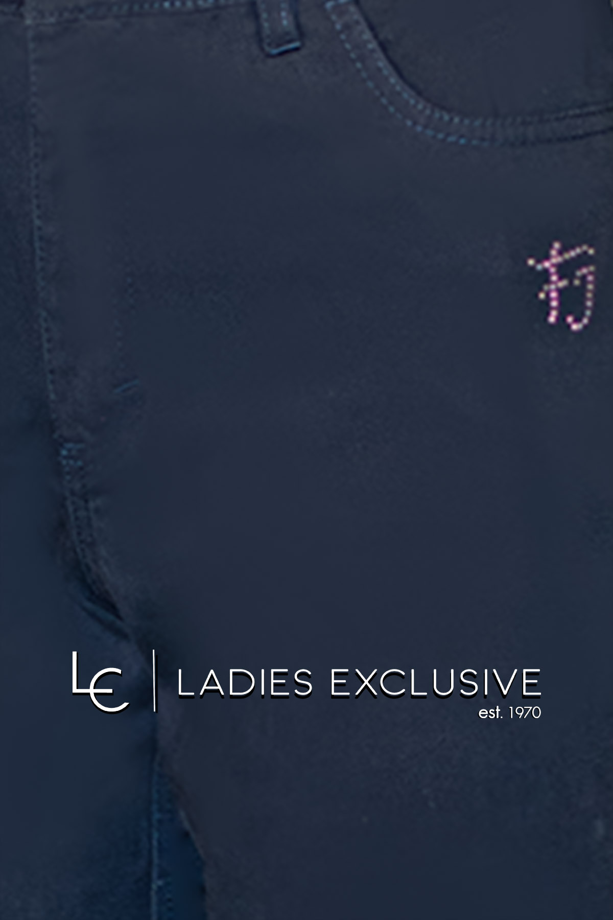 FIORENTINA JEANS Παντελόνι μπλε πεντάτσεπο καμπαρντίνα, με μικρά στρας στις πίσω τσέπες.