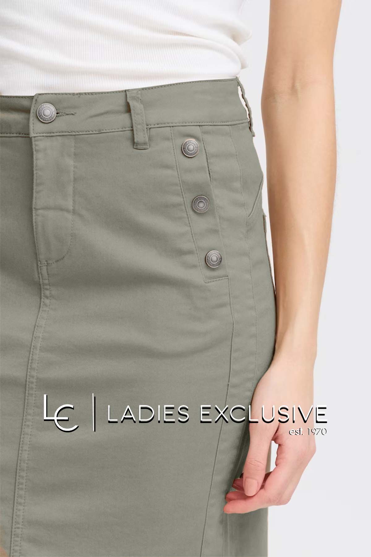 FRANSA Φούστα τζην πράσινη σε ίσια γραμμή με κουμπιά τρουκς στις πλαϊνες τσέπες.