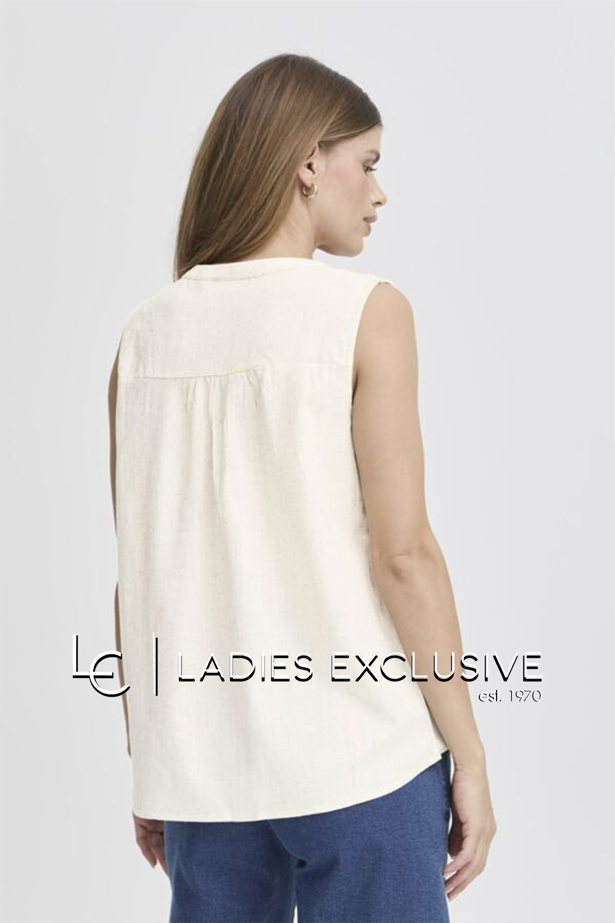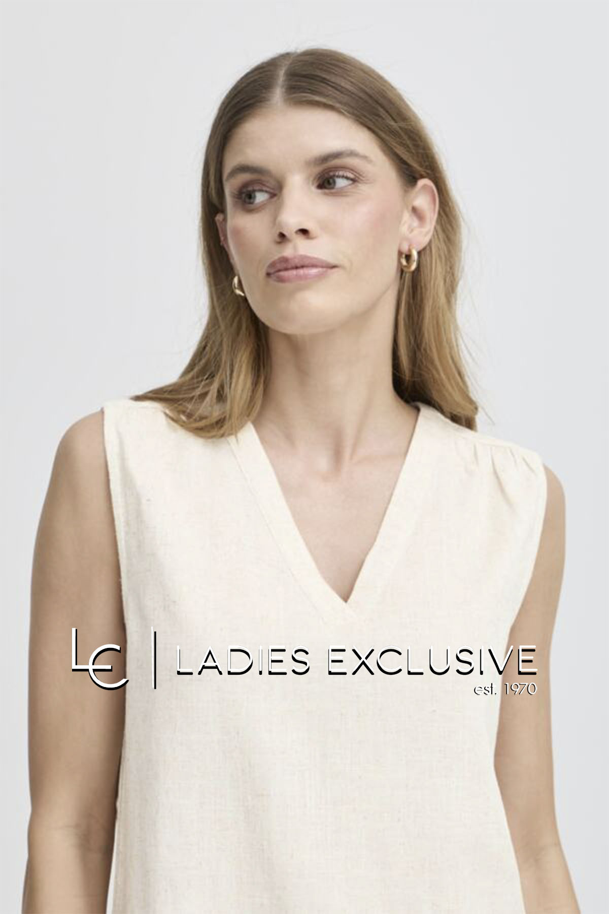 FRANSA Μπλούζα μπεζ αμάνικη λινή με άνοιγμα v. Γίνεται σετ με την παντελόνα με κωδικό 20614104.09.