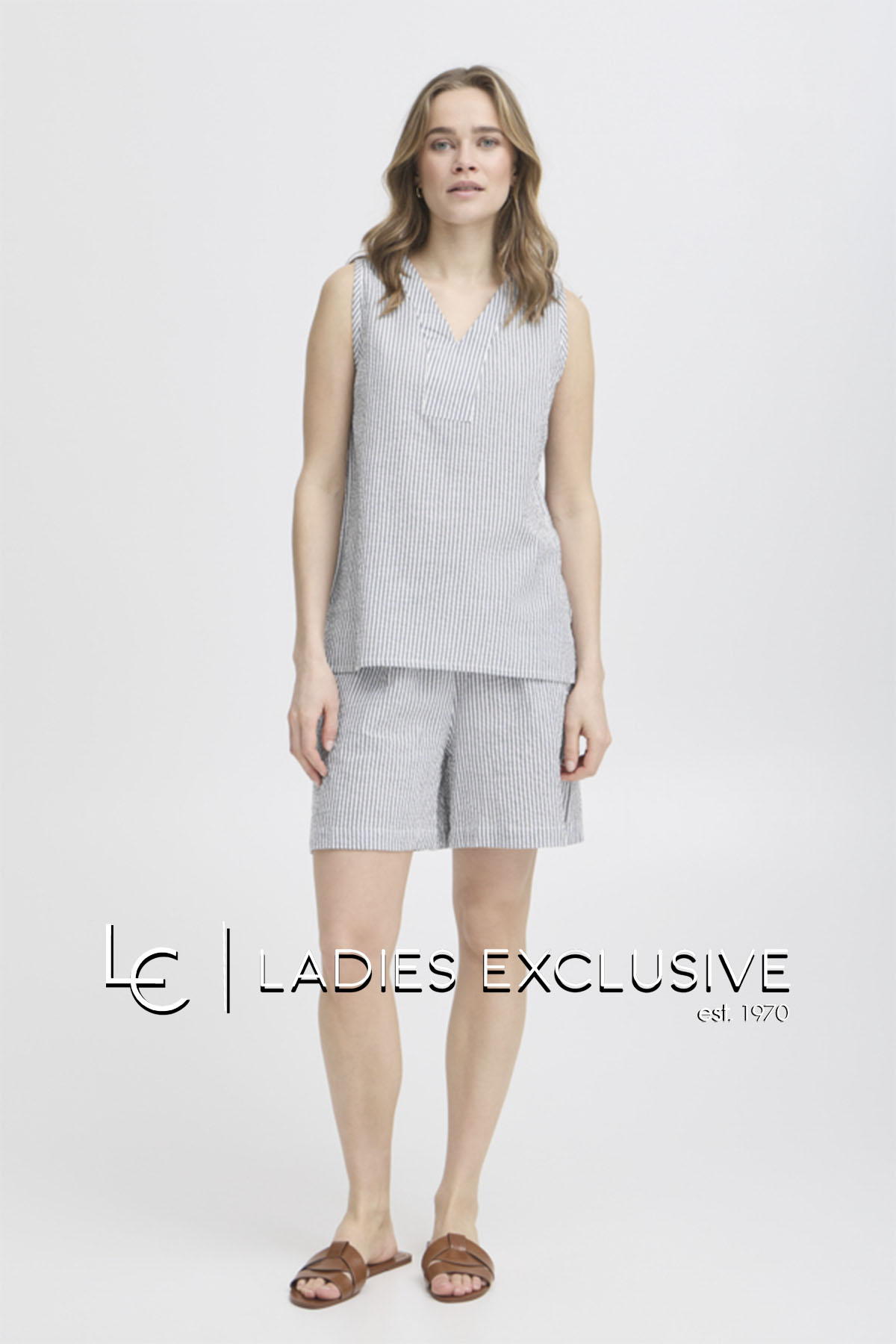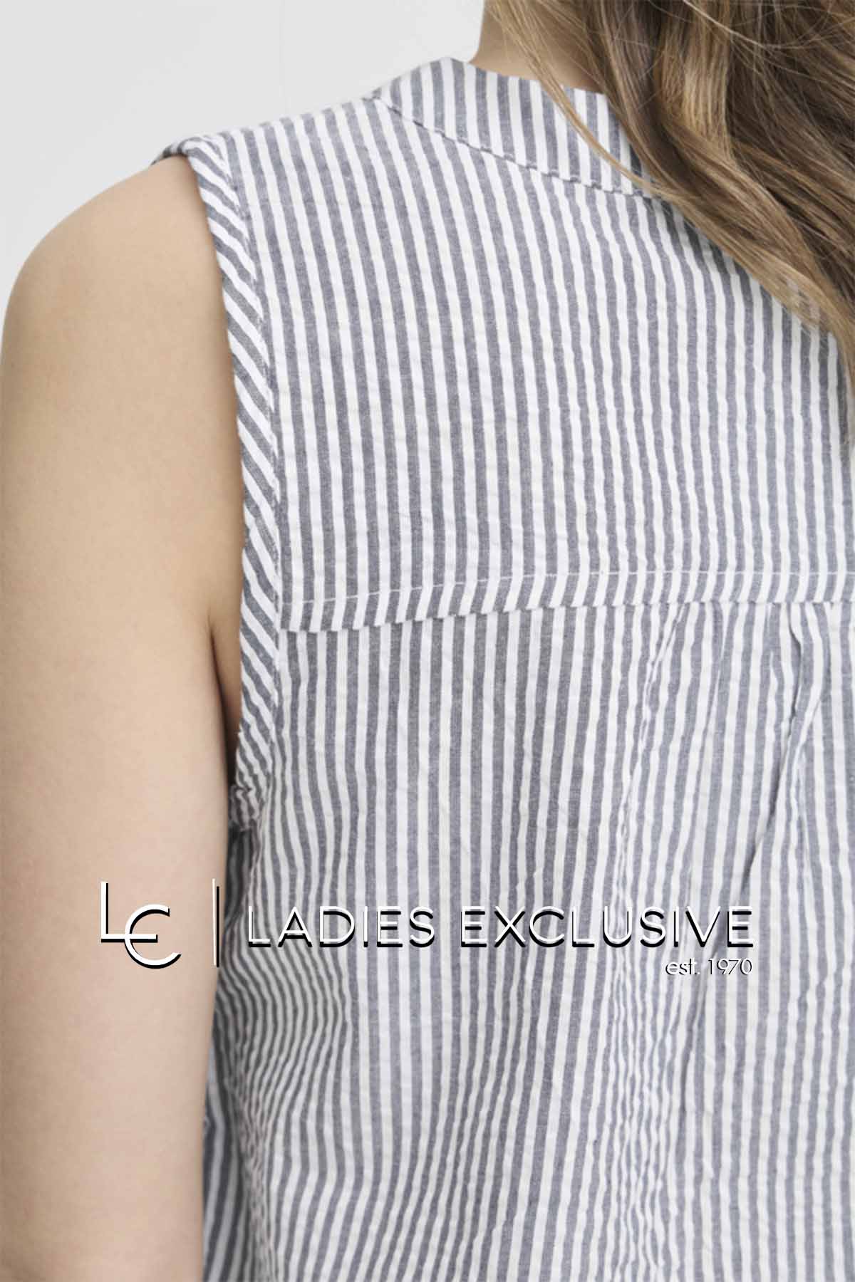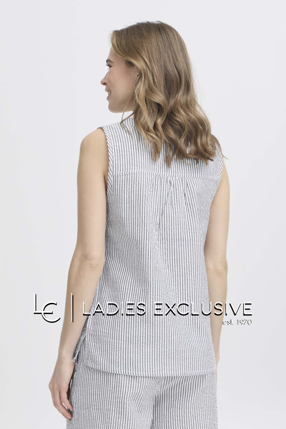 FRANSA Μπλούζα άσπρη μπλε αμάνικη ριγέ με άνοιγμα v.